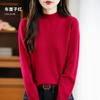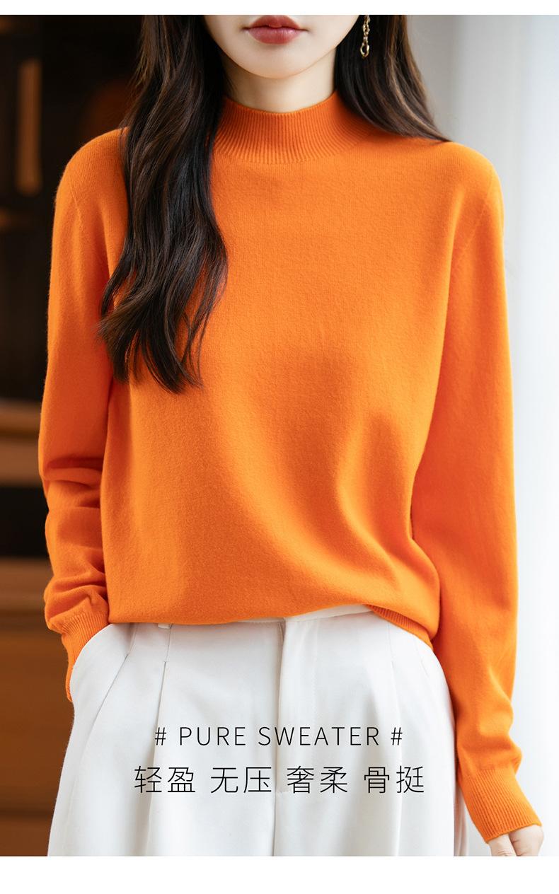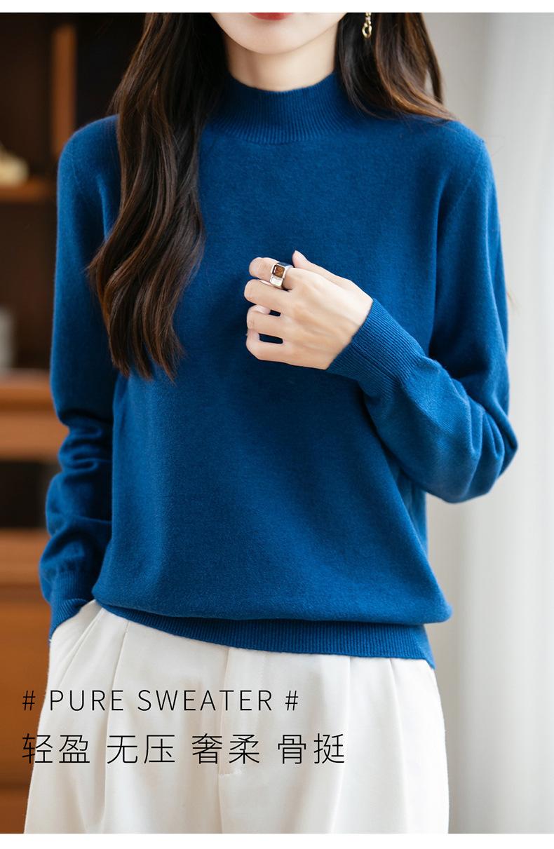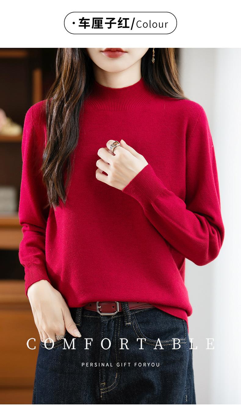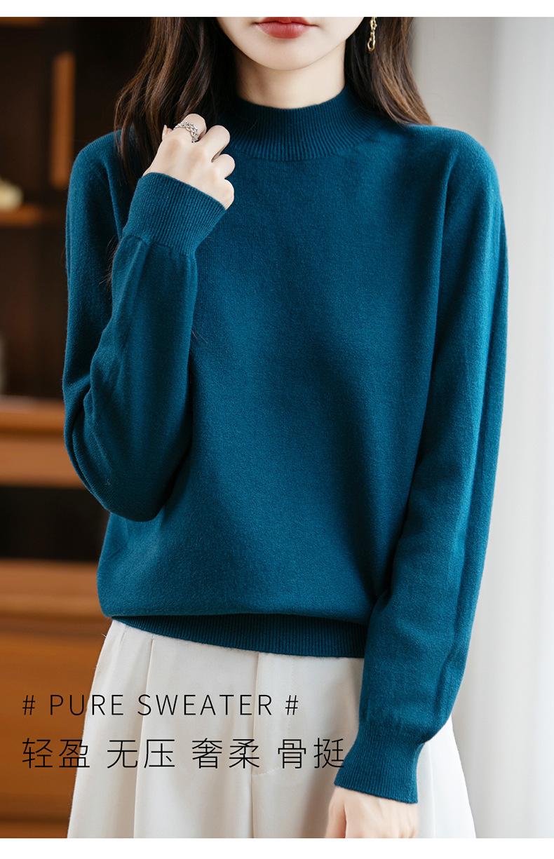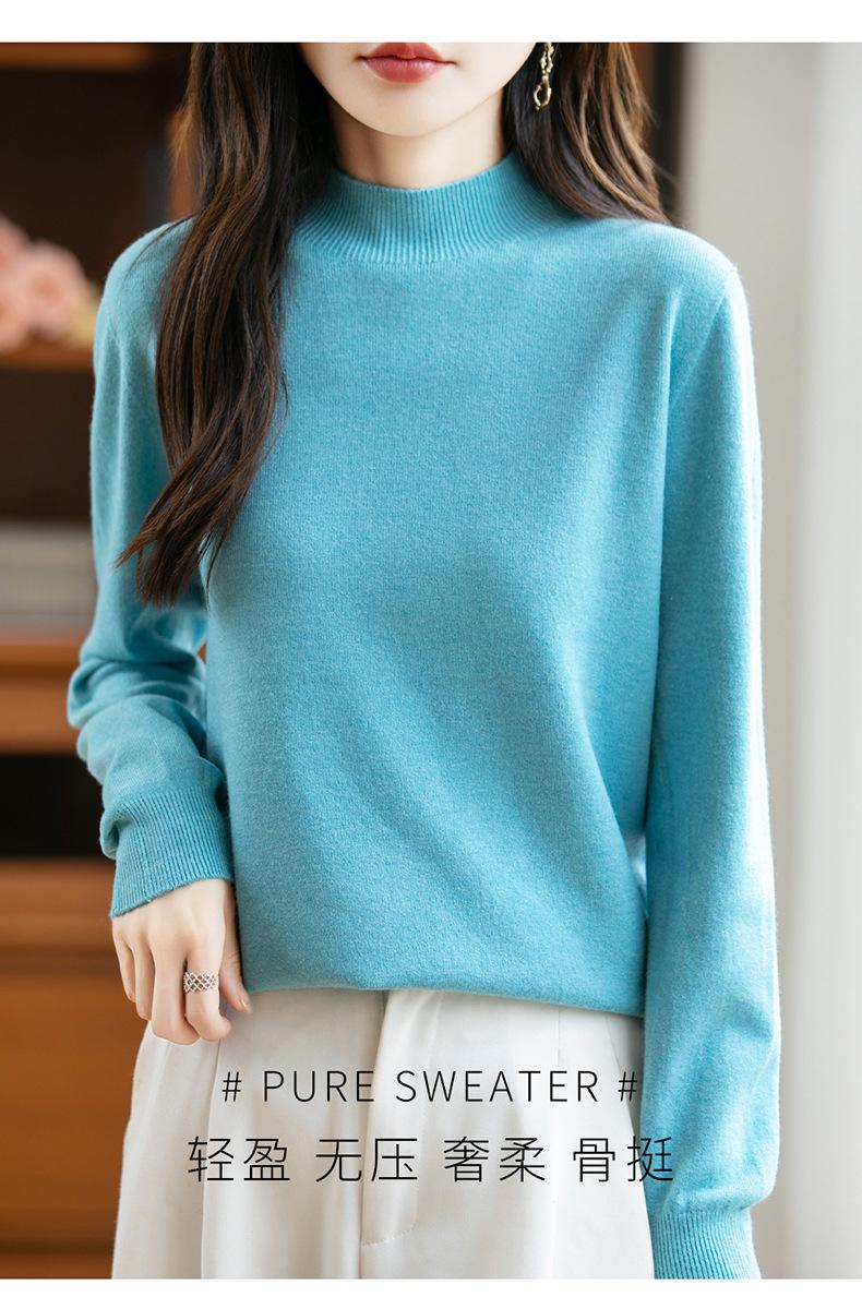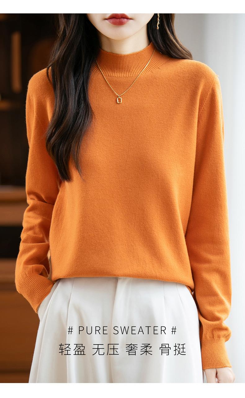 Suéter de Punto Plano de Cuello Semi-Alto para Mujer Otoño/Invierno Nuevo Jersey de Cuello Redondo Versátil Suelto Adelgazante Color Sólido Suéter Básico