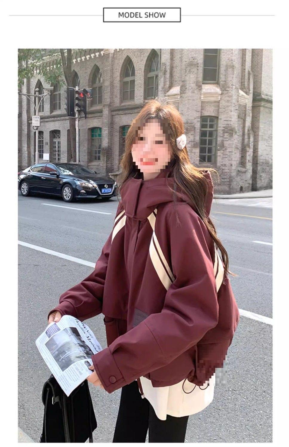 Chaqueta Cortavientos Estilo Americano de Primavera y Otoño 2025 para Mujer, Corta con Capucha, Estilo Coreano Holgada, Gabardina, Top Tipo Uniforme de Béisbol