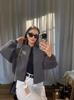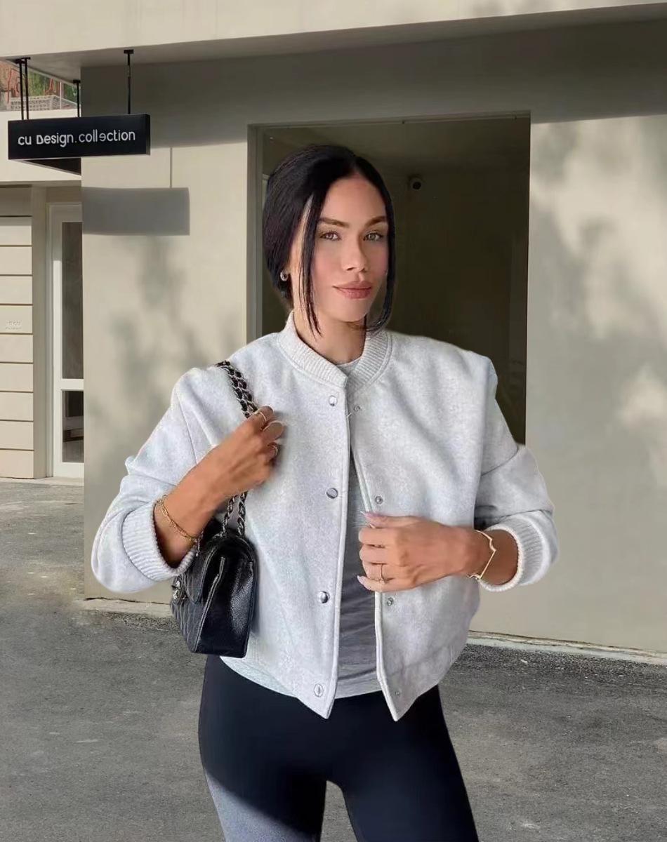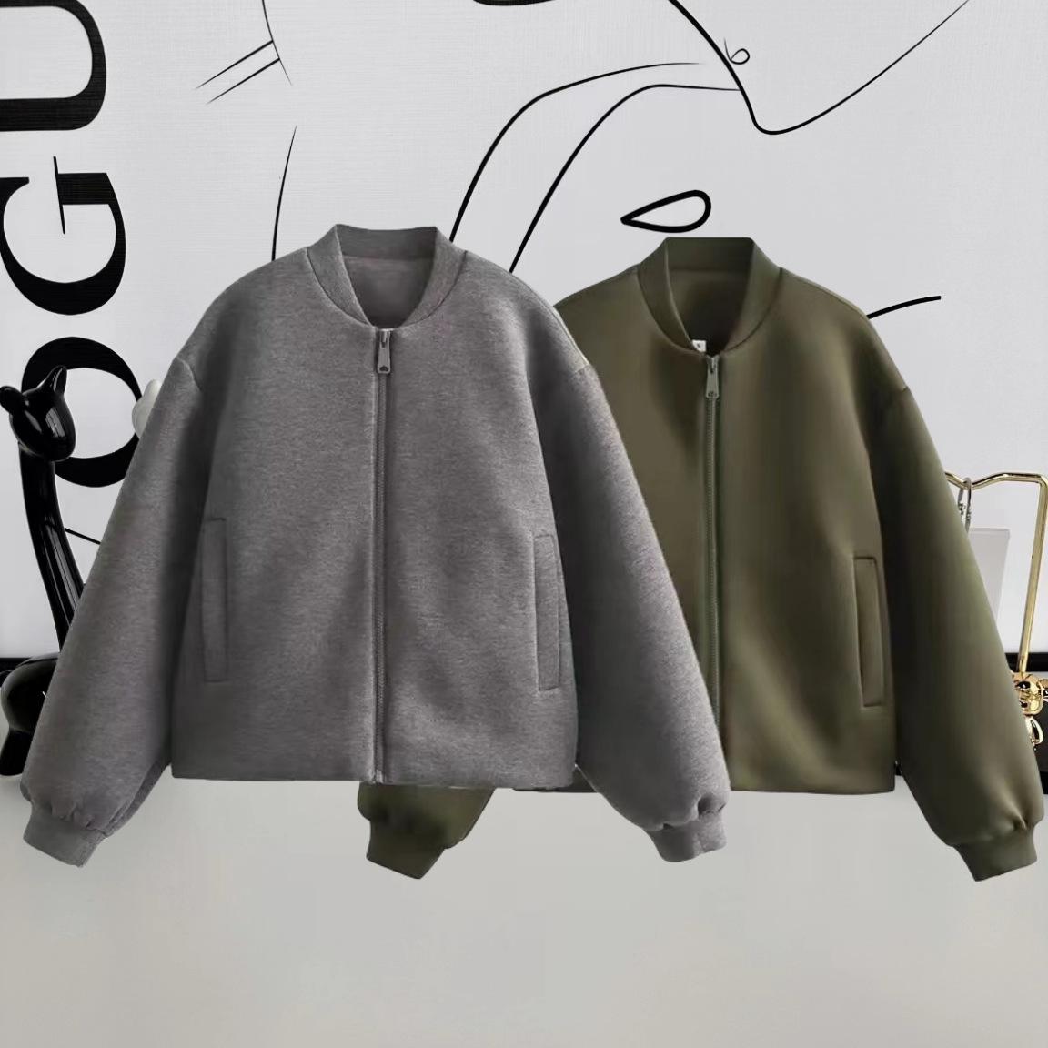 AliExpress Amazon 2024 Nuevo Casual Color Europeo y Americano Cuello Alto Solapa Sencillo Bolsillo Grande Holgado Manga Larga Chaqueta