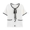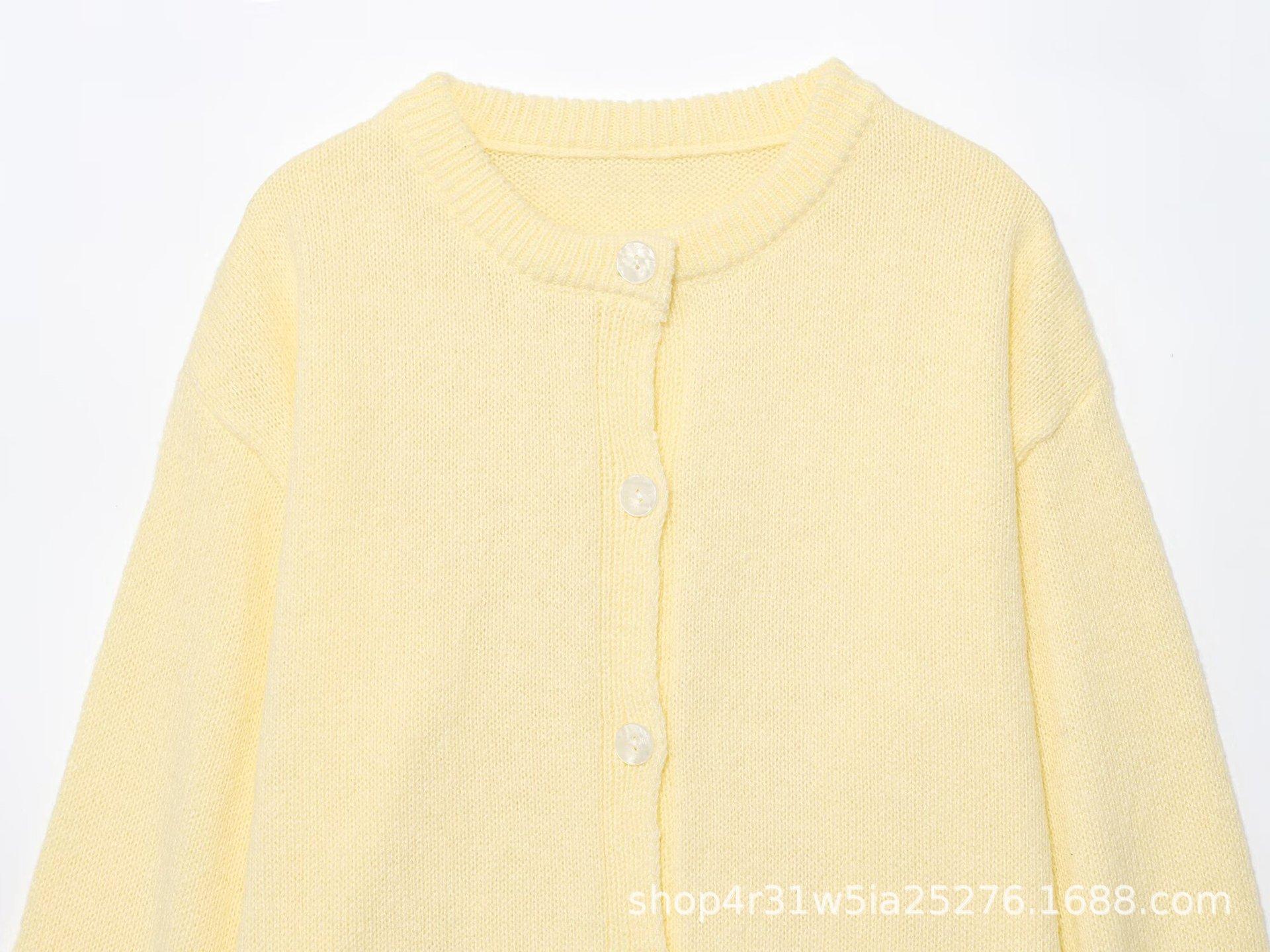 Estilo europeo y americano 2025 otoño nuevo cárdigan de punto de cuello redondo con temperamento de moda para mujer