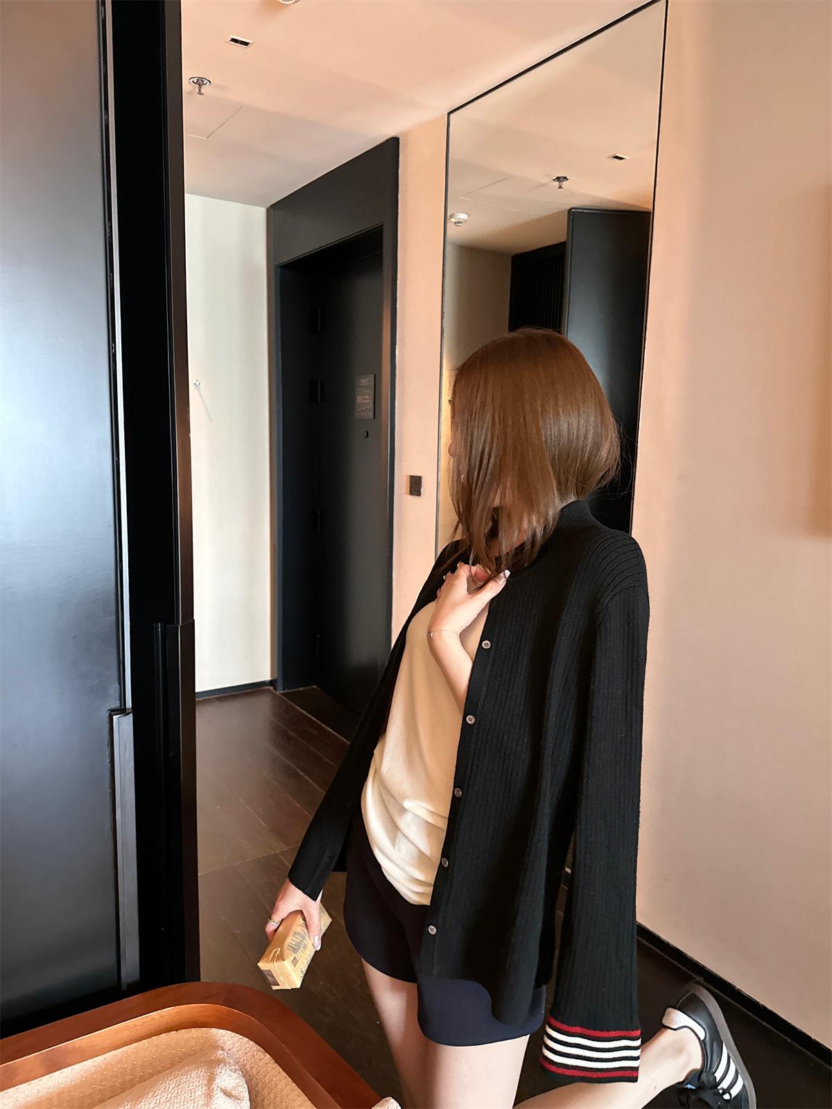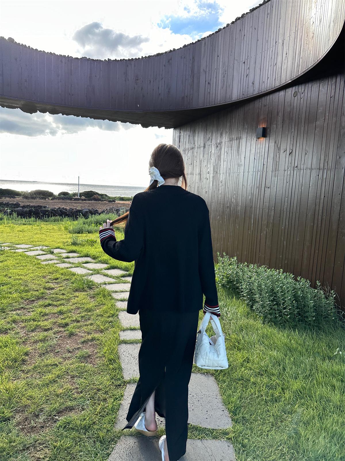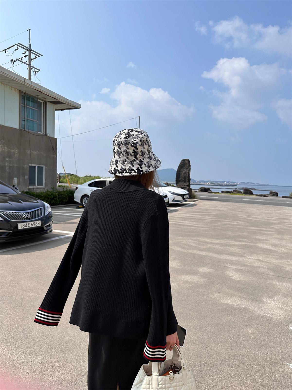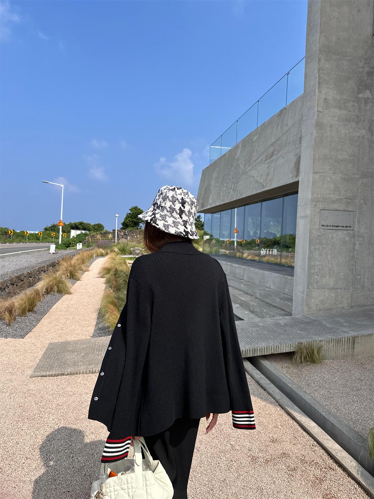 Cárdigan de Lana con Bloques de Color de Línea Privada Diebao Xi para Mujer Otoño Versátil Holgado Adelgazante Temperamento Manga Larga Top