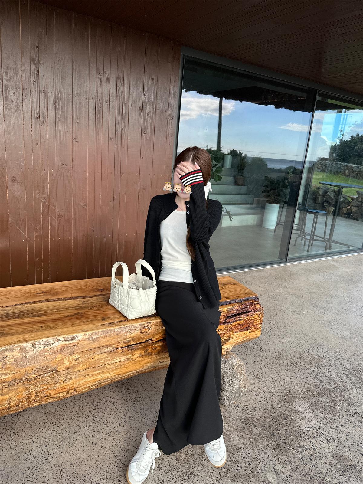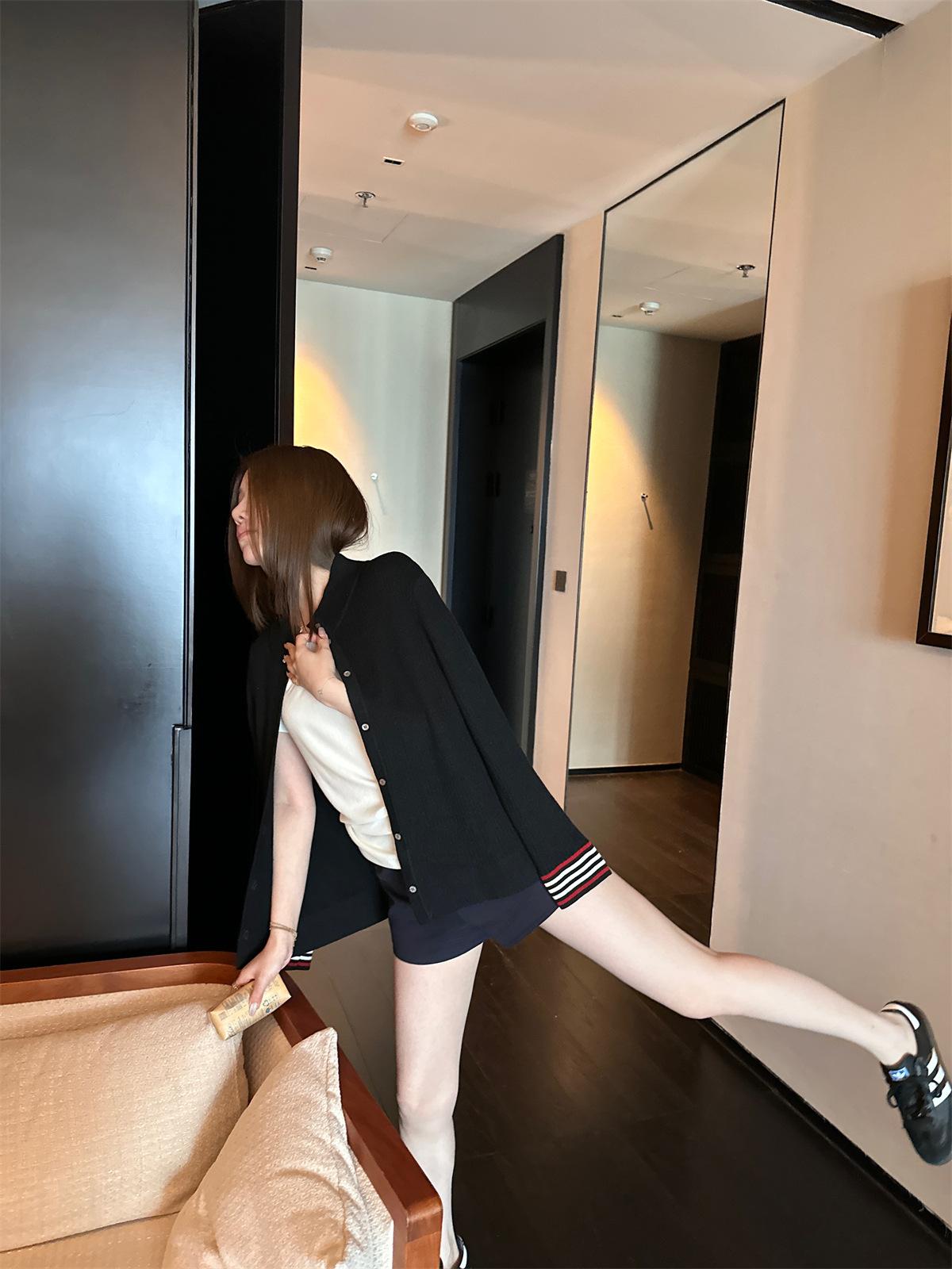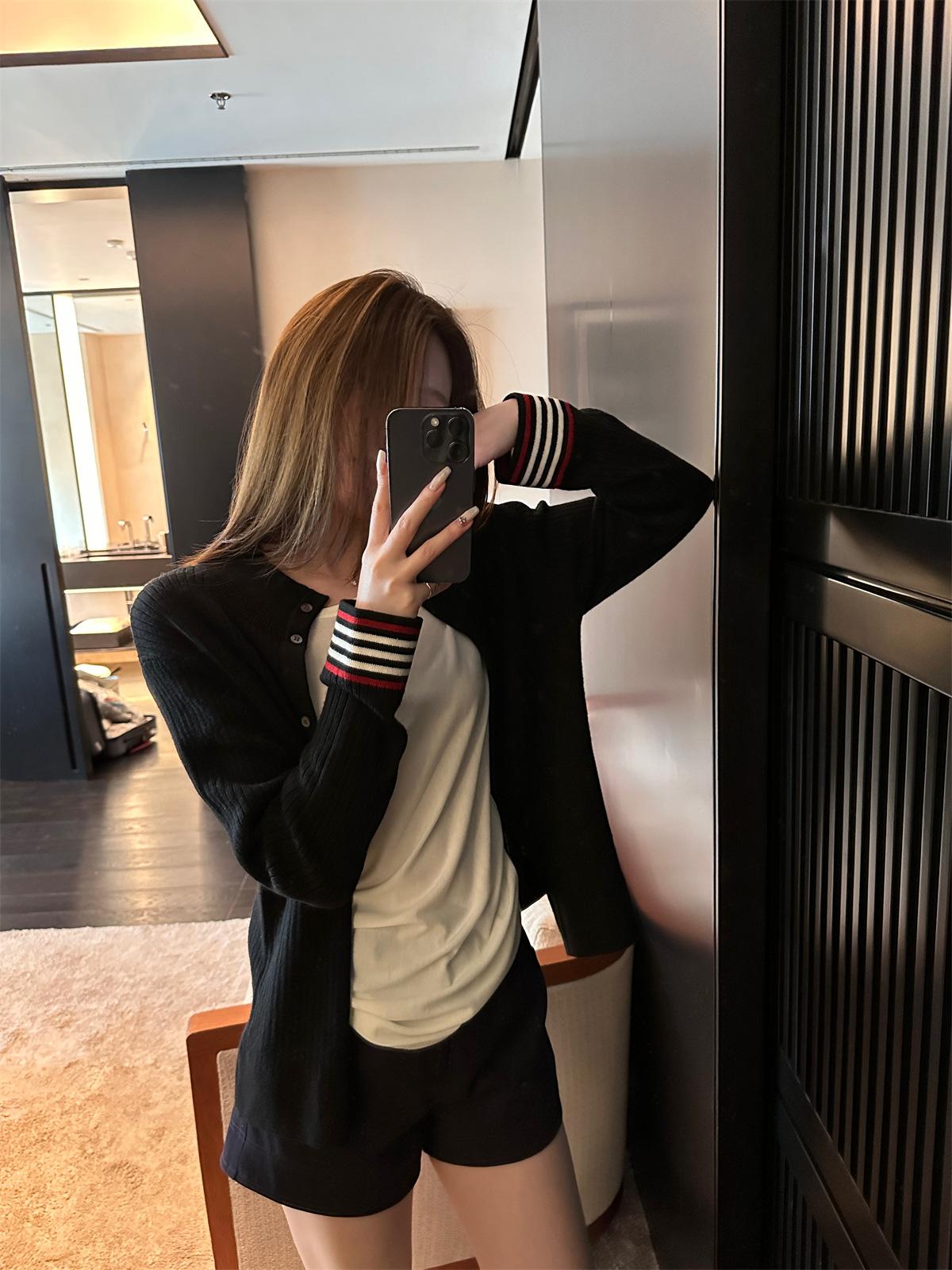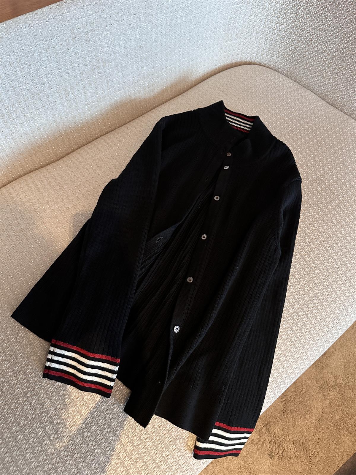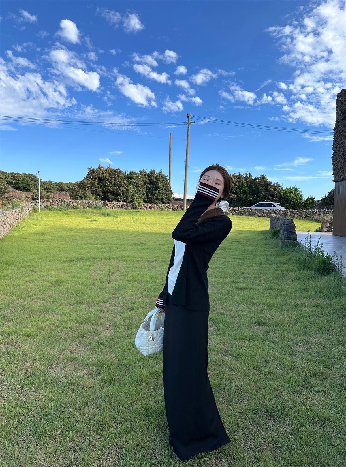 Cárdigan de Lana con Bloques de Color de Línea Privada Diebao Xi para Mujer Otoño Versátil Holgado Adelgazante Temperamento Manga Larga Top