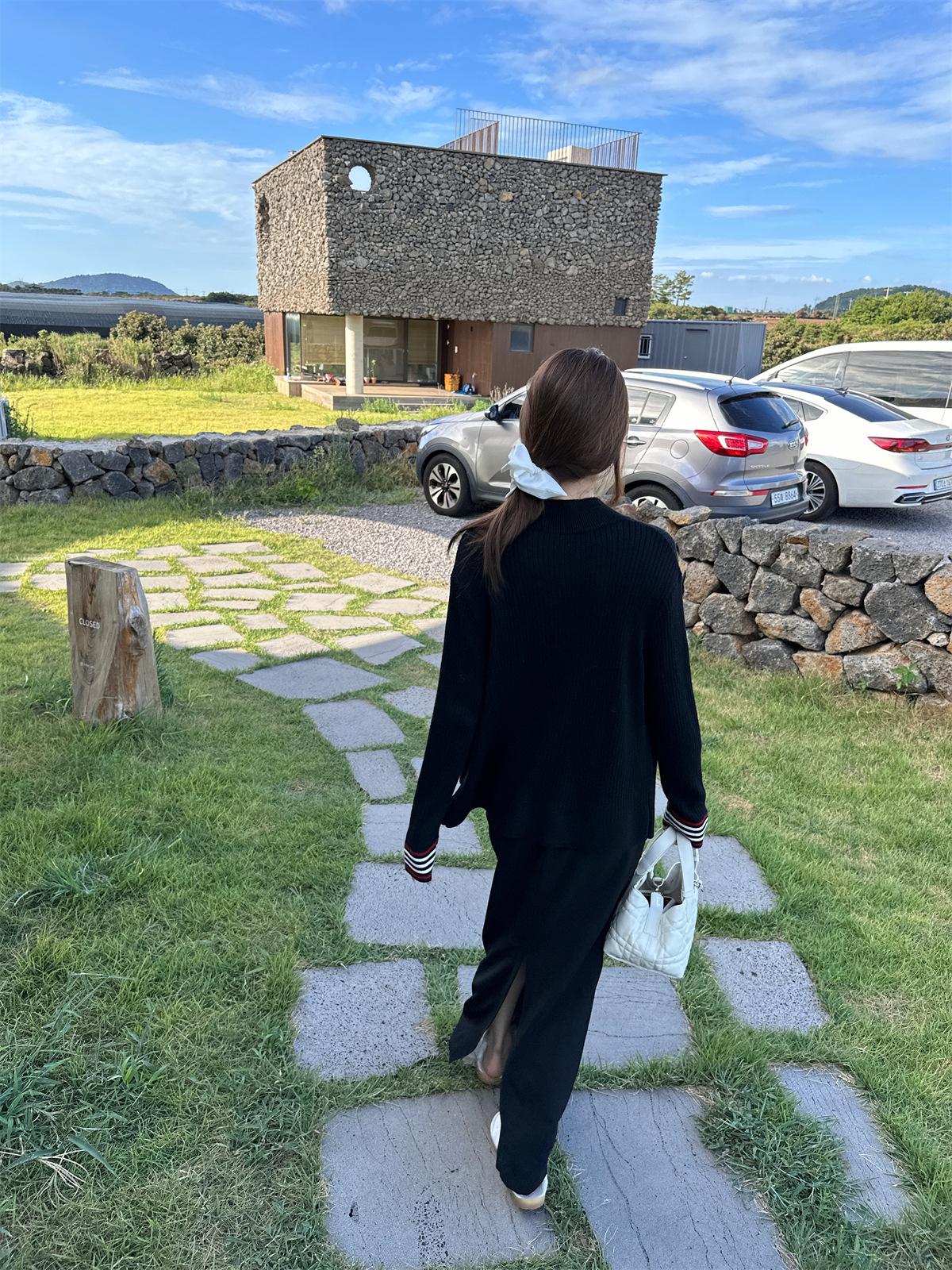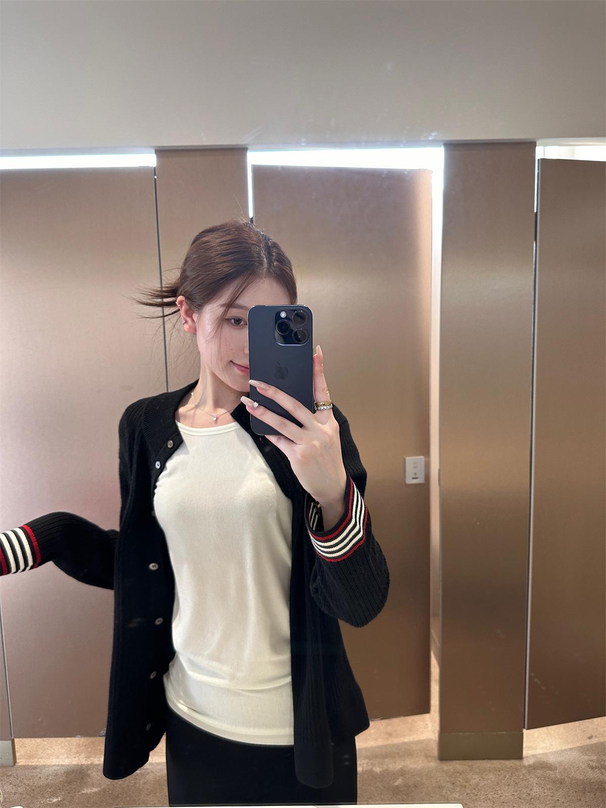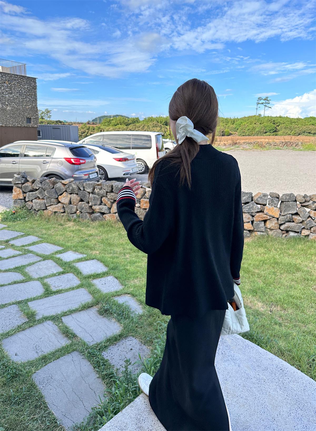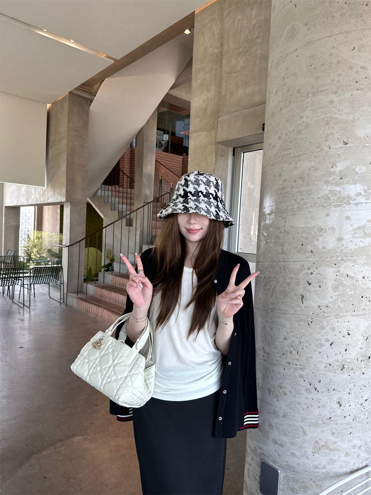Cárdigan de Lana con Bloques de Color de Línea Privada Diebao Xi para Mujer Otoño Versátil Holgado Adelgazante Temperamento Manga Larga Top