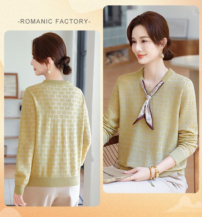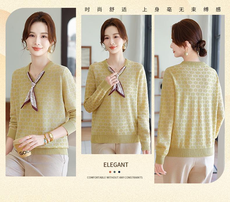 Nueva ropa elegante para madres, suéter básico de punto holgado de talla grande para otoño e invierno, suéter ajustado de talla grande que reduce la edad
