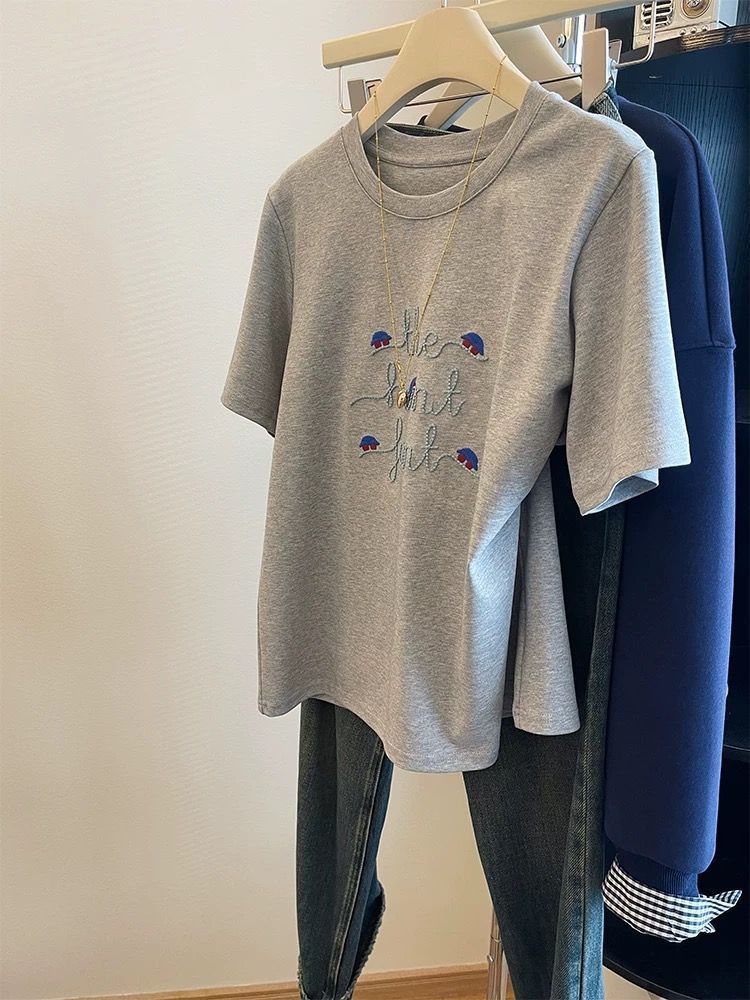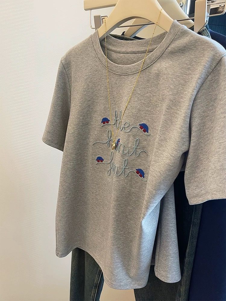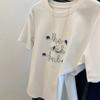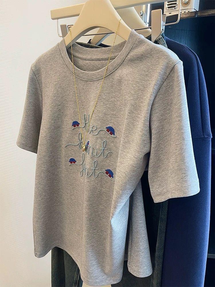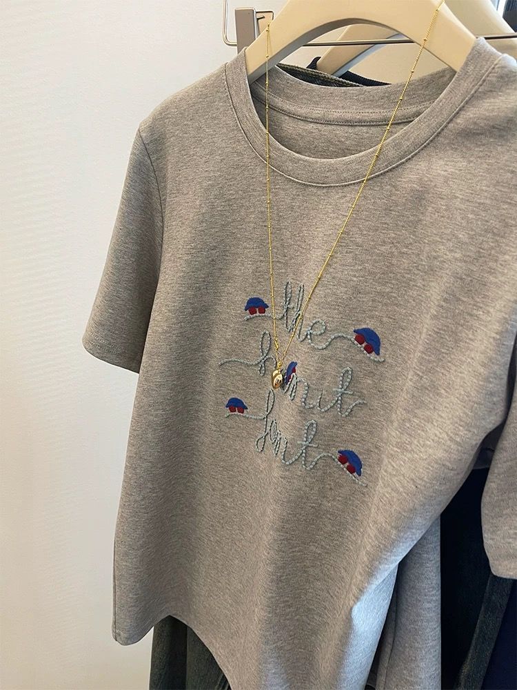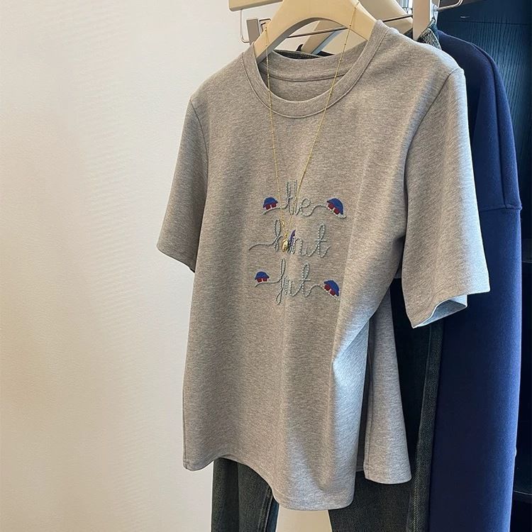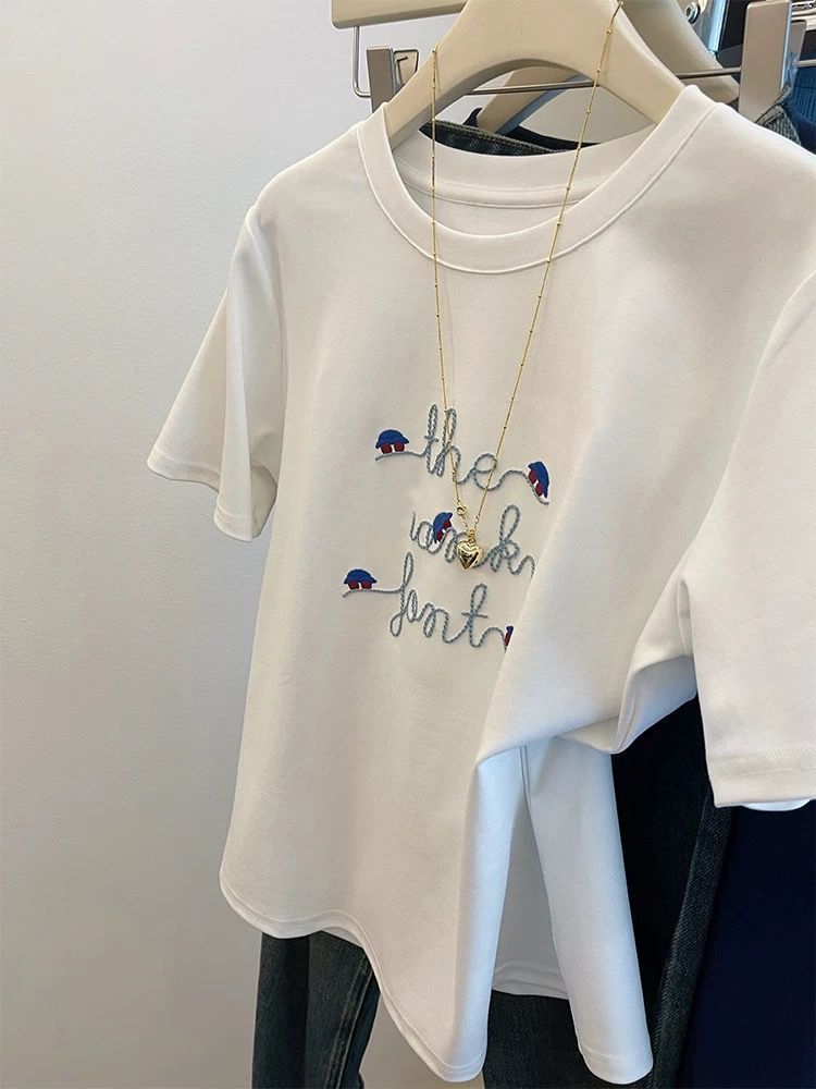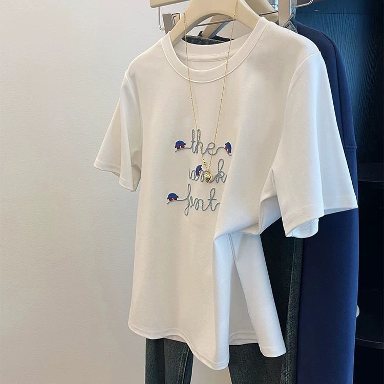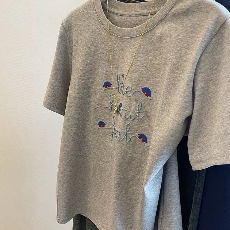 Shanli Dadi Primavera y Verano Americano Retro Estampado Manga Corta Casual Suelto Diseño Top Camiseta talla grande