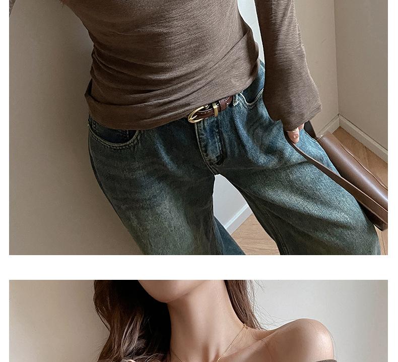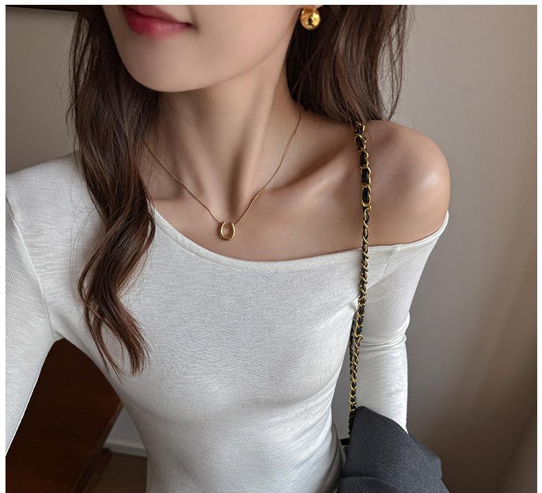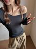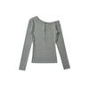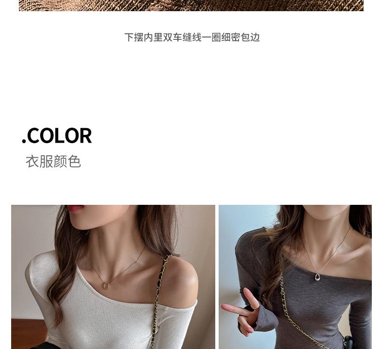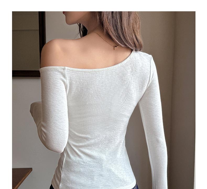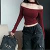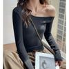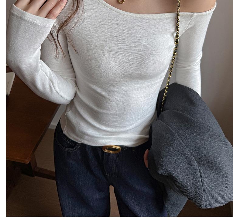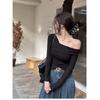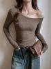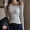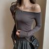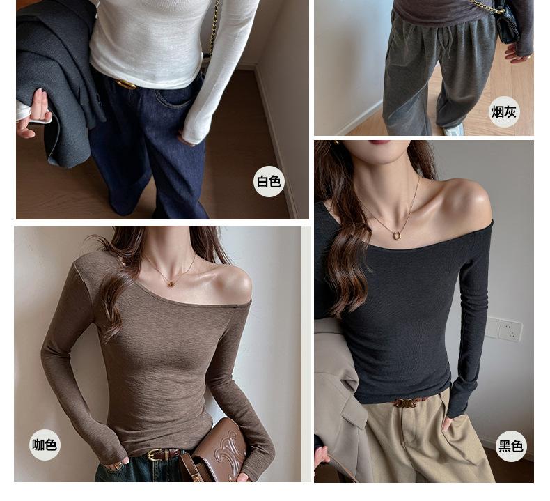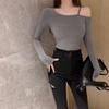 Playera de Manga Larga con Hombro Descubierto Ajustada para Chica Picante para Mujer Estilo Nuevo de Principios de Otoño Diseño con Hombro Descubierto Top Sexy Capa Base Interior