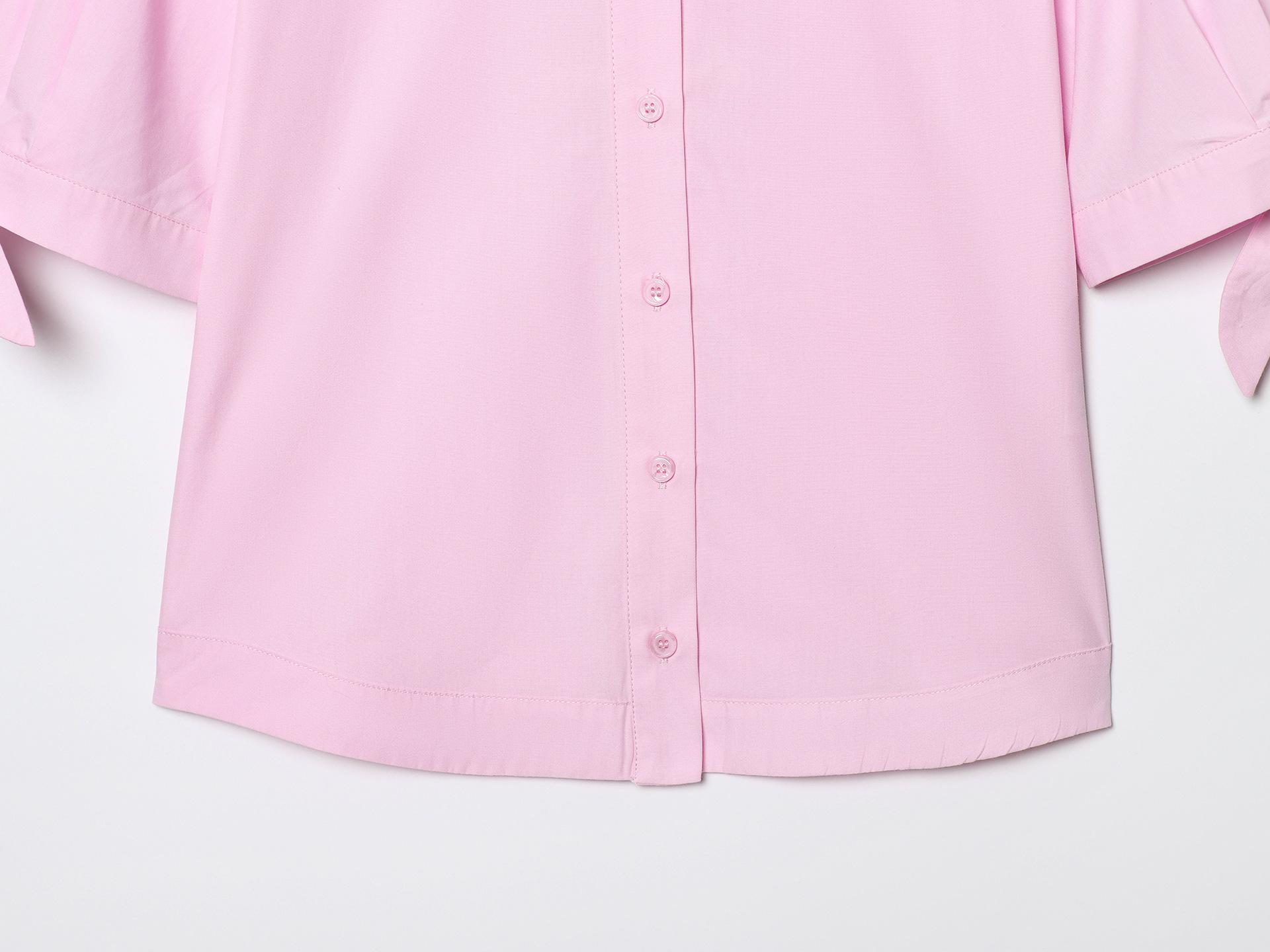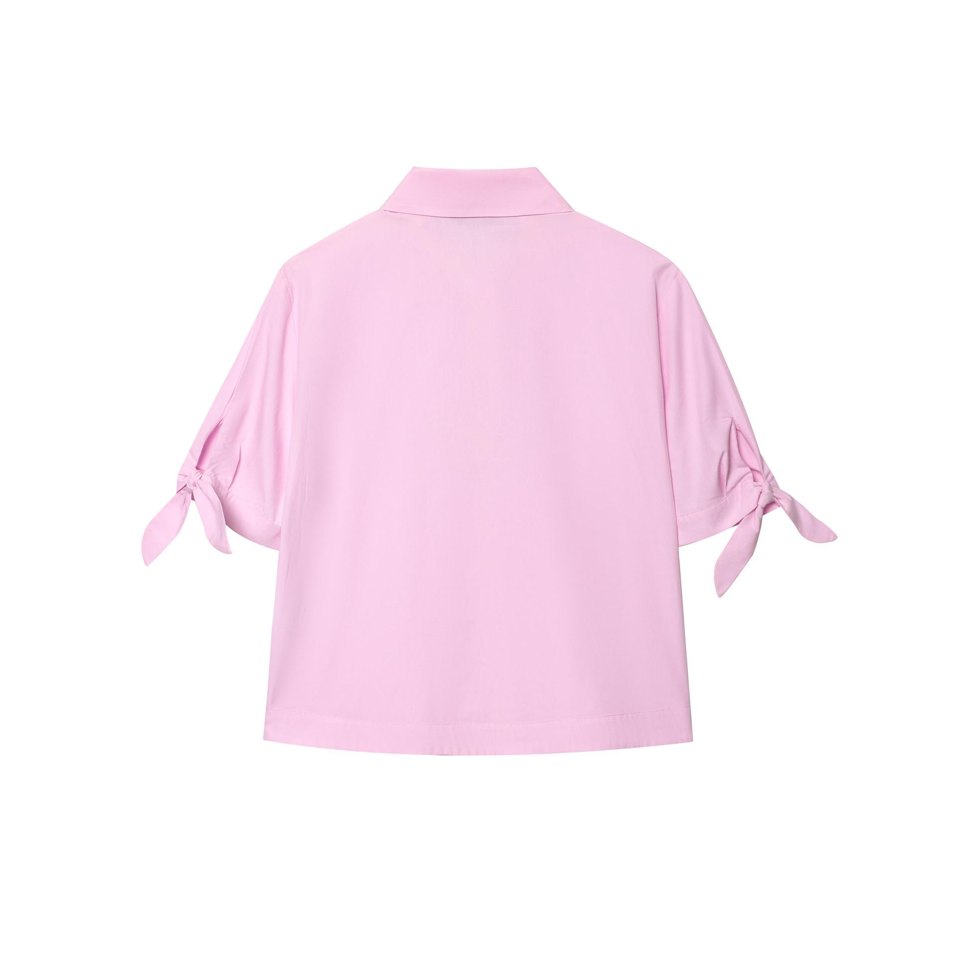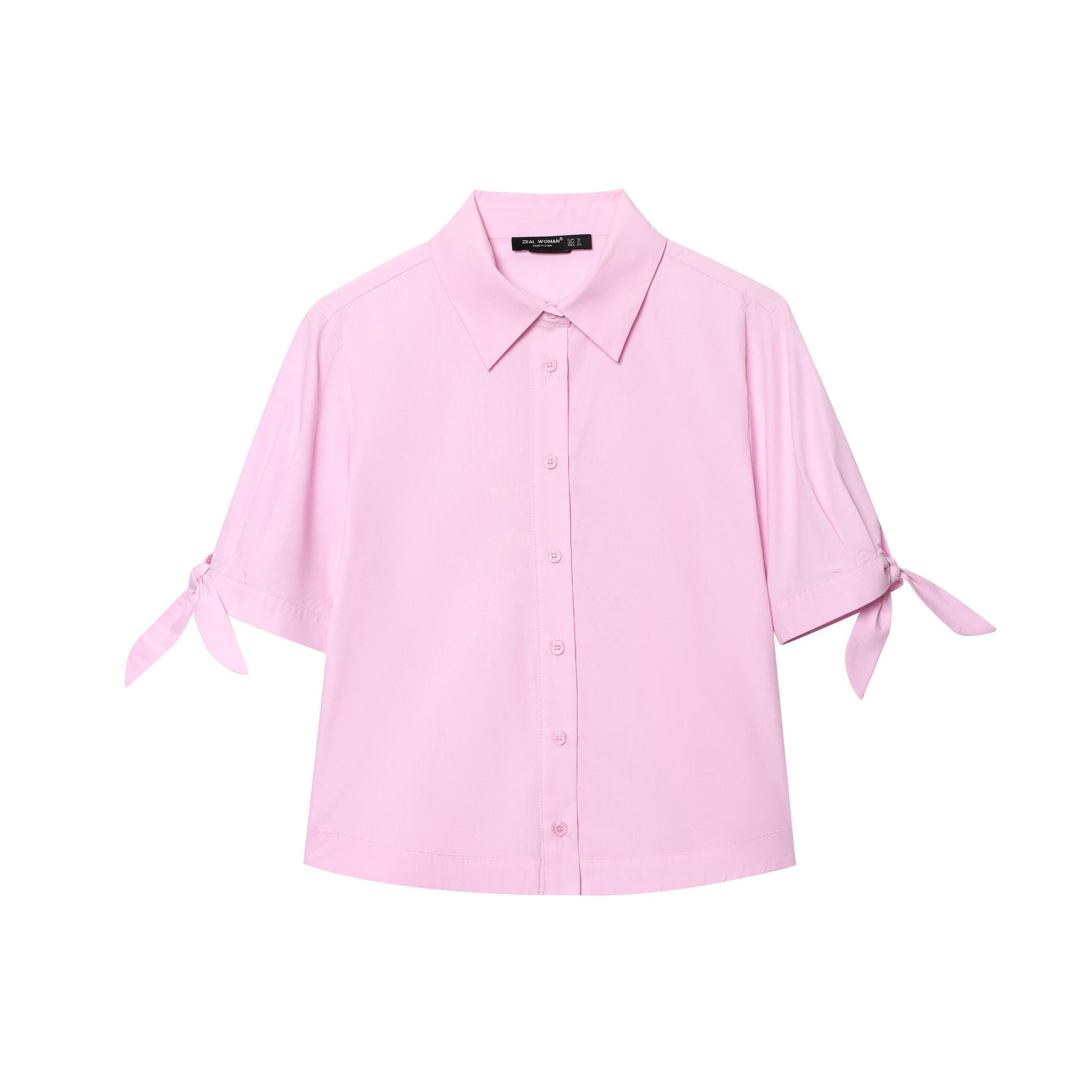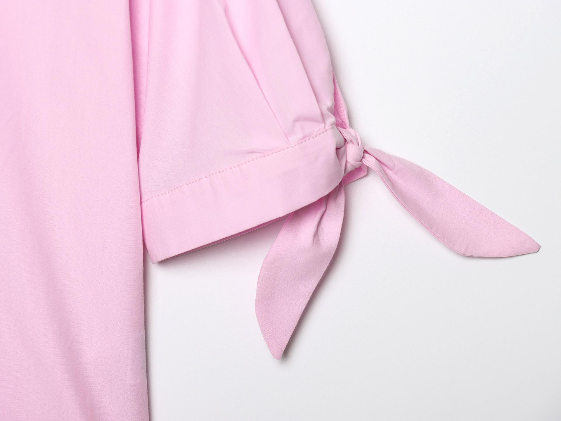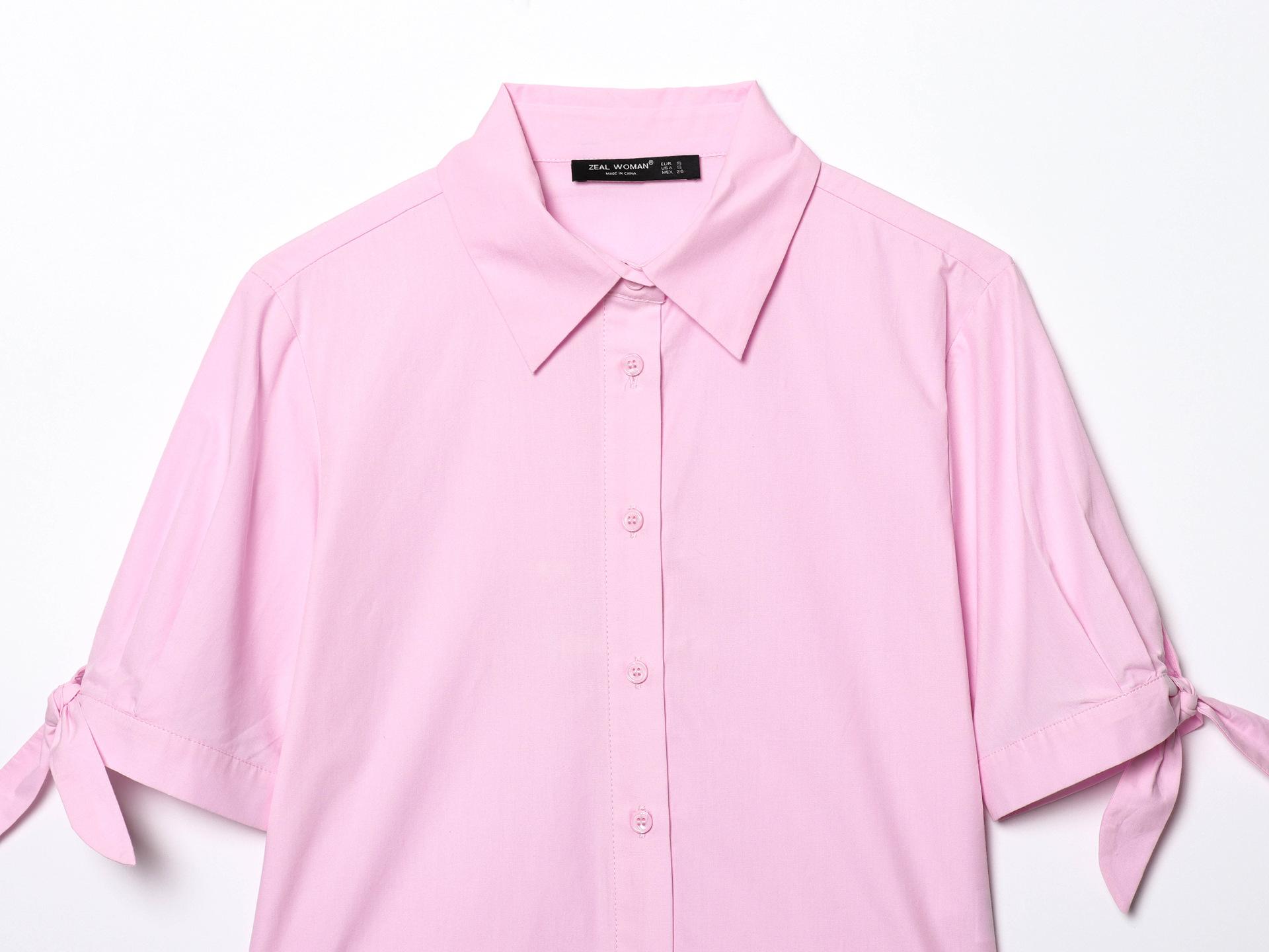 Nuevo Producto Transfronterizo 2025 Estilo Europeo y Americano Ropa de Mujer Comercio Exterior Venta al por Mayor Camisa de Popelina con Lazo y Solapa de Manga Corta