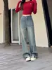 Otoño e invierno súper suaves cintura alta personalidad doble botón retro mezclilla pantalones de pierna ancha jeans sueltos cómodos versátiles ropa de otoño gruesos