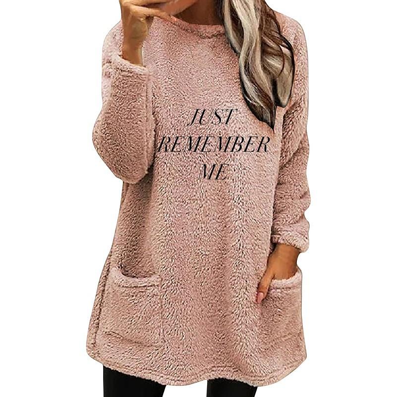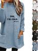 Transfronterizo 2023 Amazon otoño e invierno para mujer nuevo jersey de cuello redondo de manga larga con bolsillo y estampado de letras