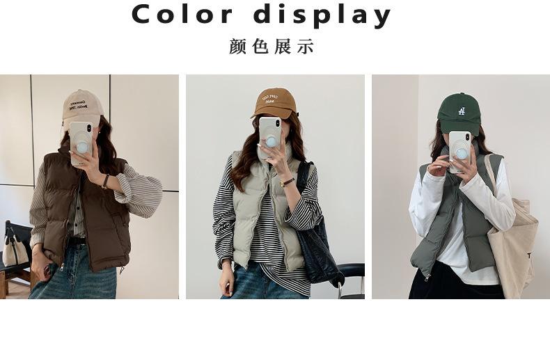 Chaleco de Algodón Plumífero Nuevo de Invierno Estilo Estación Europea para Mujer Ropa de Mujer Chaleco de Color Sólido Chaqueta Abrigo