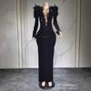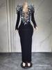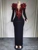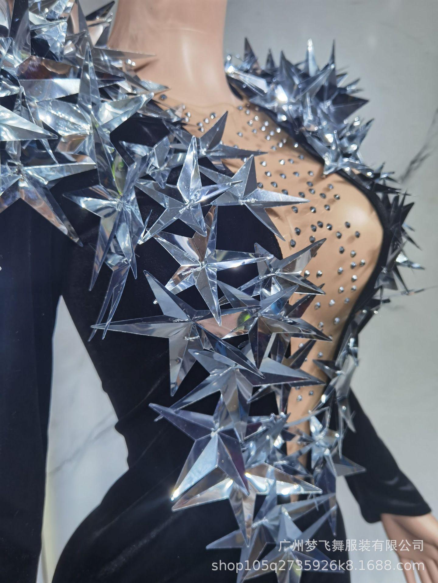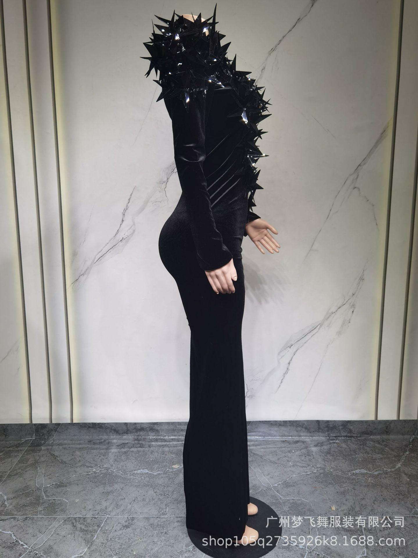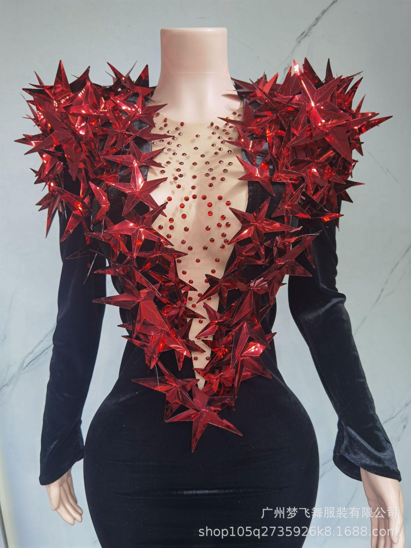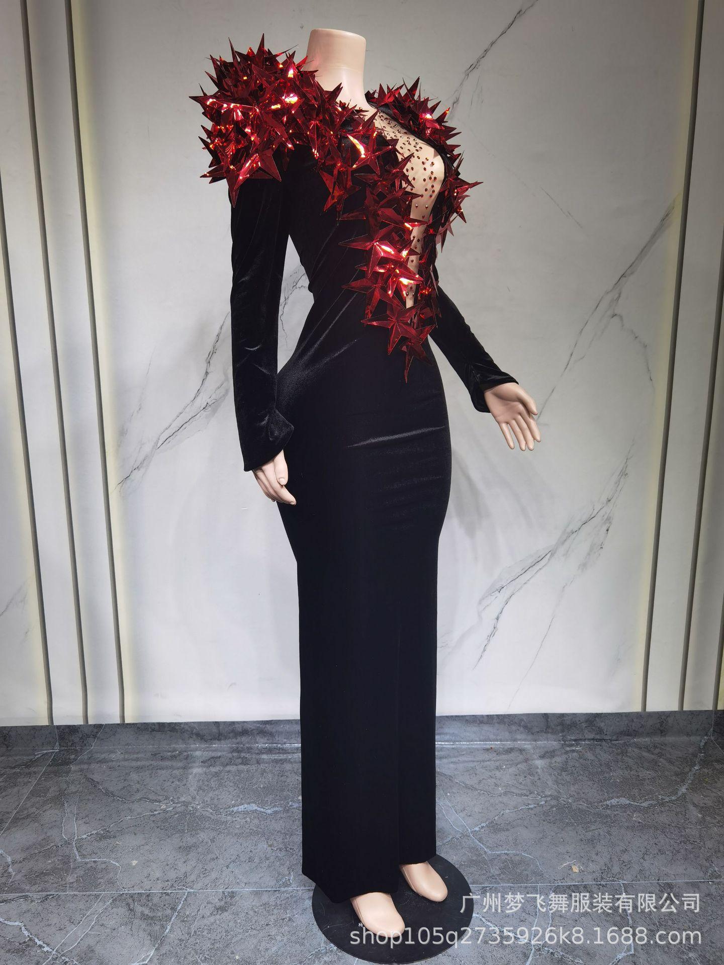 Vestido de Terciopelo Negro con Lentejuelas de Estrella Dorada Brillante Europeo y Americano Modelo Pasarela Moda para Mujer Vestido de Fiesta Nuevo