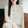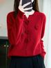 Nuevo Cárdigan Suéter de Manga Larga con Encaje Patchwork, Base Tejida, Punto Francés, Top de Punto, Ropa Interior, Moda para Mujer