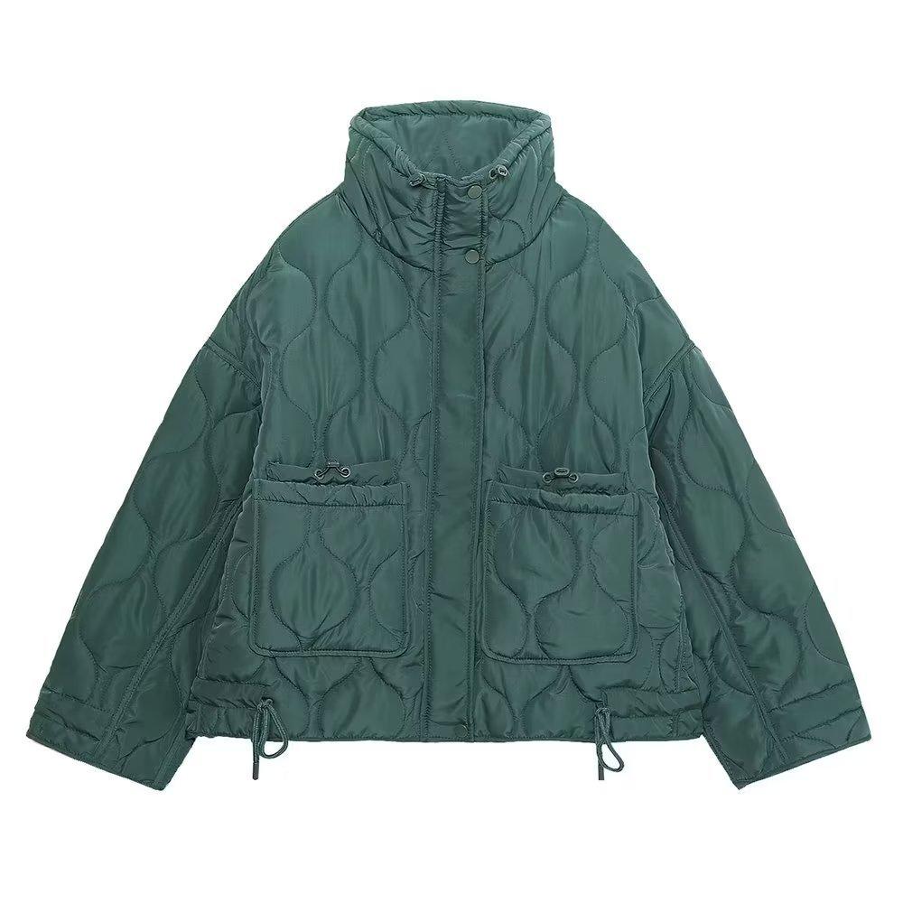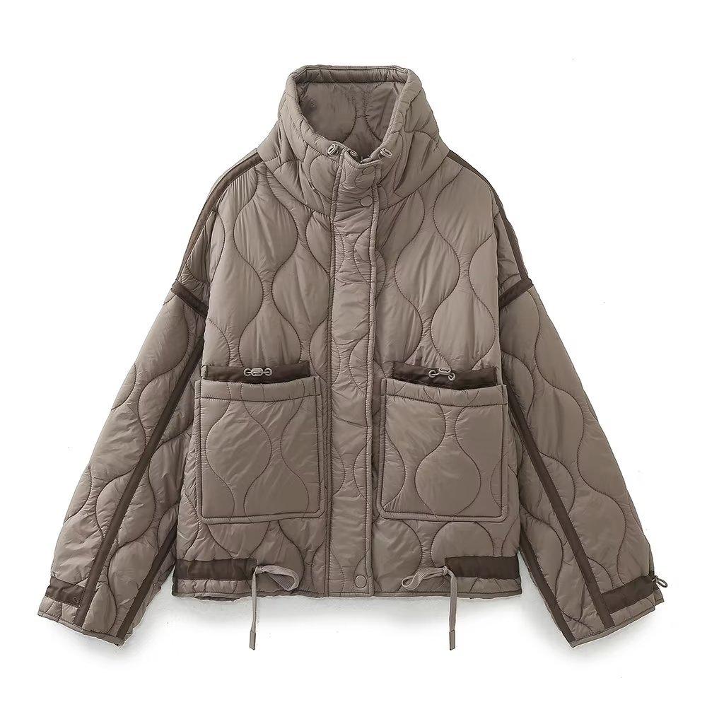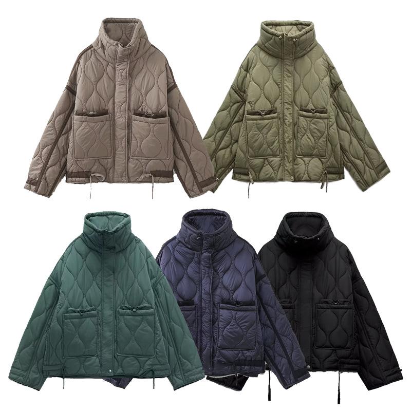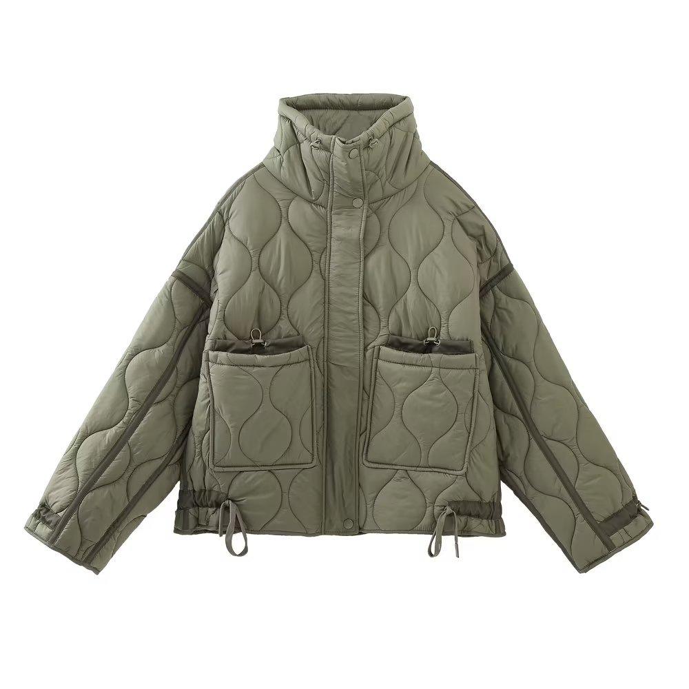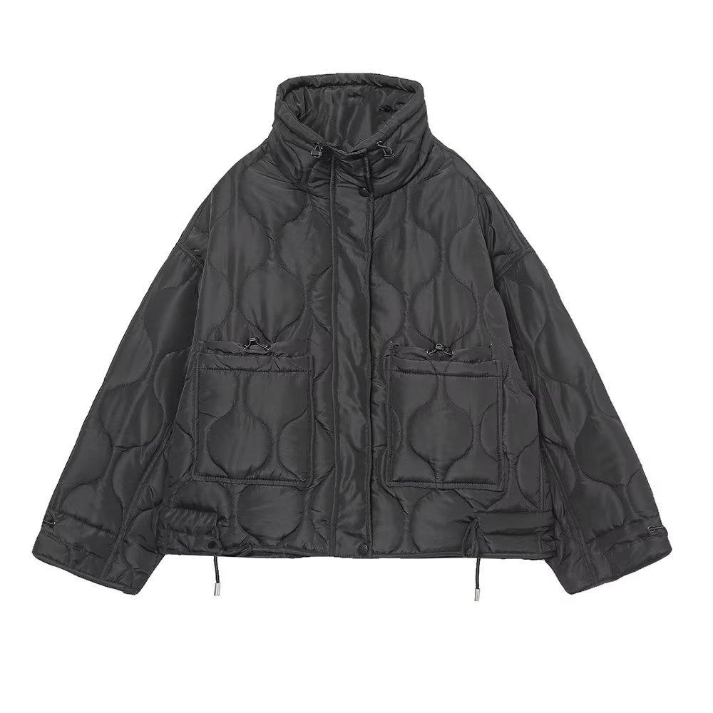 Comercio exterior transfronterizo Amazon venta al por mayor Chaqueta holgada de invierno para mujer europea y americana con cuello alto y bolsillo Chaqueta acolchada de algodón Chaqueta abrigo