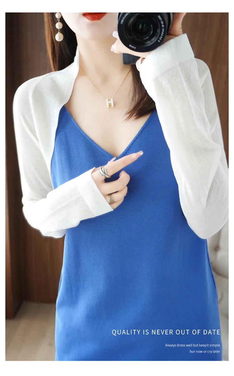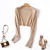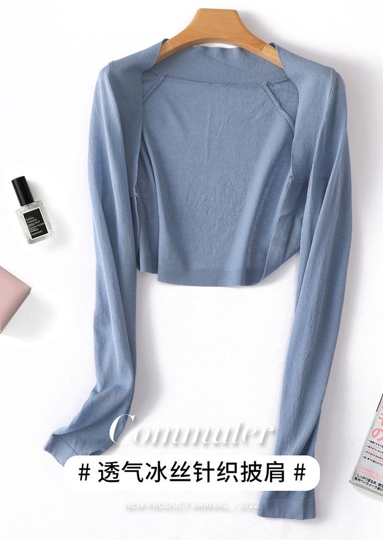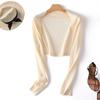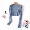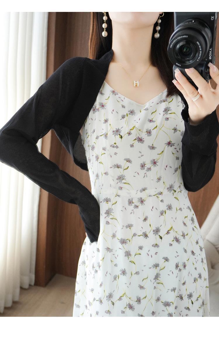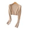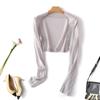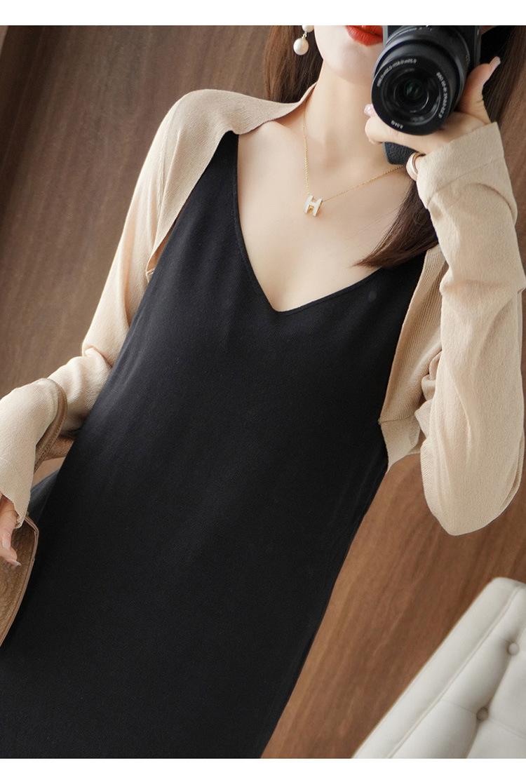Suéter de Protección Solar de Seda de Hielo Ultracorto de Verano Cárdigan de Punto para Mujer con Falda de Tirantes Chal Exterior Manga Larga Chaleco Pequeño Delgado