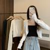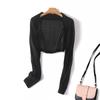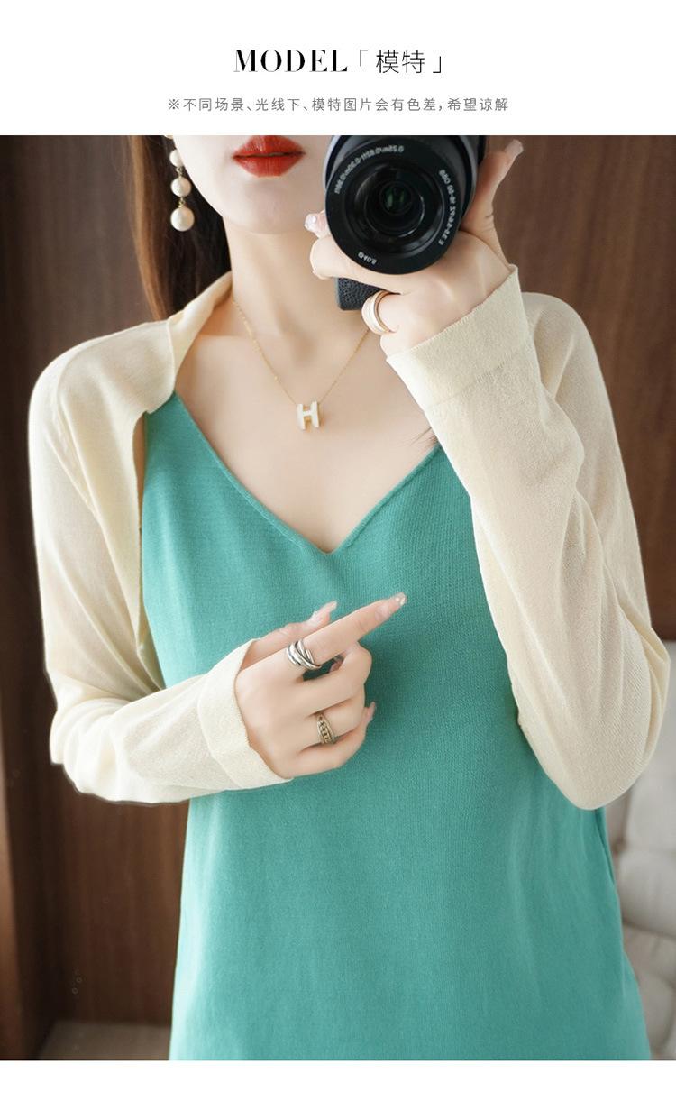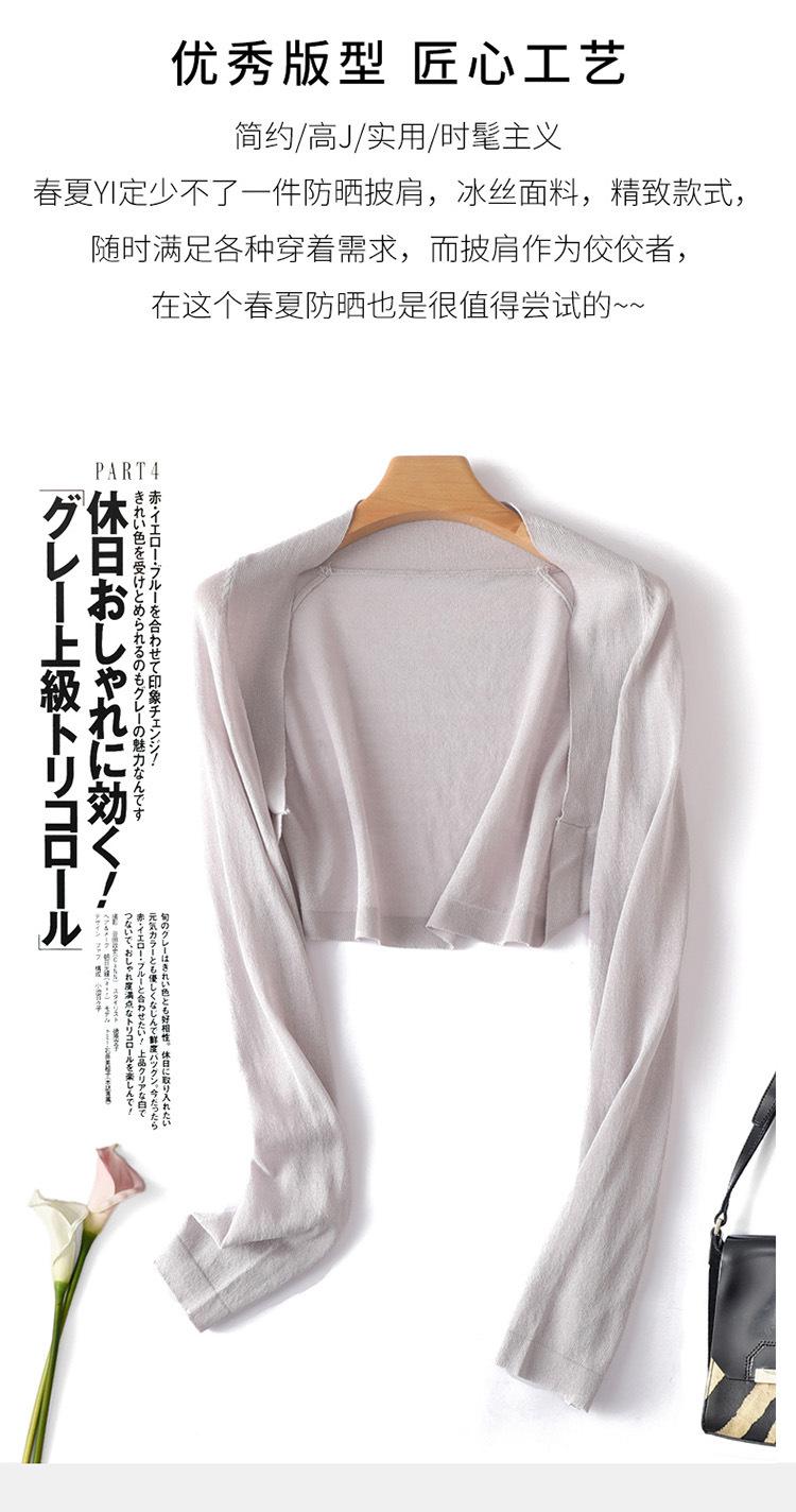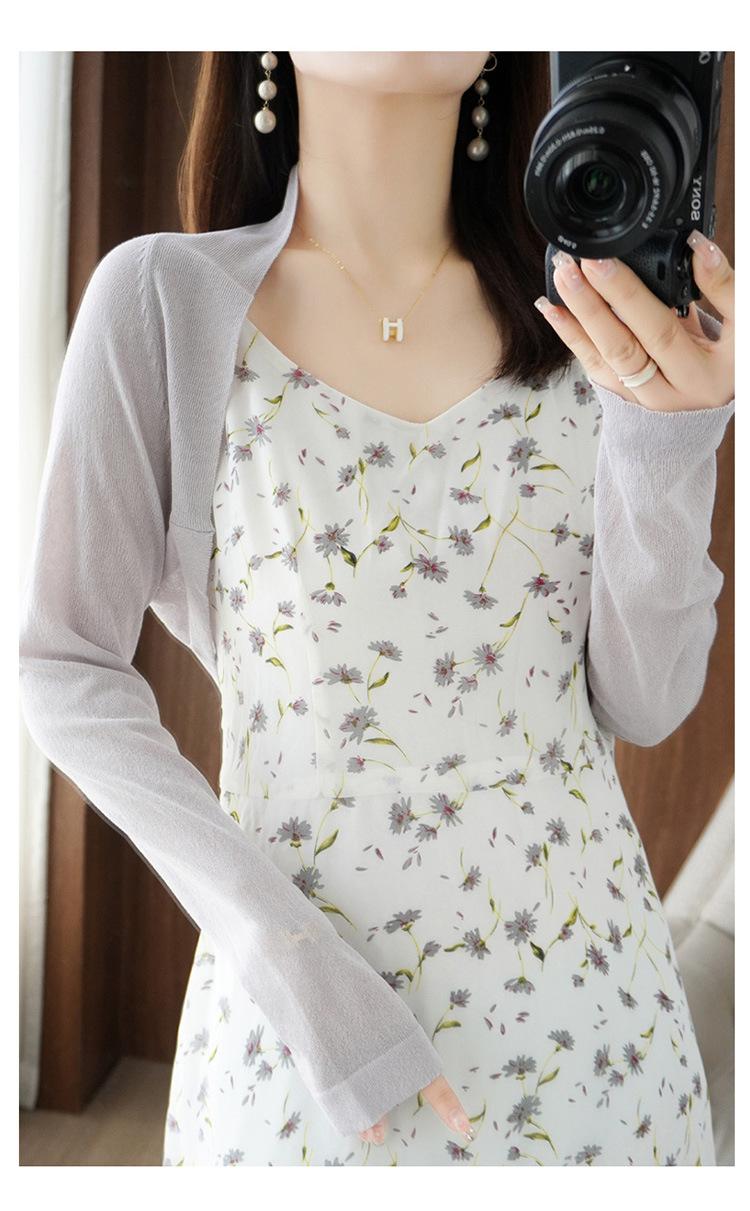 Suéter de Protección Solar de Seda de Hielo Ultracorto de Verano Cárdigan de Punto para Mujer con Falda de Tirantes Chal Exterior Manga Larga Chaleco Pequeño Delgado