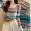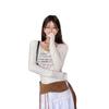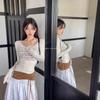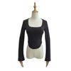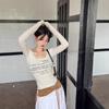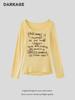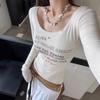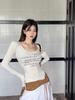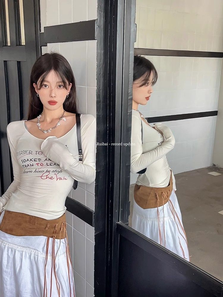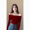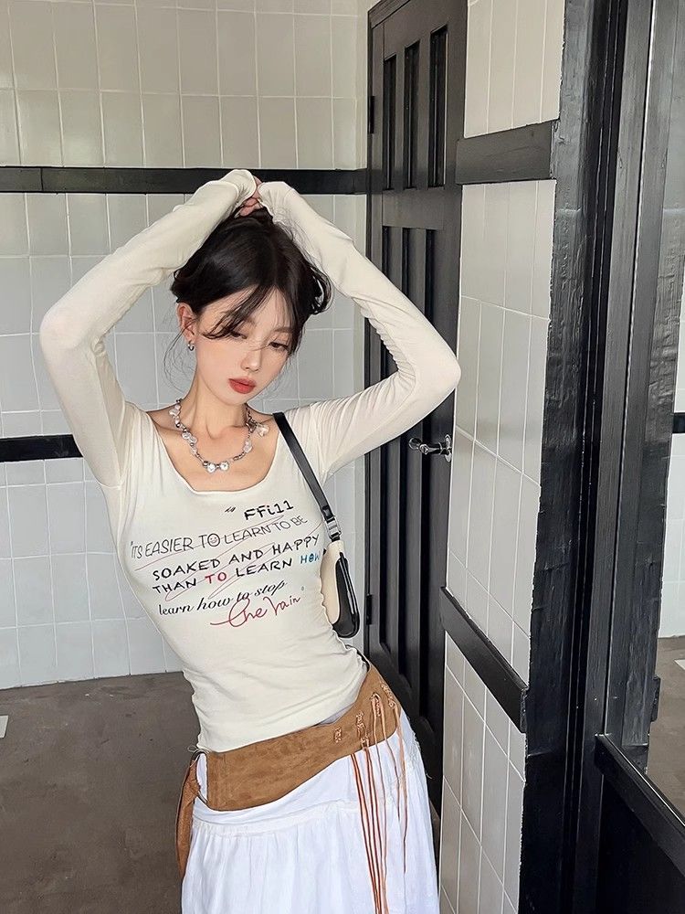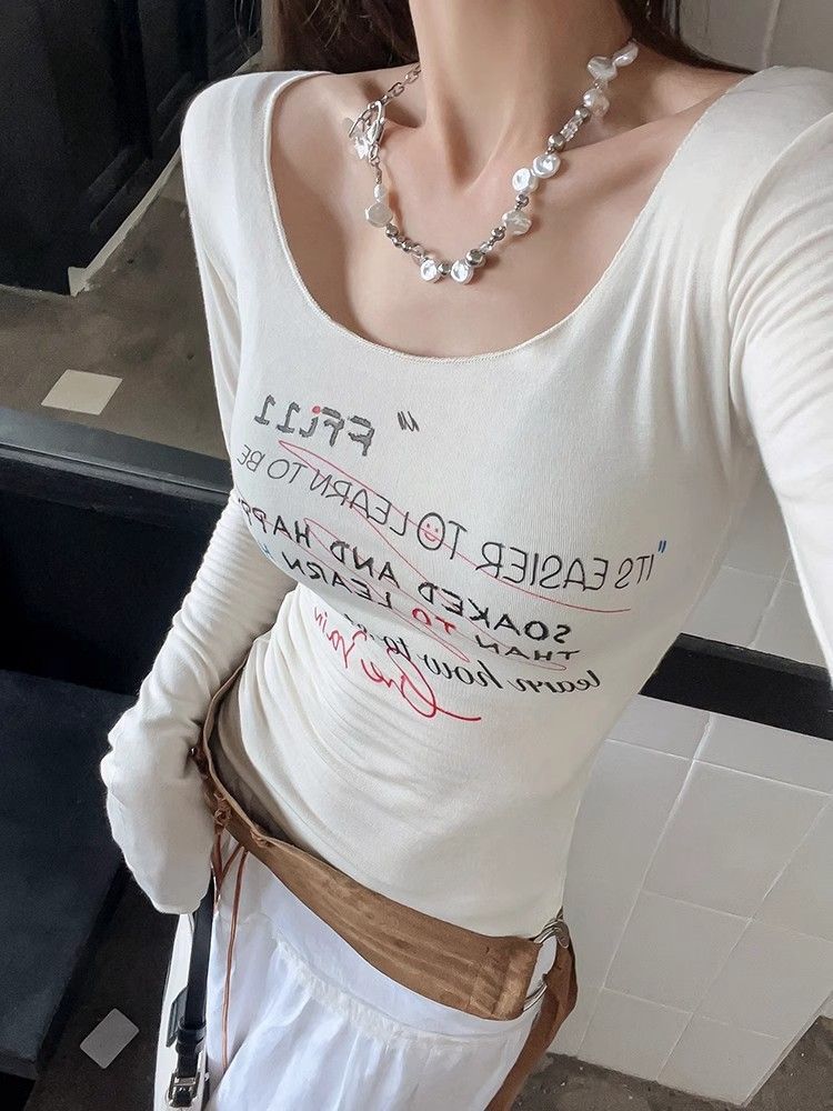 Playera de Manga Larga de Hombro Recto Retro Americano para Mujer Ins Diseño de Moda Nicho Primavera y Otoño Ropa Interior Adelgazante y Afinando Top de Chica Caliente