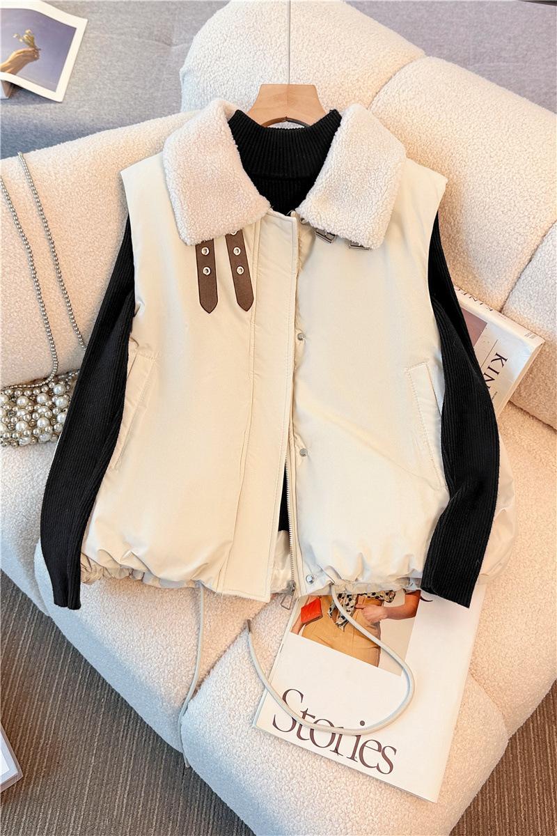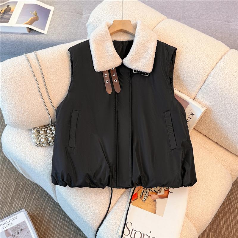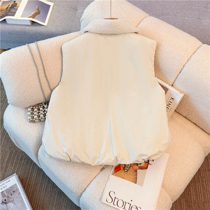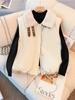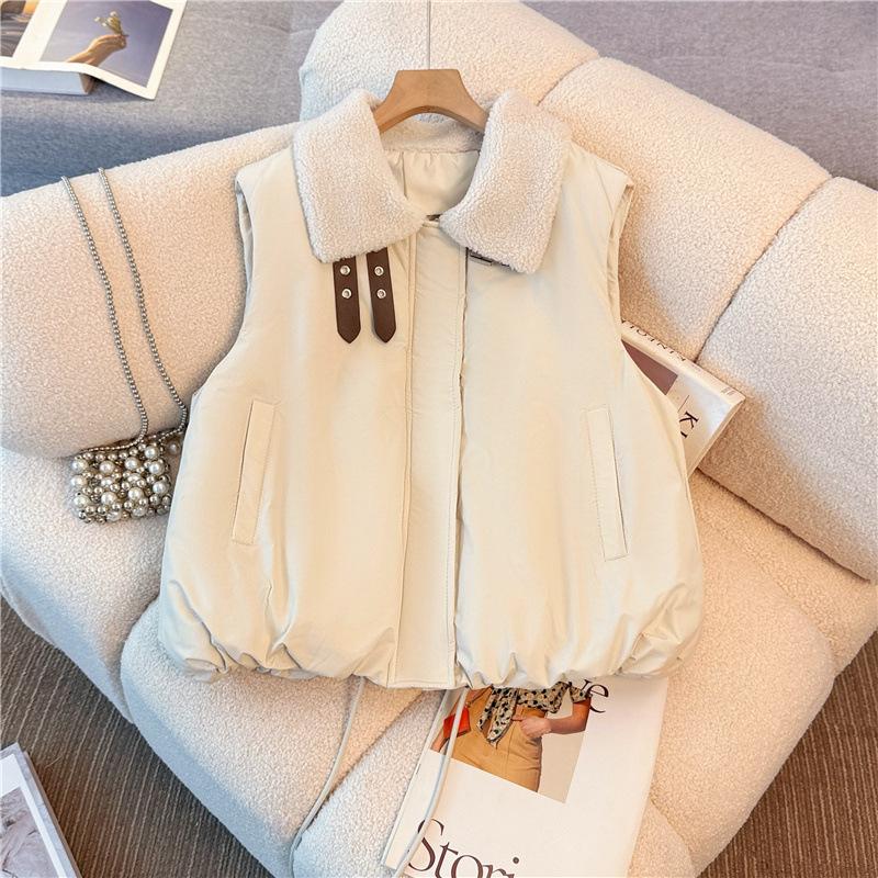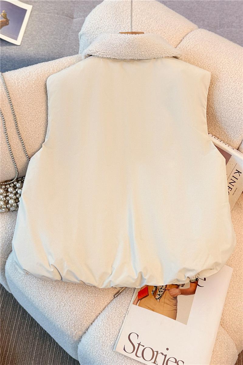 Chaleco Beige de Borrego para Mujer Corto Cuello Vuelto Sin Mangas 2025 Invierno Nuevo Chaqueta Sin Mangas Chaleco Pequeño Ropa Exterior A7673