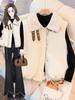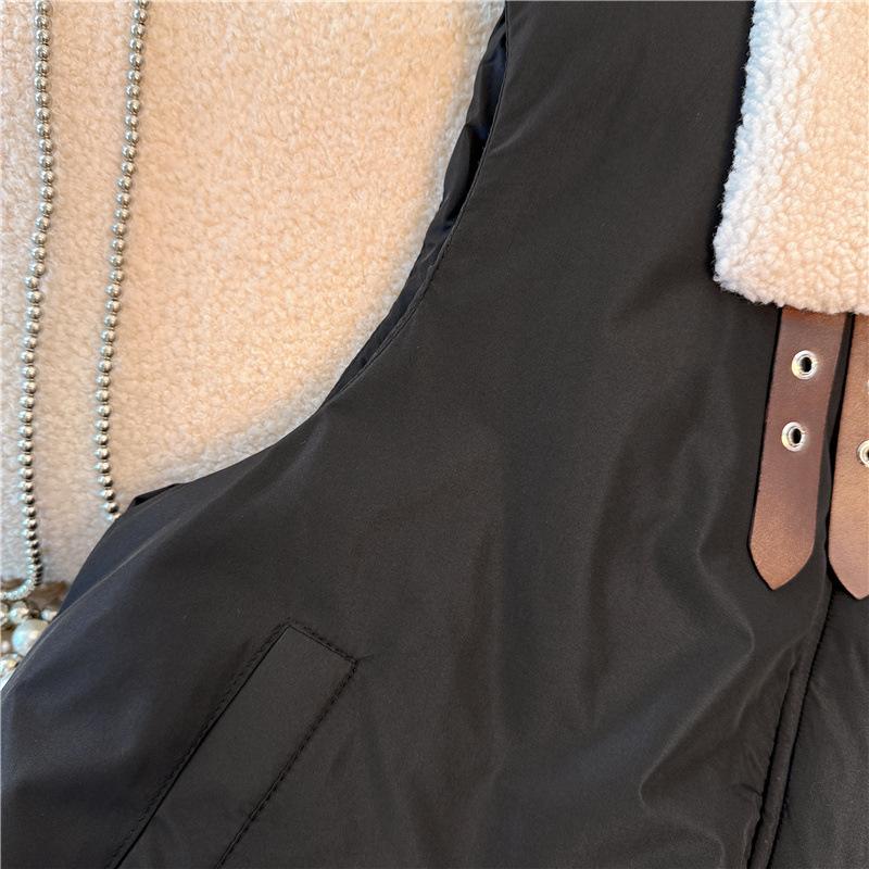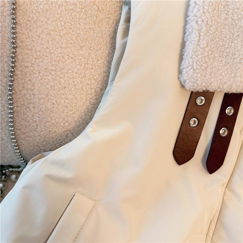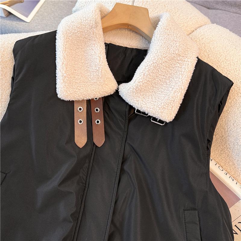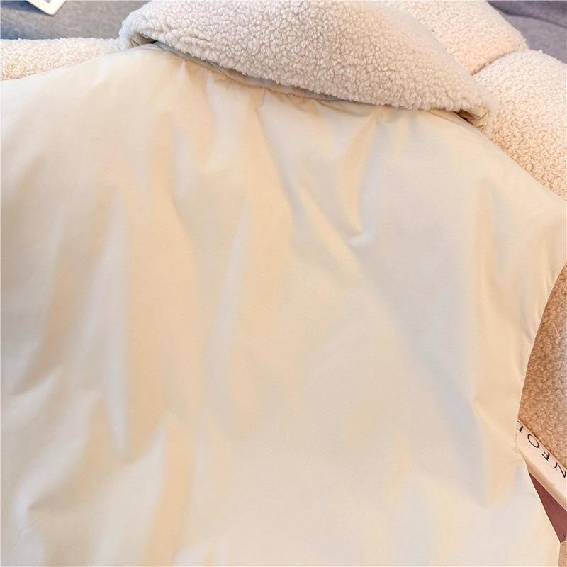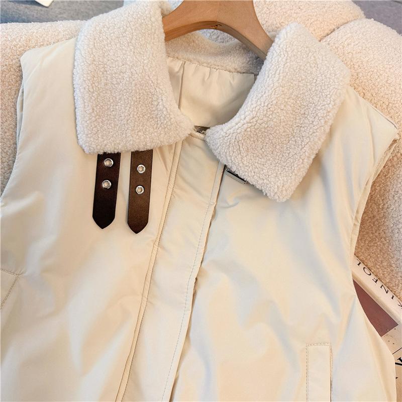 Chaleco Beige de Borrego para Mujer Corto Cuello Vuelto Sin Mangas 2025 Invierno Nuevo Chaqueta Sin Mangas Chaleco Pequeño Ropa Exterior A7673