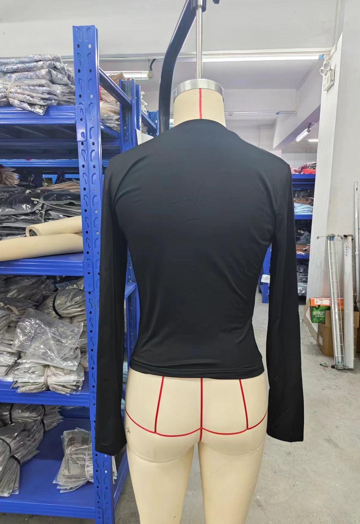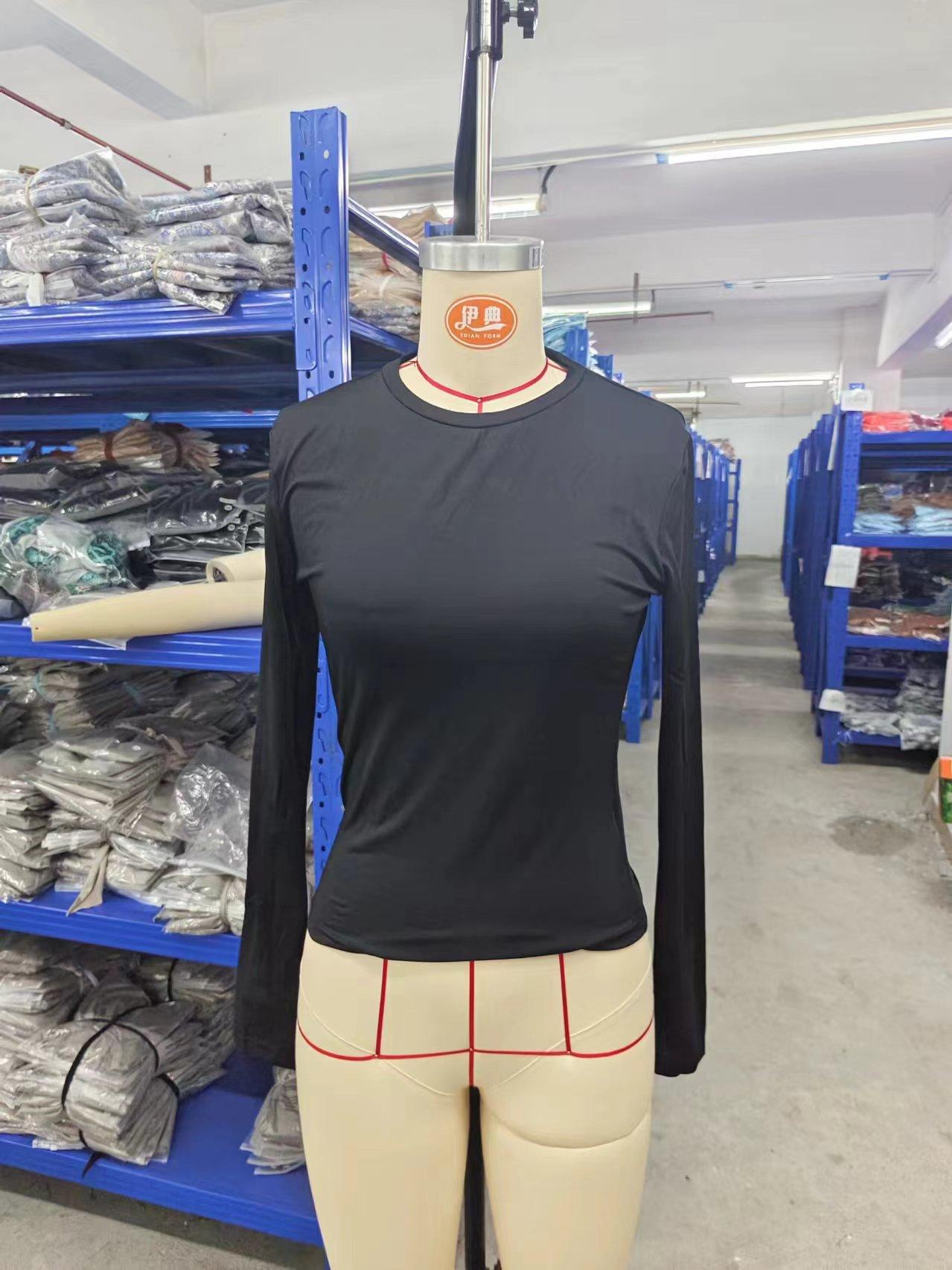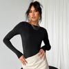 2025 Primavera y Otoño Nuevo Ropa Europea y Americana Amazon Más Vendido Color Sólido Cuello Redondo Manga Larga Camiseta Básica Top
