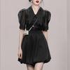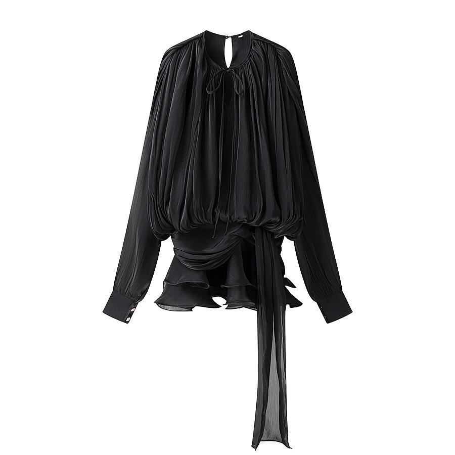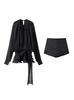 2025 Nuevo Estilo de Verano Estilo Europeo y Americano Diseño de Cinta Plisada Falda de Malla Suelta + Traje de Shorts