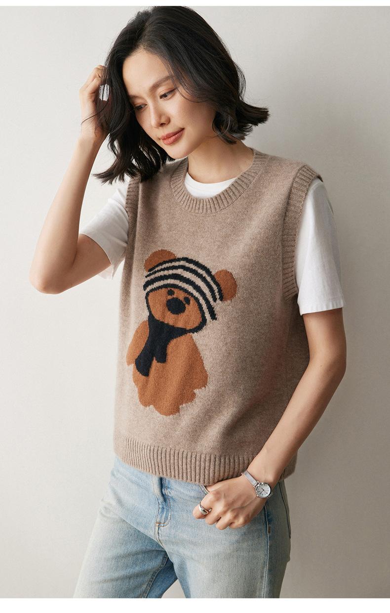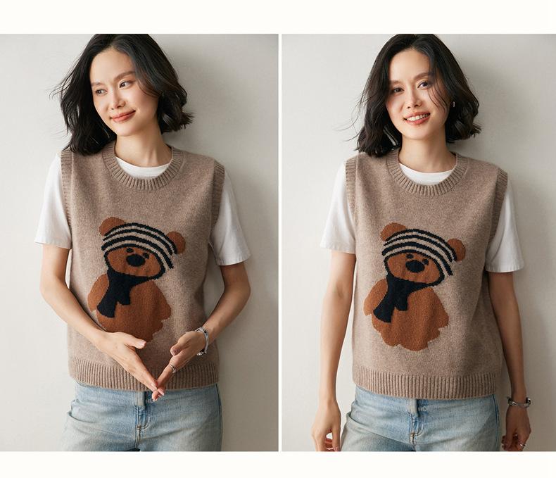 Chaleco de Punto de Cachemira de Cuello Redondo sin Mangas para Mujer 25 Otoño Invierno Suelto Ropa Exterior Chaleco para Capas Cárdigan Suéter sin Mangas Moda