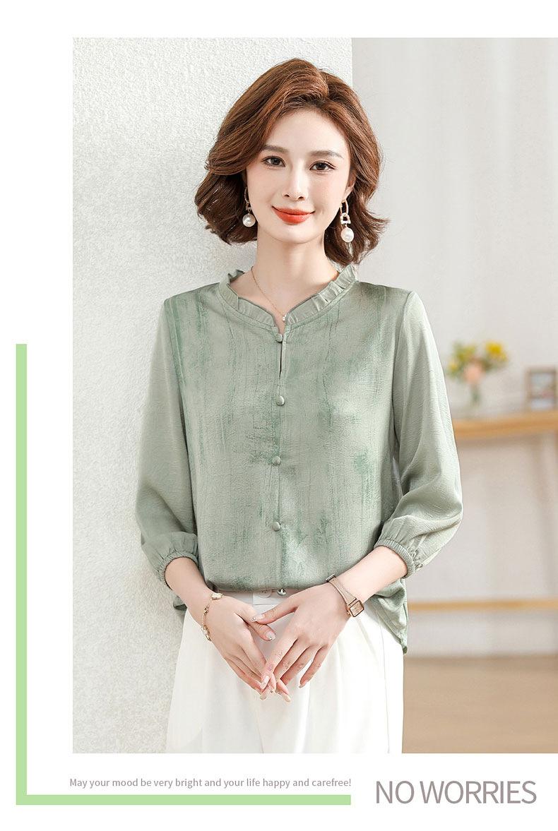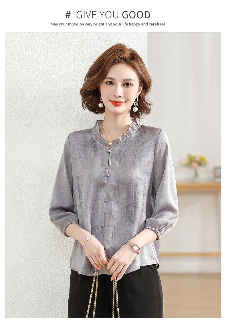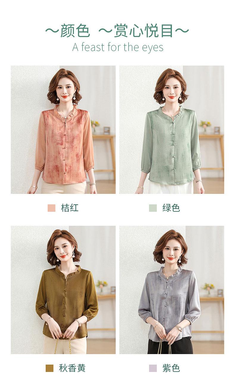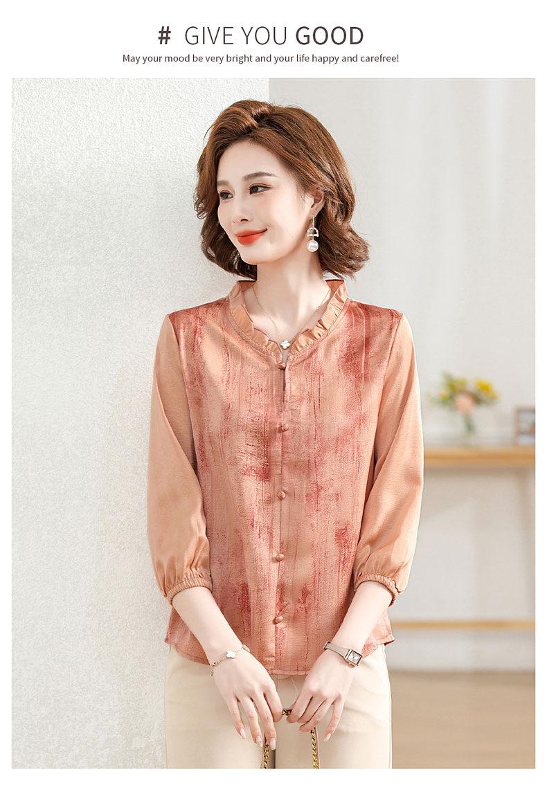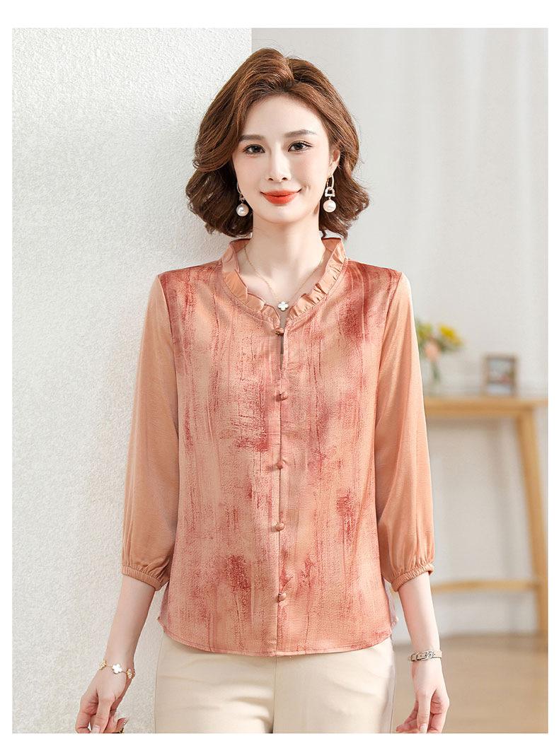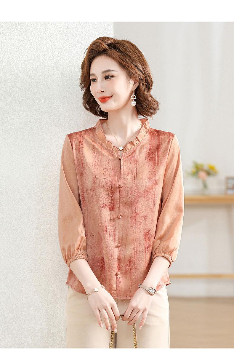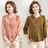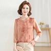 Camisa Pequeña de Gasa de Primavera para Mamá Moda Estilo Occidental Camiseta de Nueve Mangas Top 2025 Nuevo Top de Verano para Mujeres de Mediana Edad y Mayores
