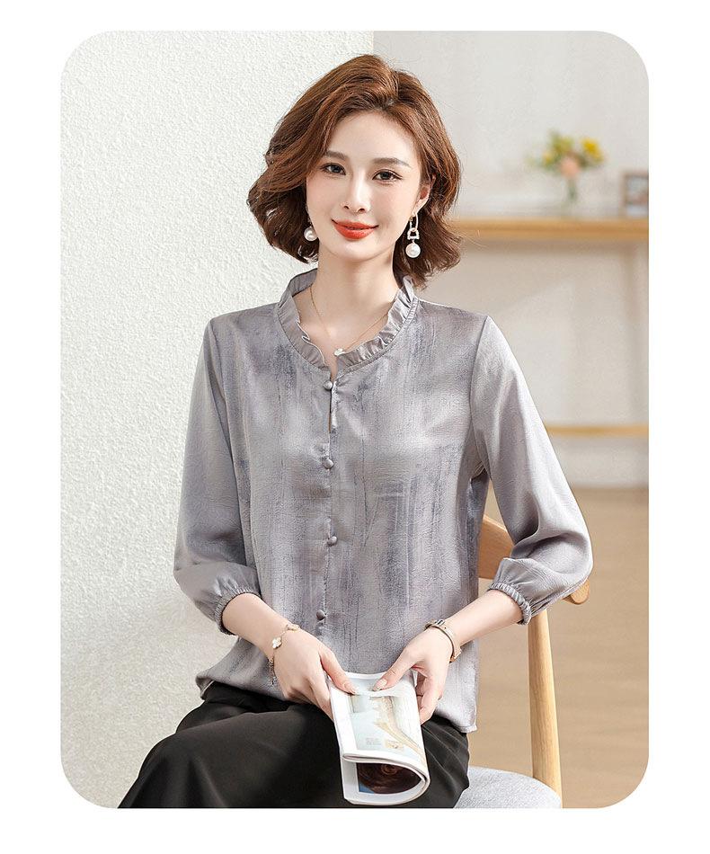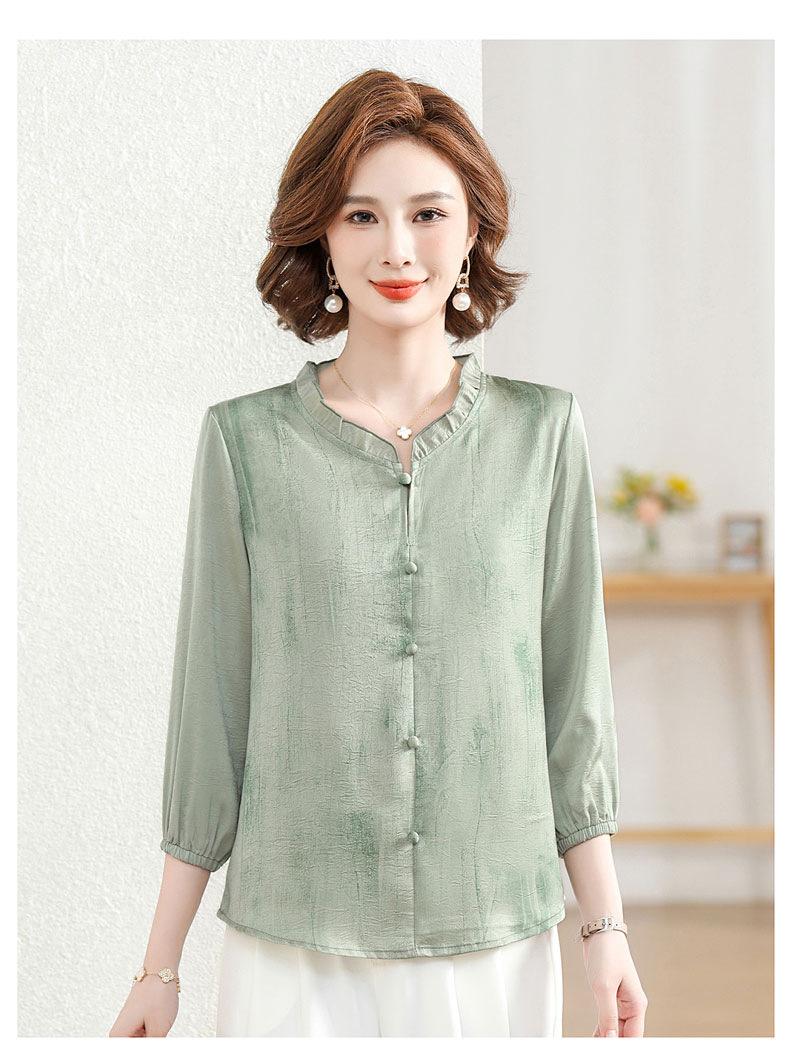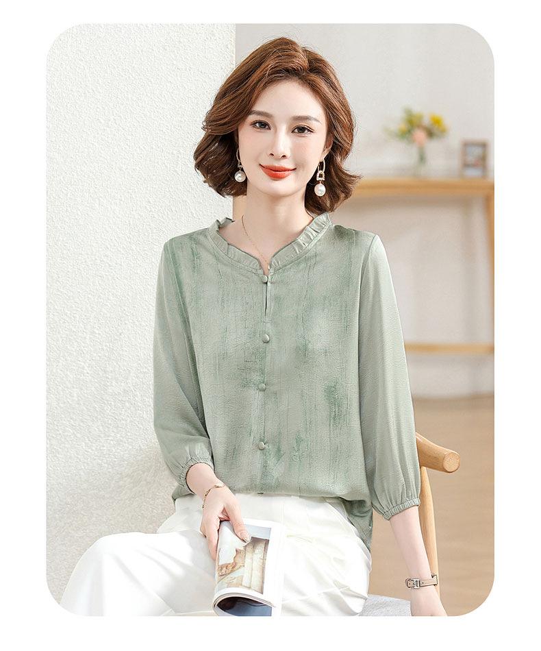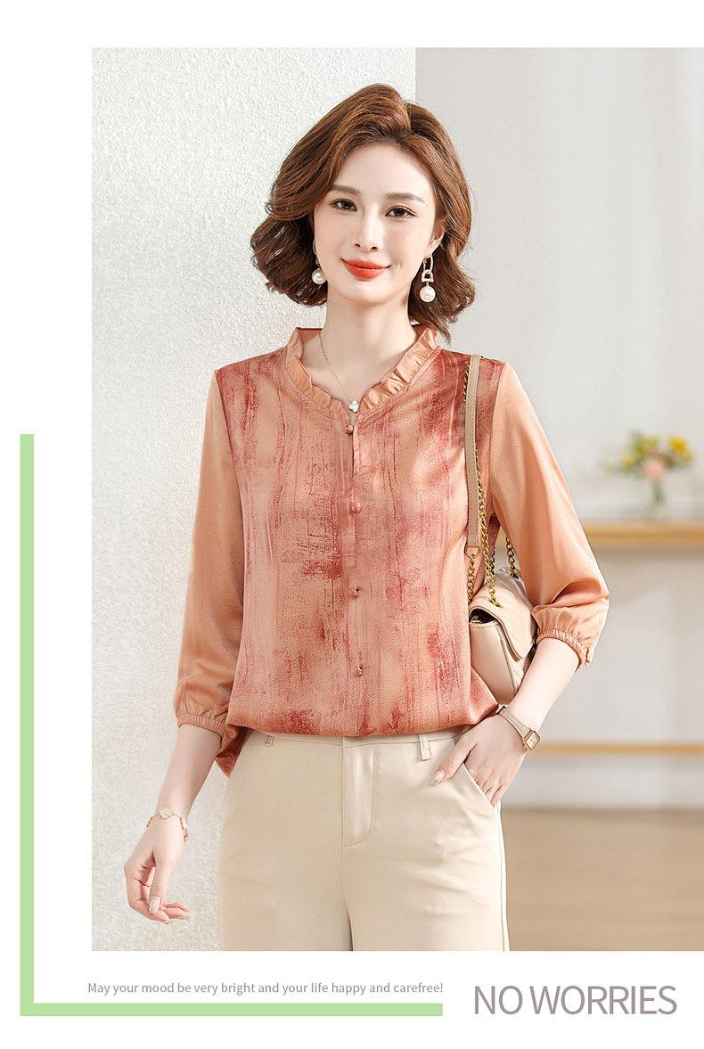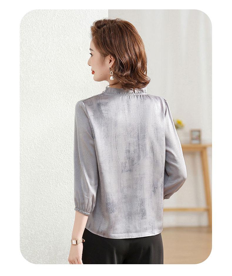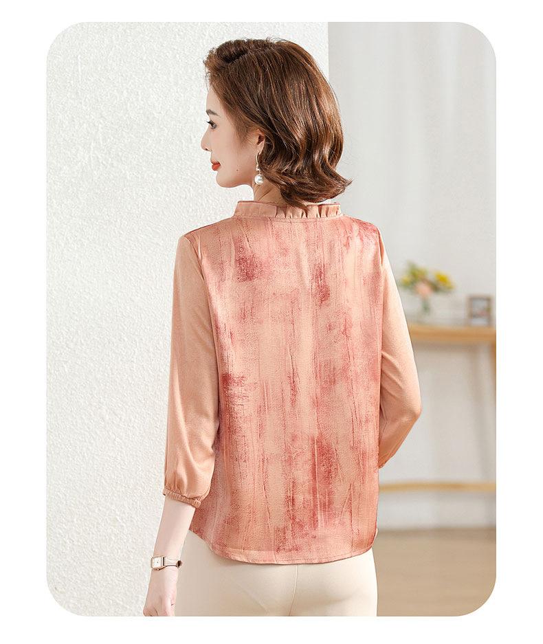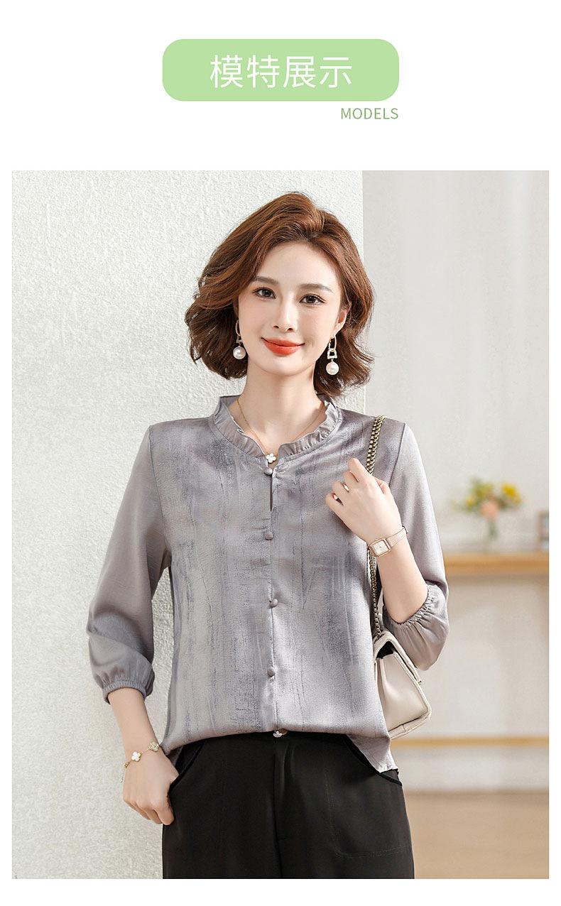 Camisa Pequeña de Gasa de Primavera para Mamá Moda Estilo Occidental Camiseta de Nueve Mangas Top 2025 Nuevo Top de Verano para Mujeres de Mediana Edad y Mayores