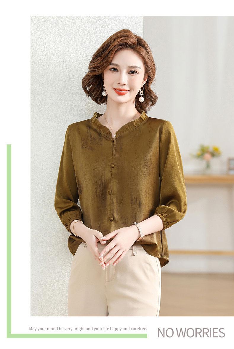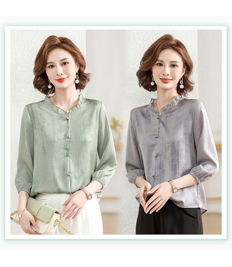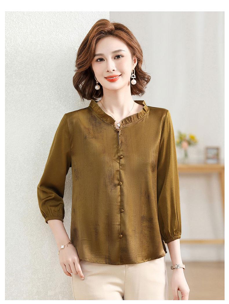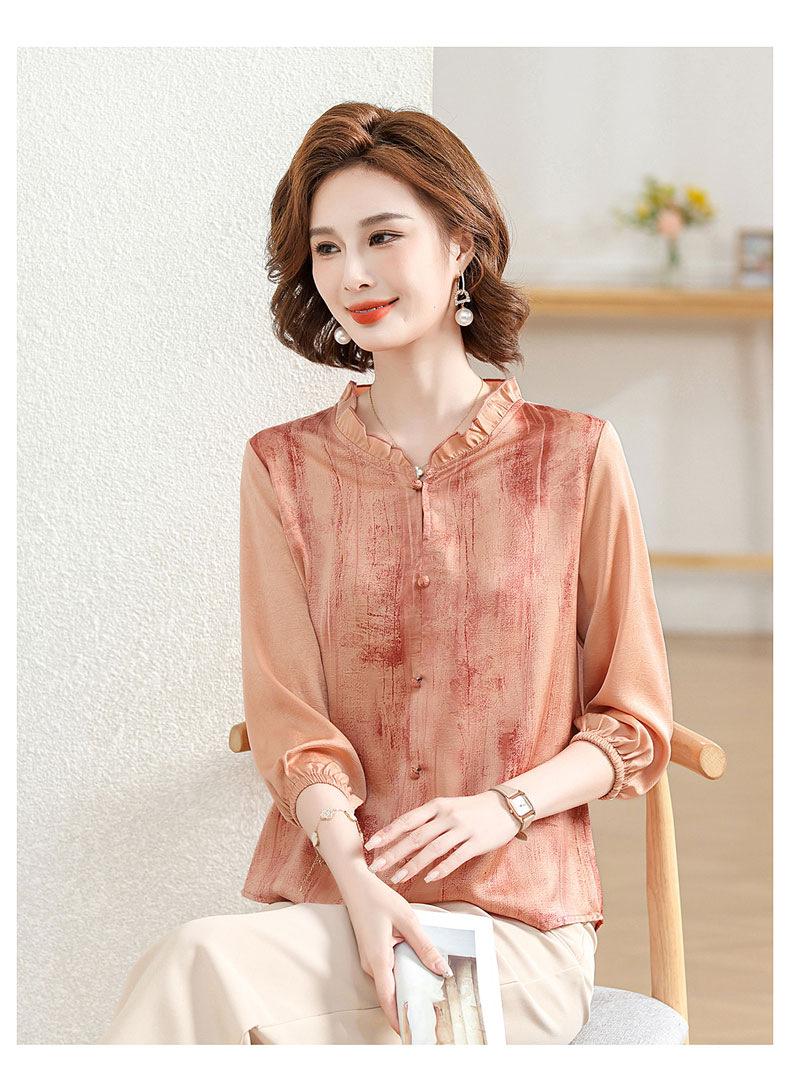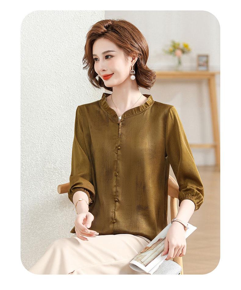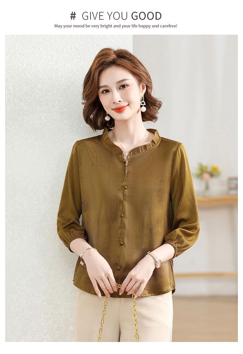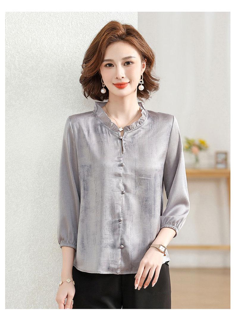 Camisa Pequeña de Gasa de Primavera para Mamá Moda Estilo Occidental Camiseta de Nueve Mangas Top 2025 Nuevo Top de Verano para Mujeres de Mediana Edad y Mayores