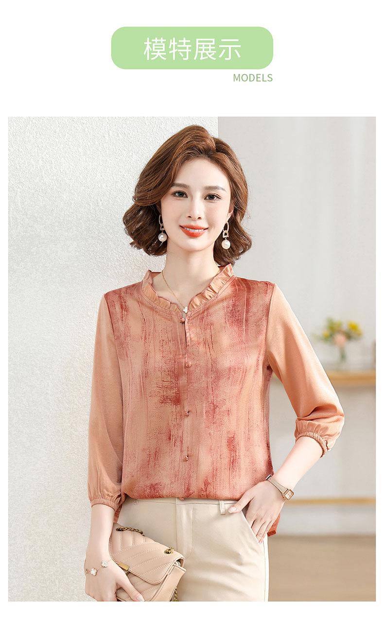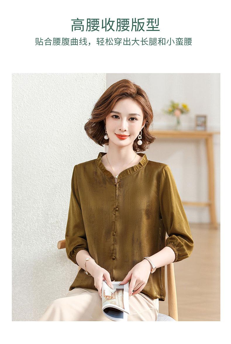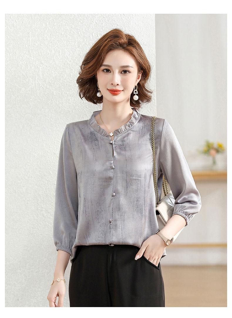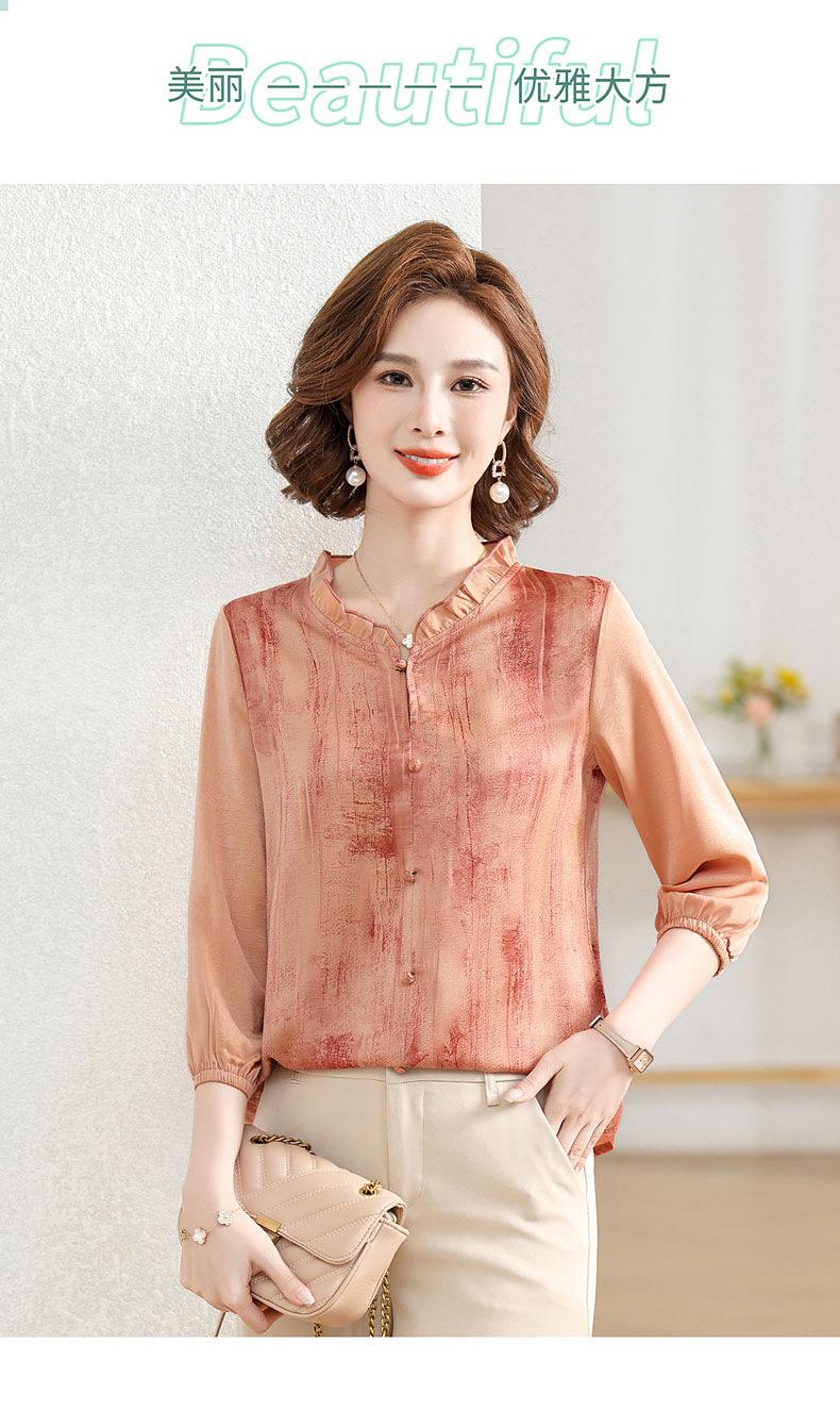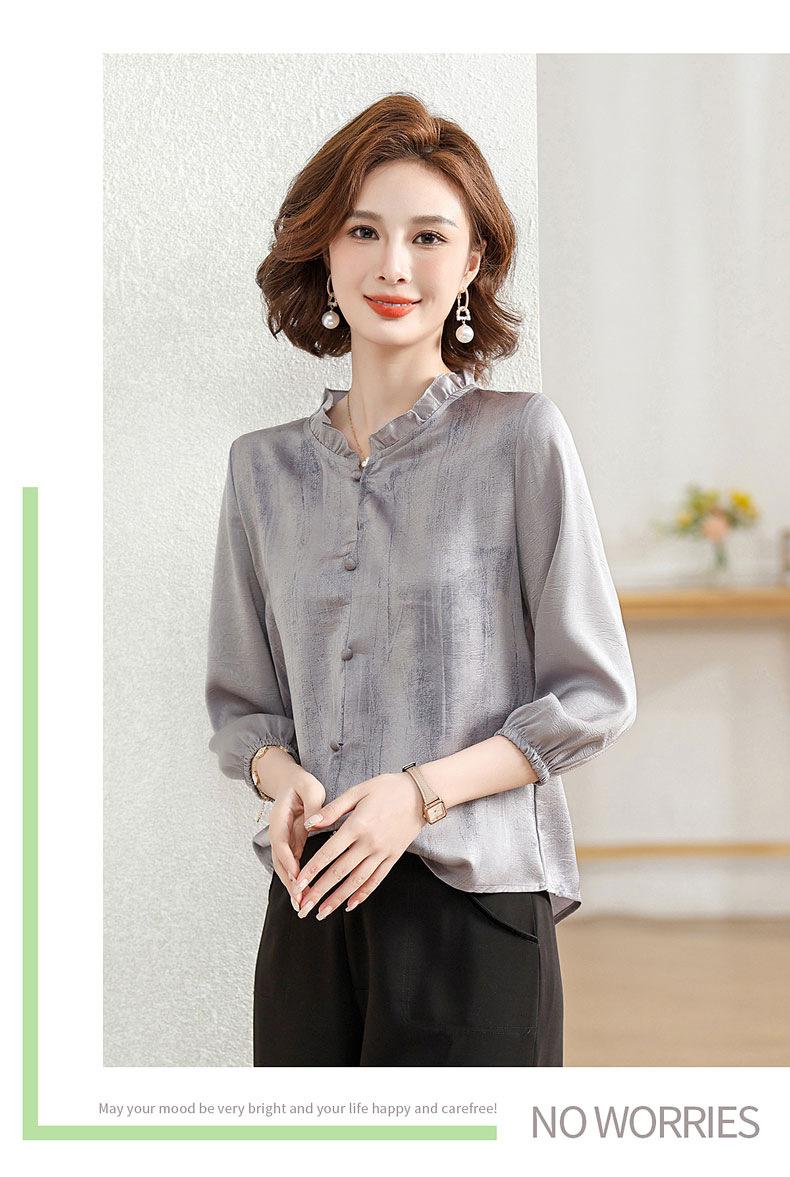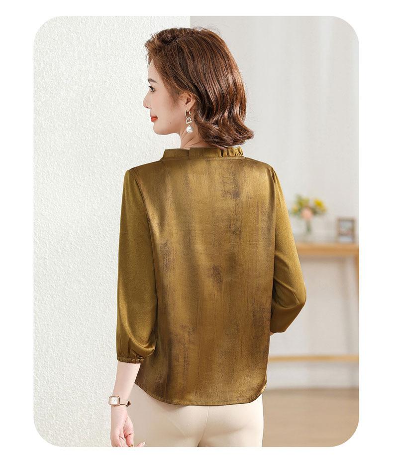 Camisa Pequeña de Gasa de Primavera para Mamá Moda Estilo Occidental Camiseta de Nueve Mangas Top 2025 Nuevo Top de Verano para Mujeres de Mediana Edad y Mayores