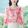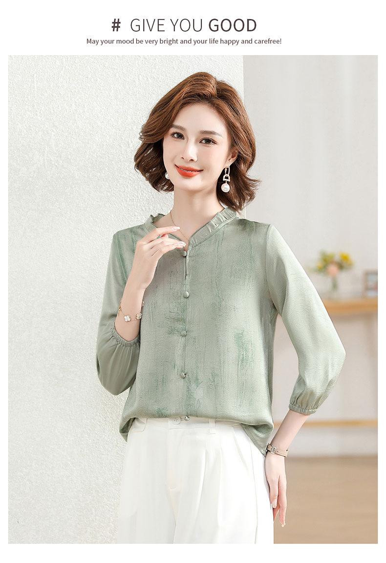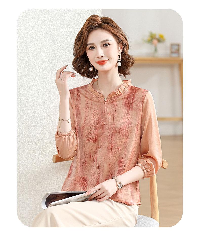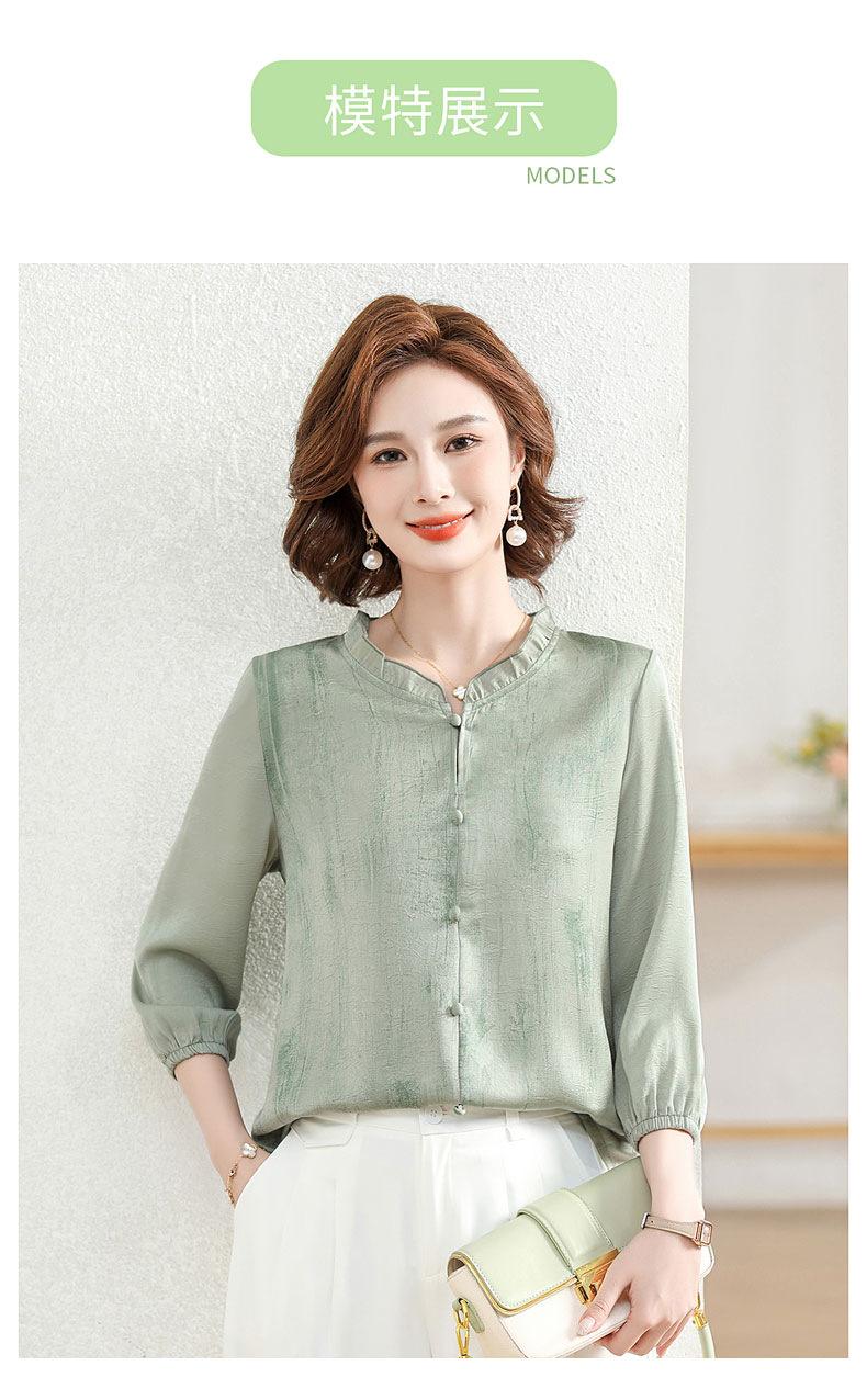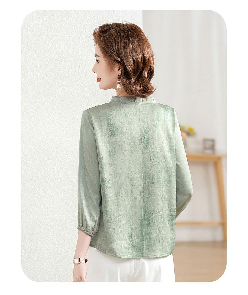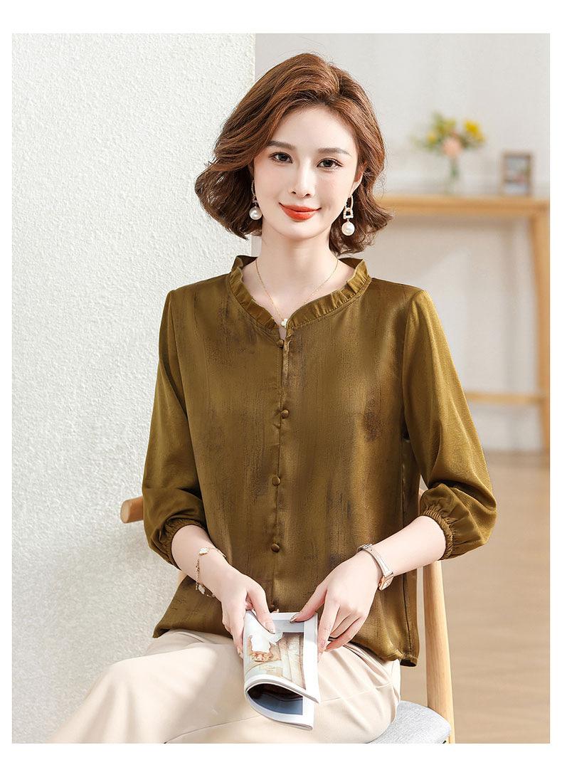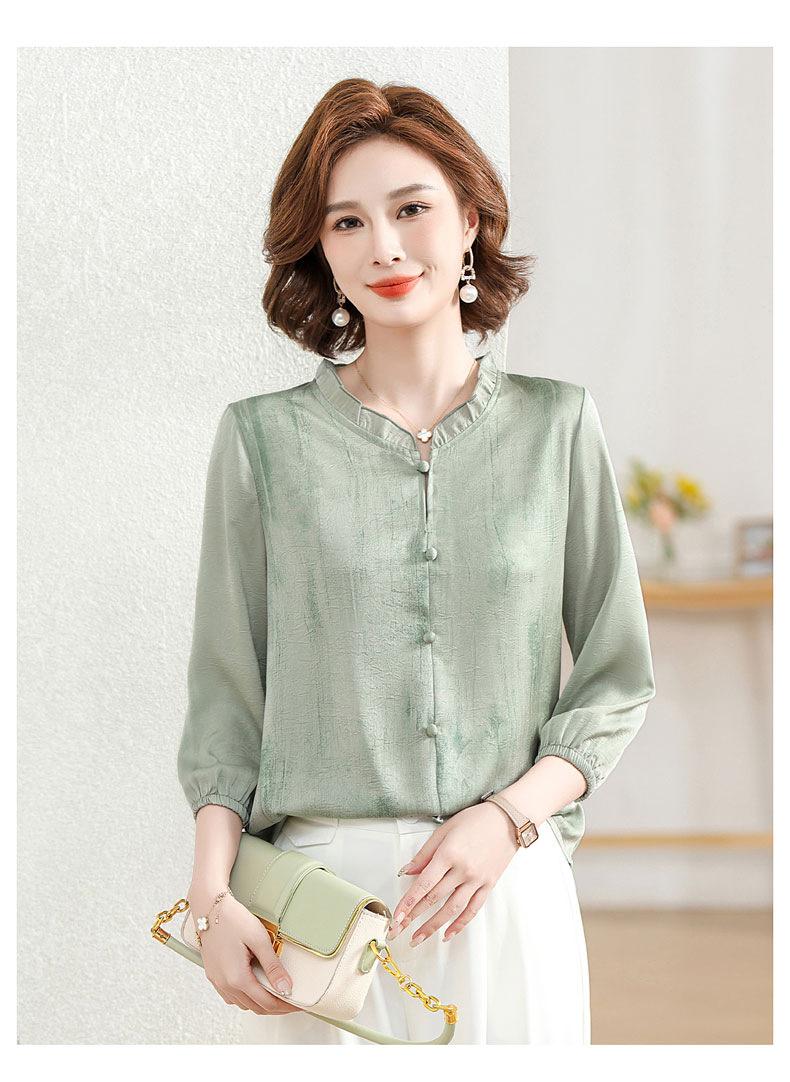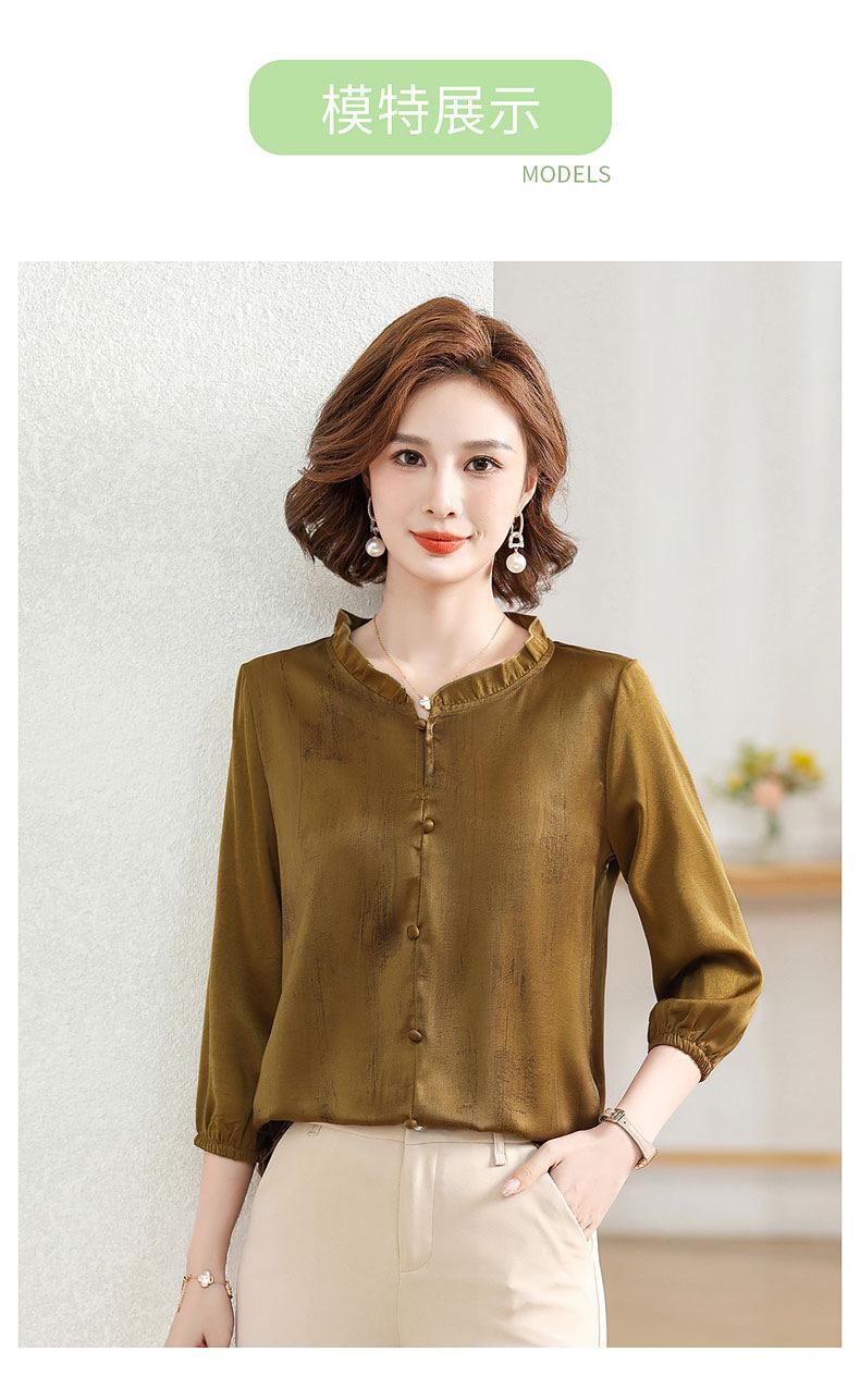 Camisa Pequeña de Gasa de Primavera para Mamá Moda Estilo Occidental Camiseta de Nueve Mangas Top 2025 Nuevo Top de Verano para Mujeres de Mediana Edad y Mayores