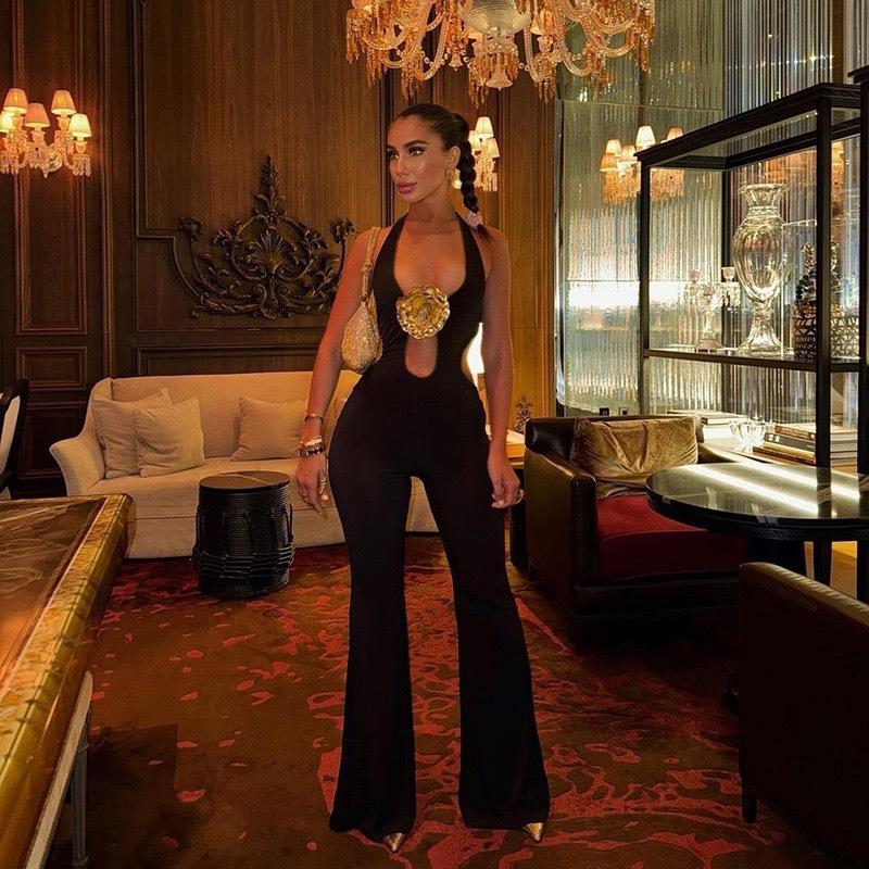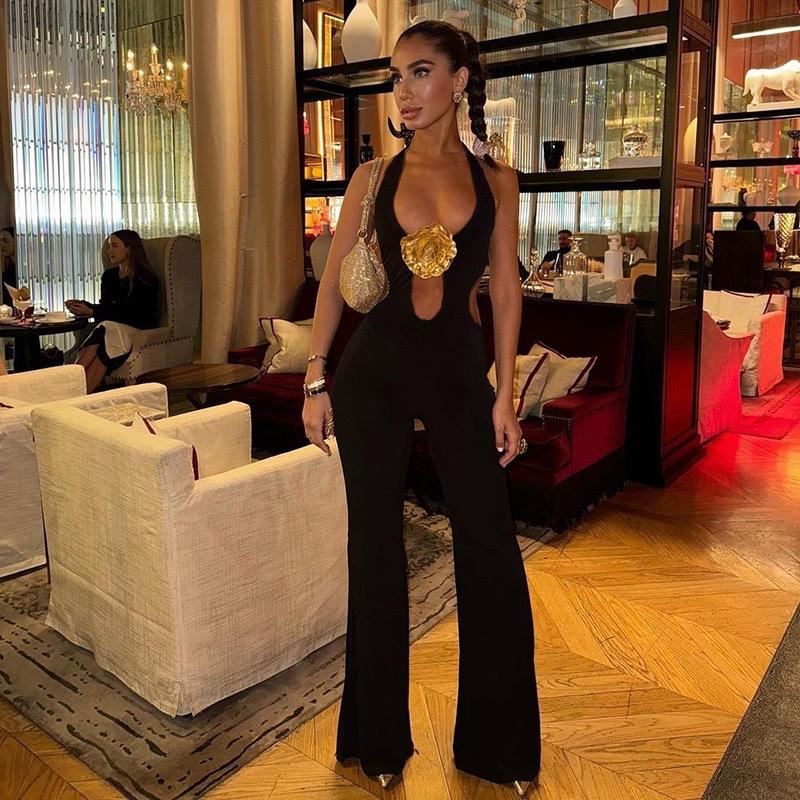2025 Verano Nuevo Mono Transfronterizo Estilo Europeo y Americano Flor Tridimensional Estilo Chica Caliente Adelgazante Personalidad Ropa de Mujer Halter