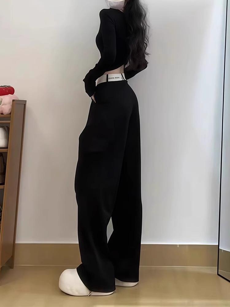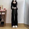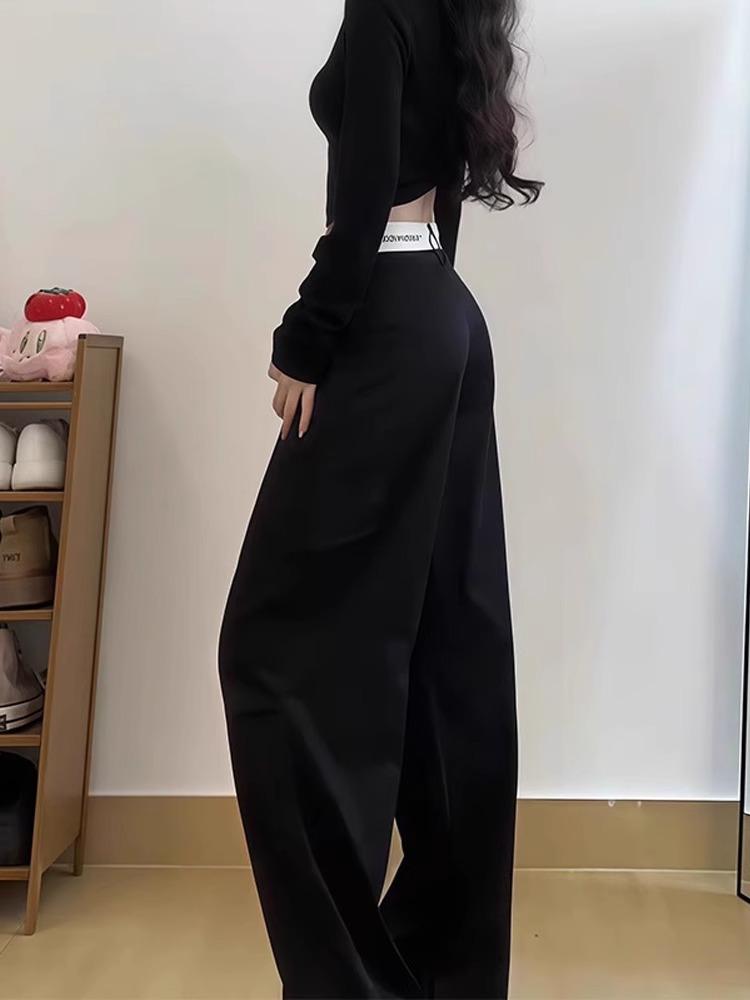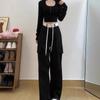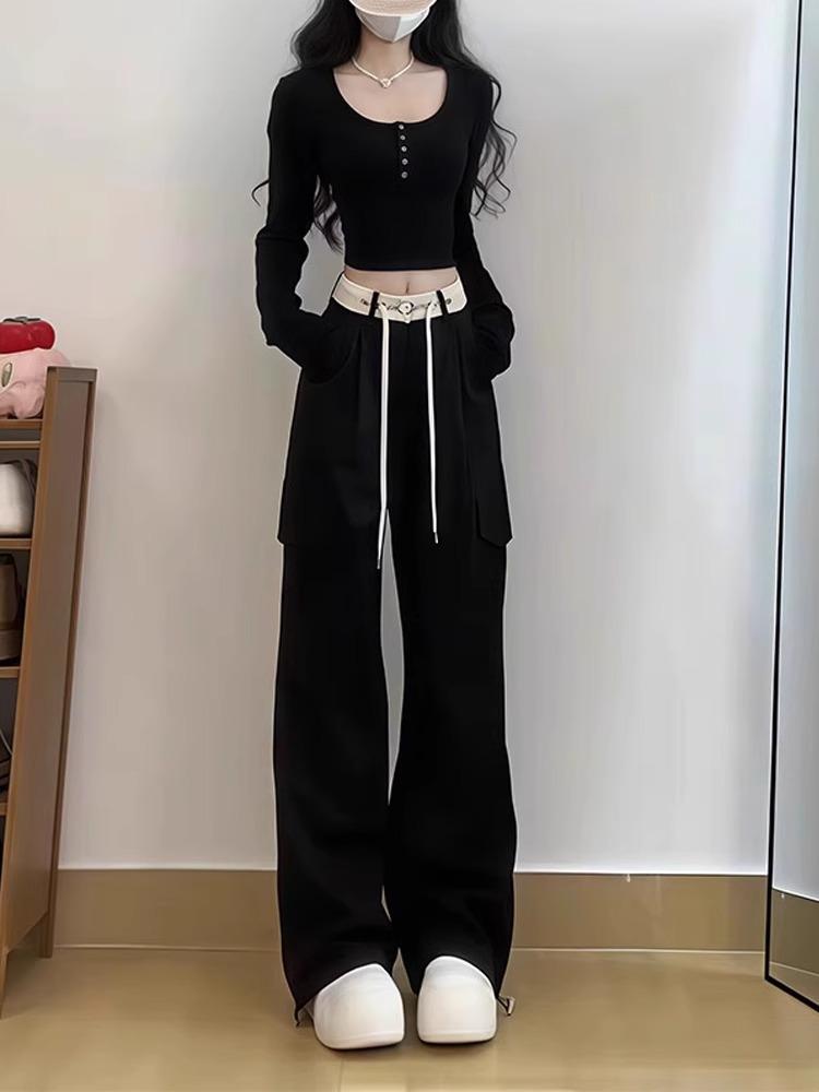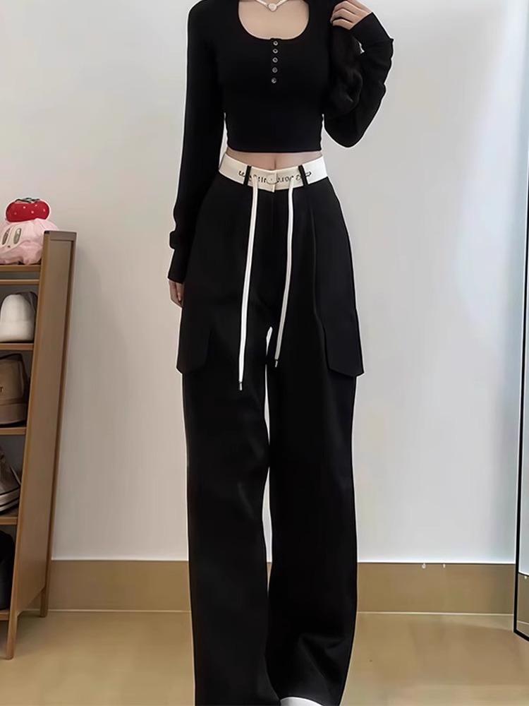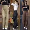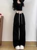 Pantalones Cargo Negros para Mujer Verano 2025 Nuevo Cintura Alta Suelto Adelgazante Versátil Casual Pierna Ancha Largo hasta el Piso