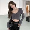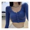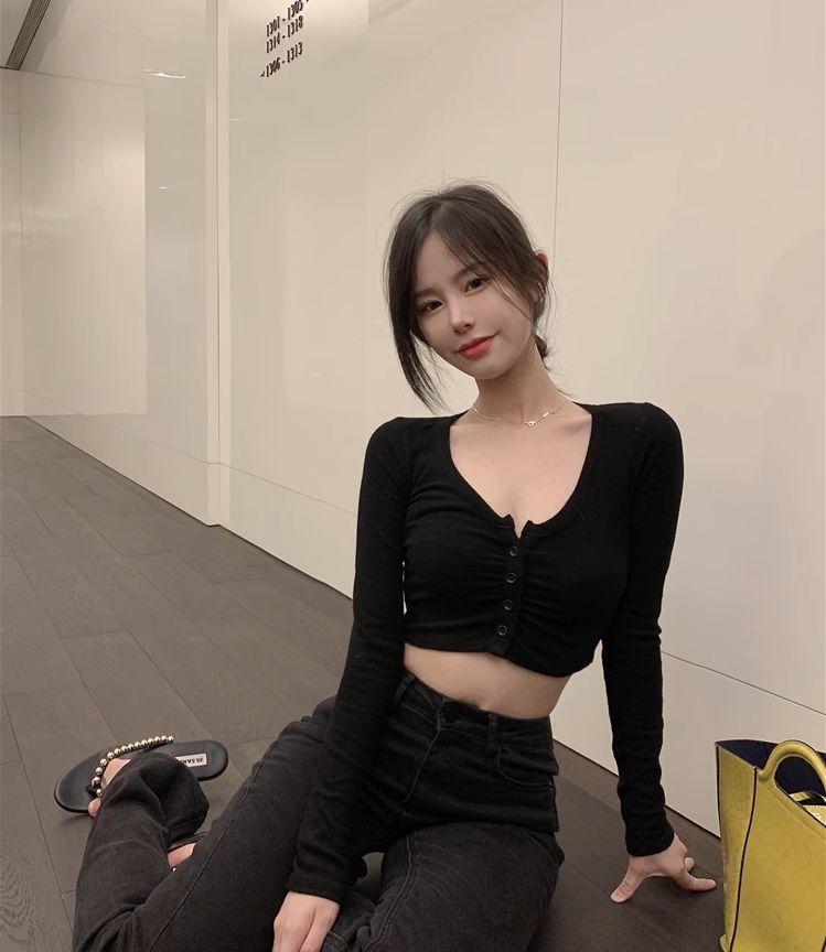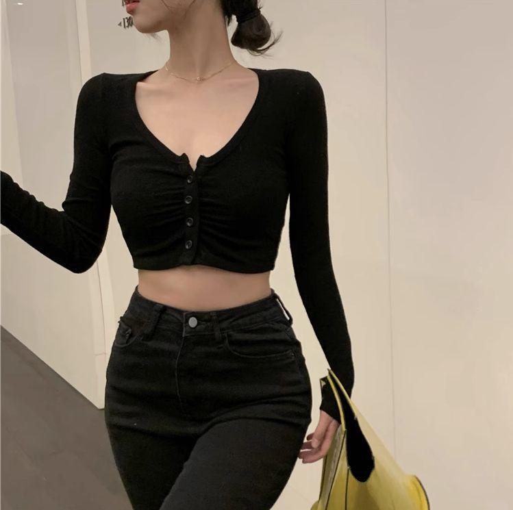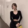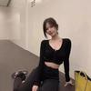 Camiseta de manga larga interior ajustada con cuello en V y cintura alta estilo BM para mujer, ideal para primavera, otoño e invierno.