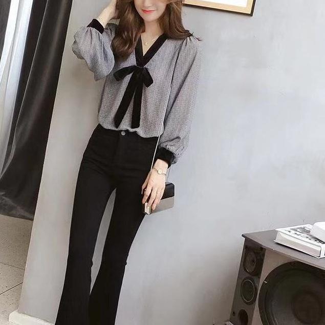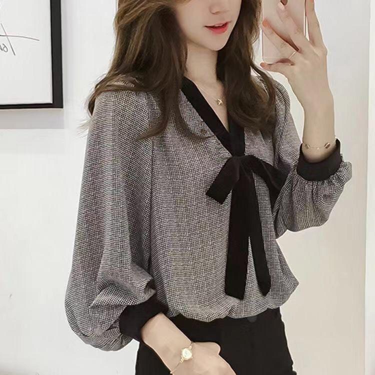 Camisa Lazo Cuello Temperamento Mujer Otoño Primavera Nueva Nicho Chic Manga Larga Blusa Talla Grande Top Favorecedor