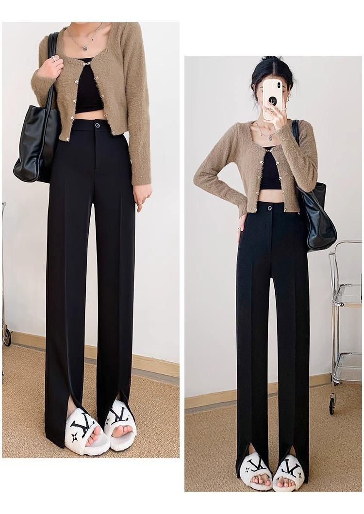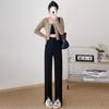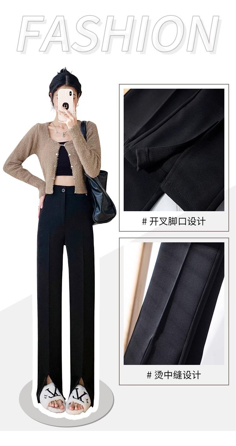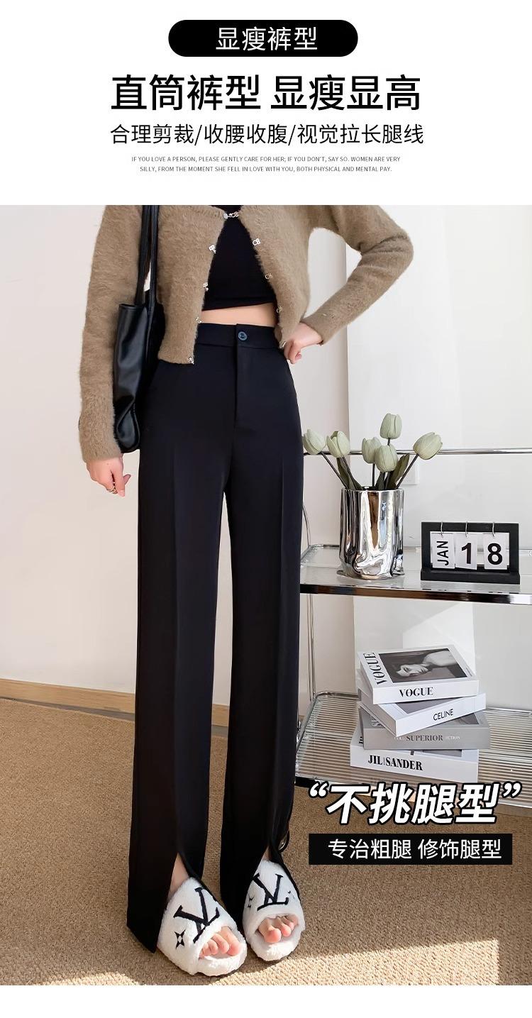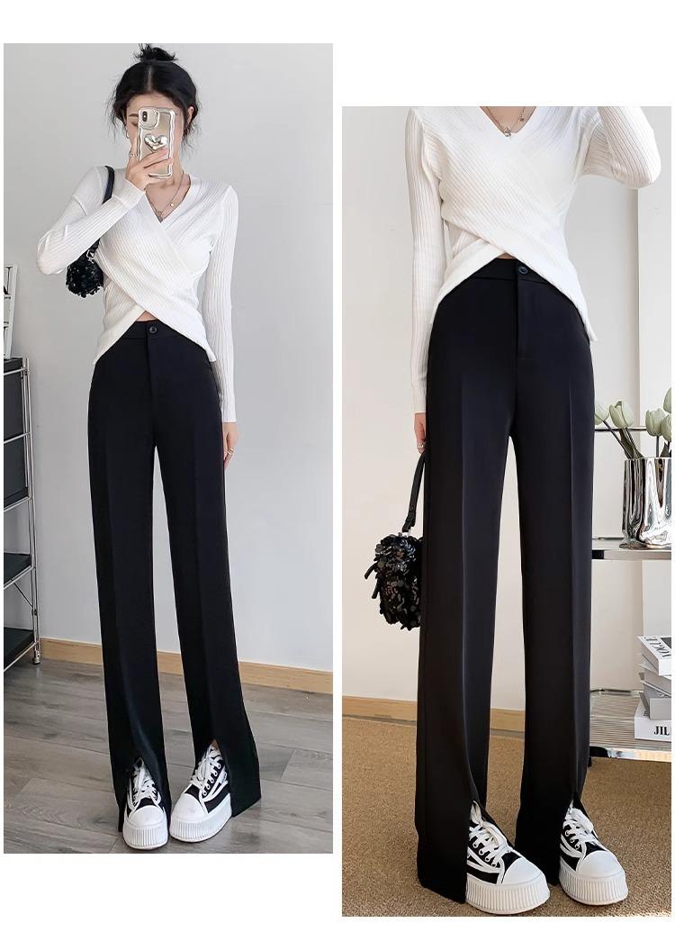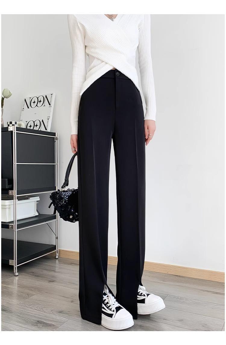 Pantalones de traje divididos para mujer primavera y otoño verano 2025 nuevos cintura alta rectos negros adelgazantes versión pequeña estrecha pantalones de caída