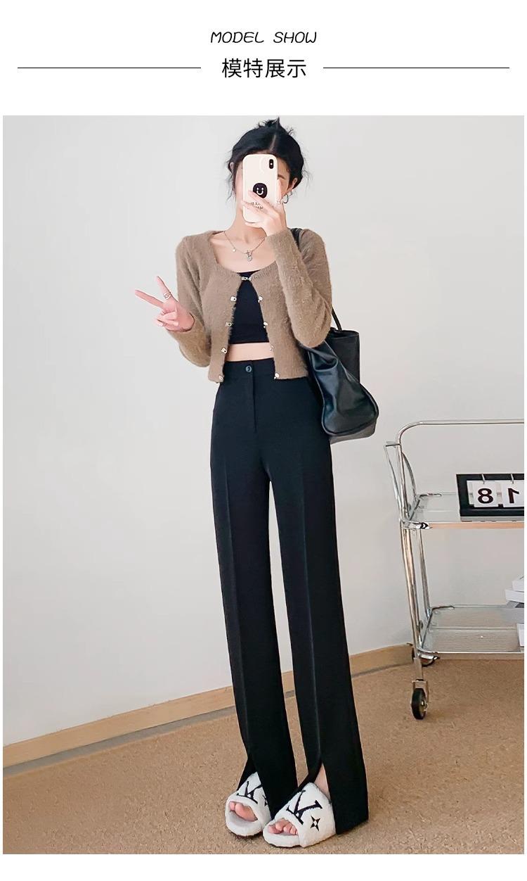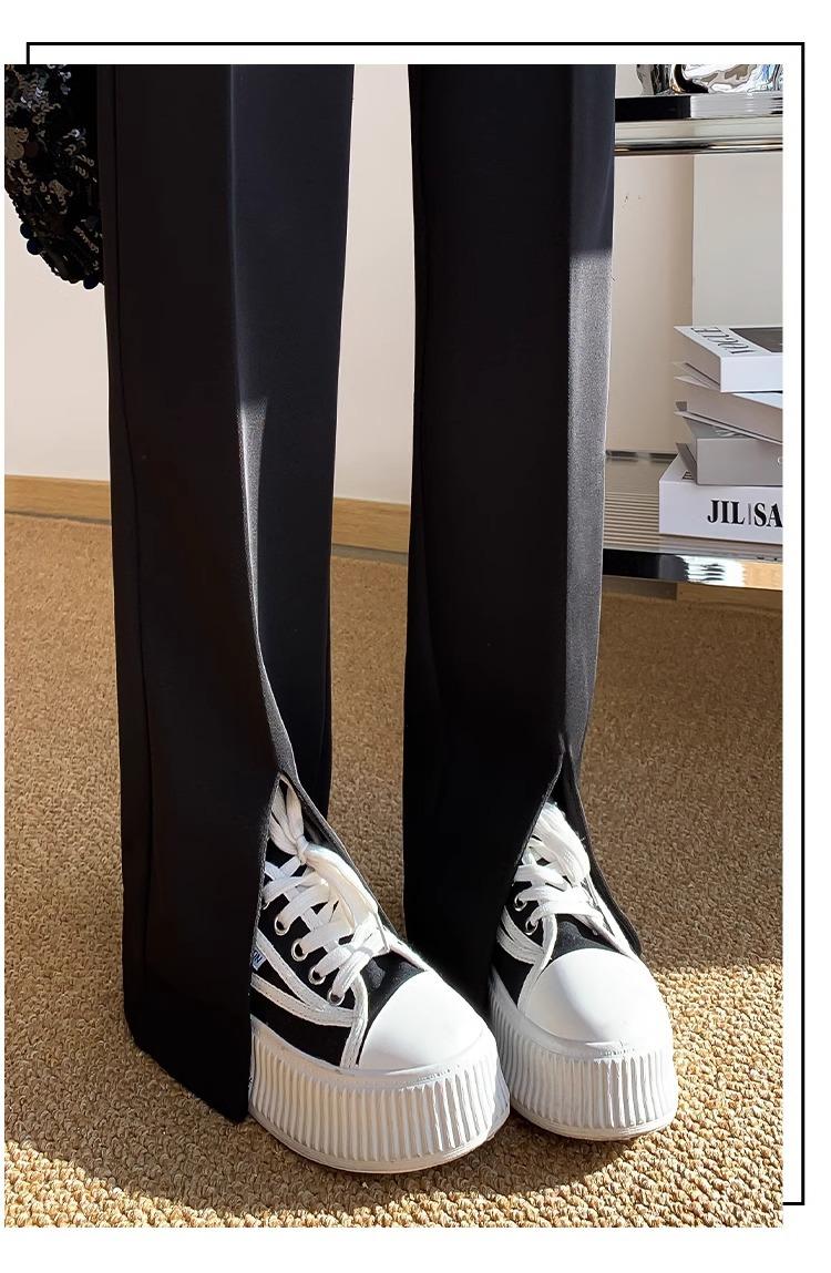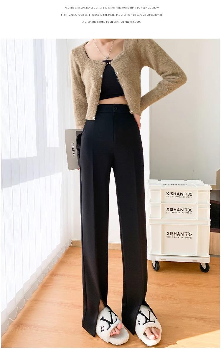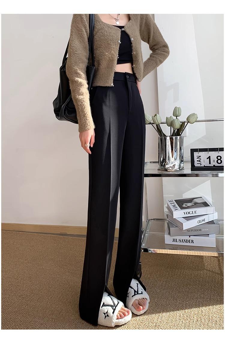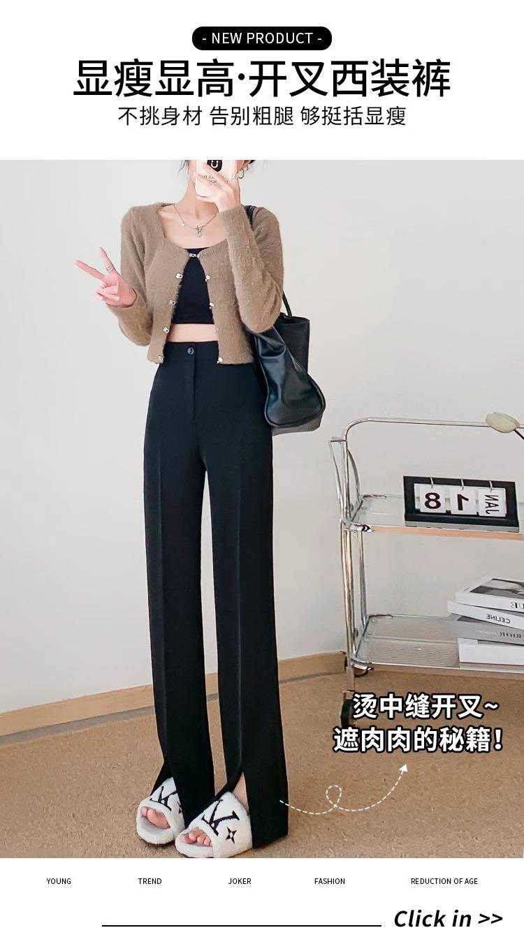 Pantalones de traje divididos para mujer primavera y otoño verano 2025 nuevos cintura alta rectos negros adelgazantes versión pequeña estrecha pantalones de caída