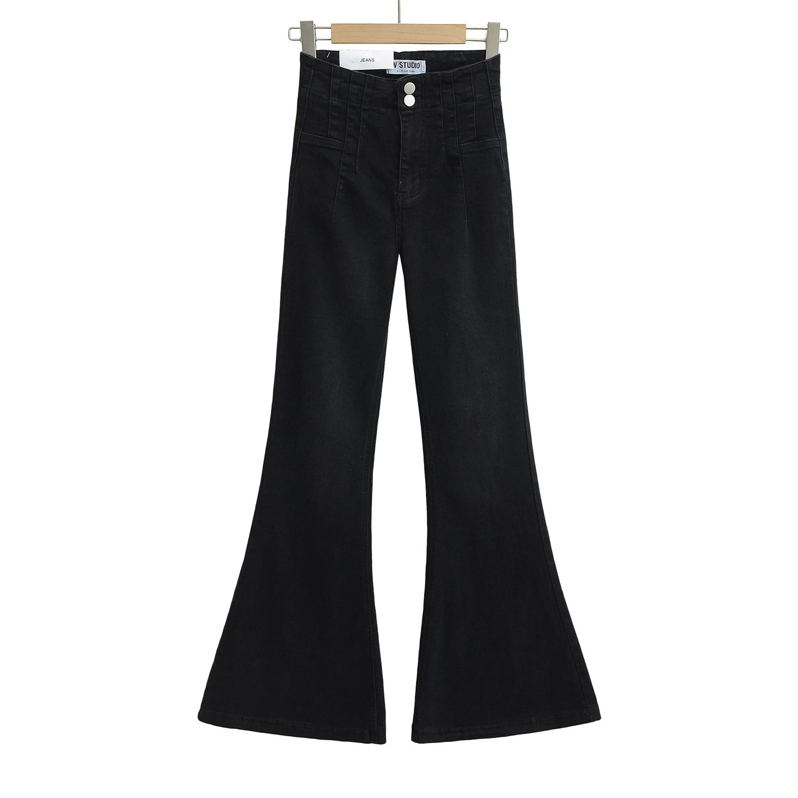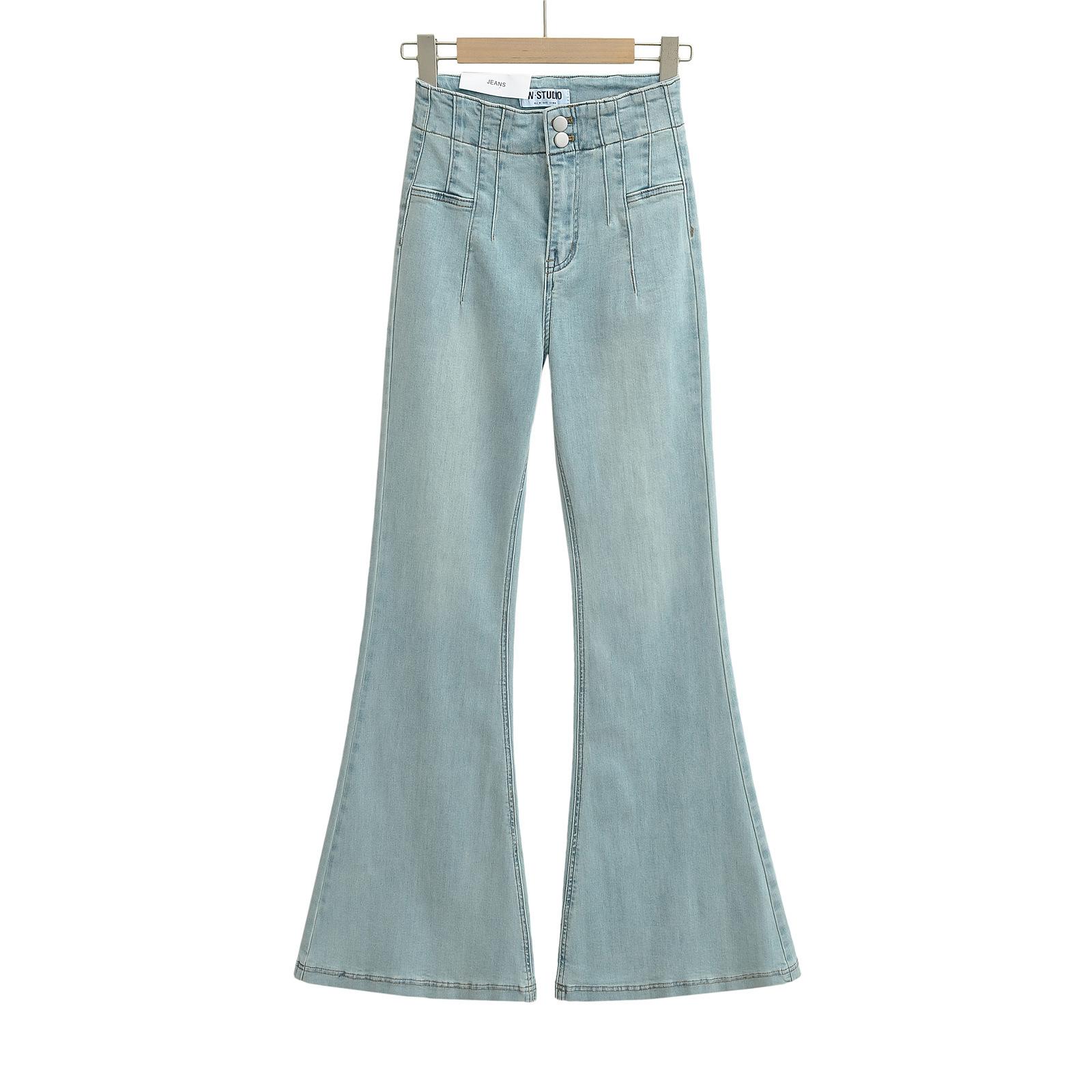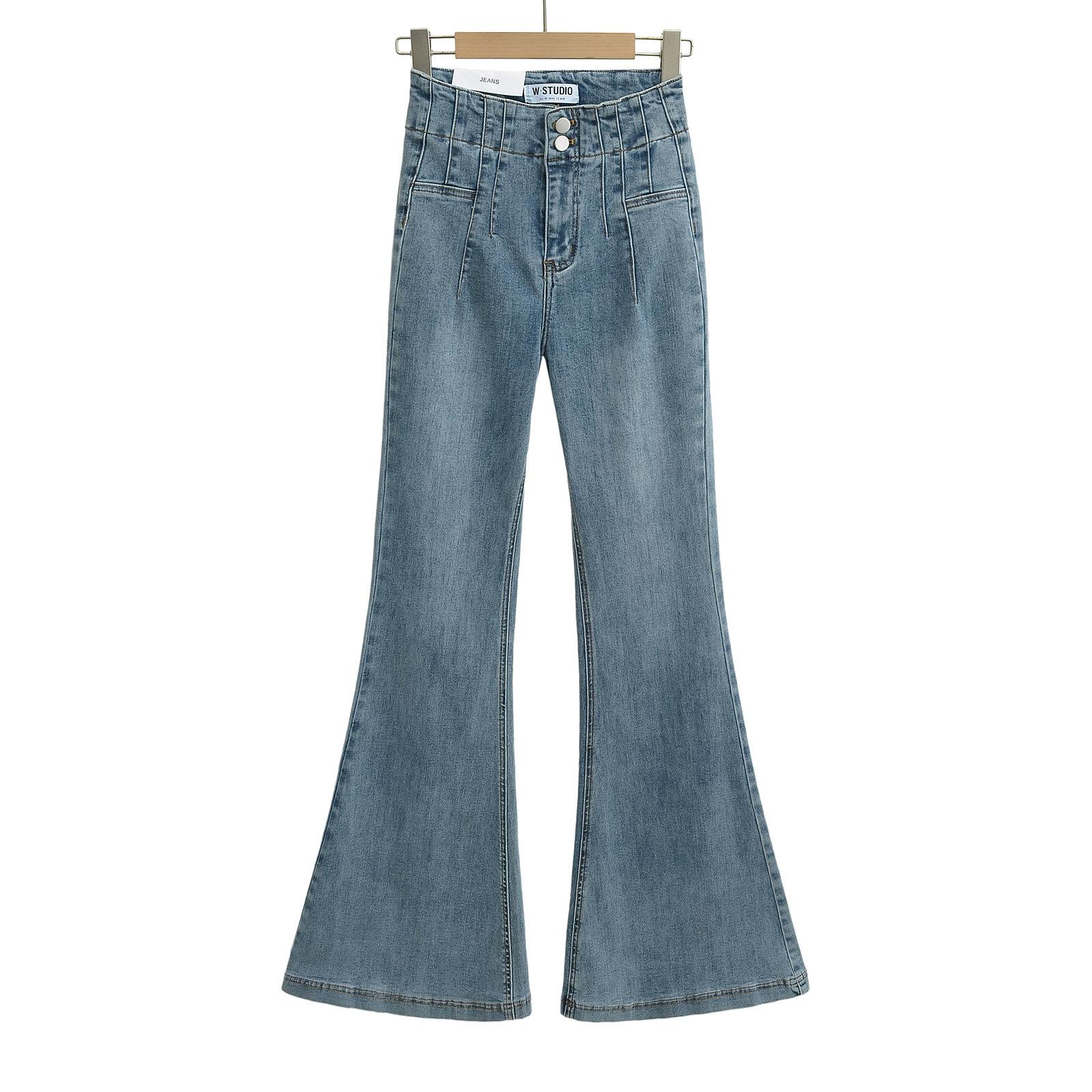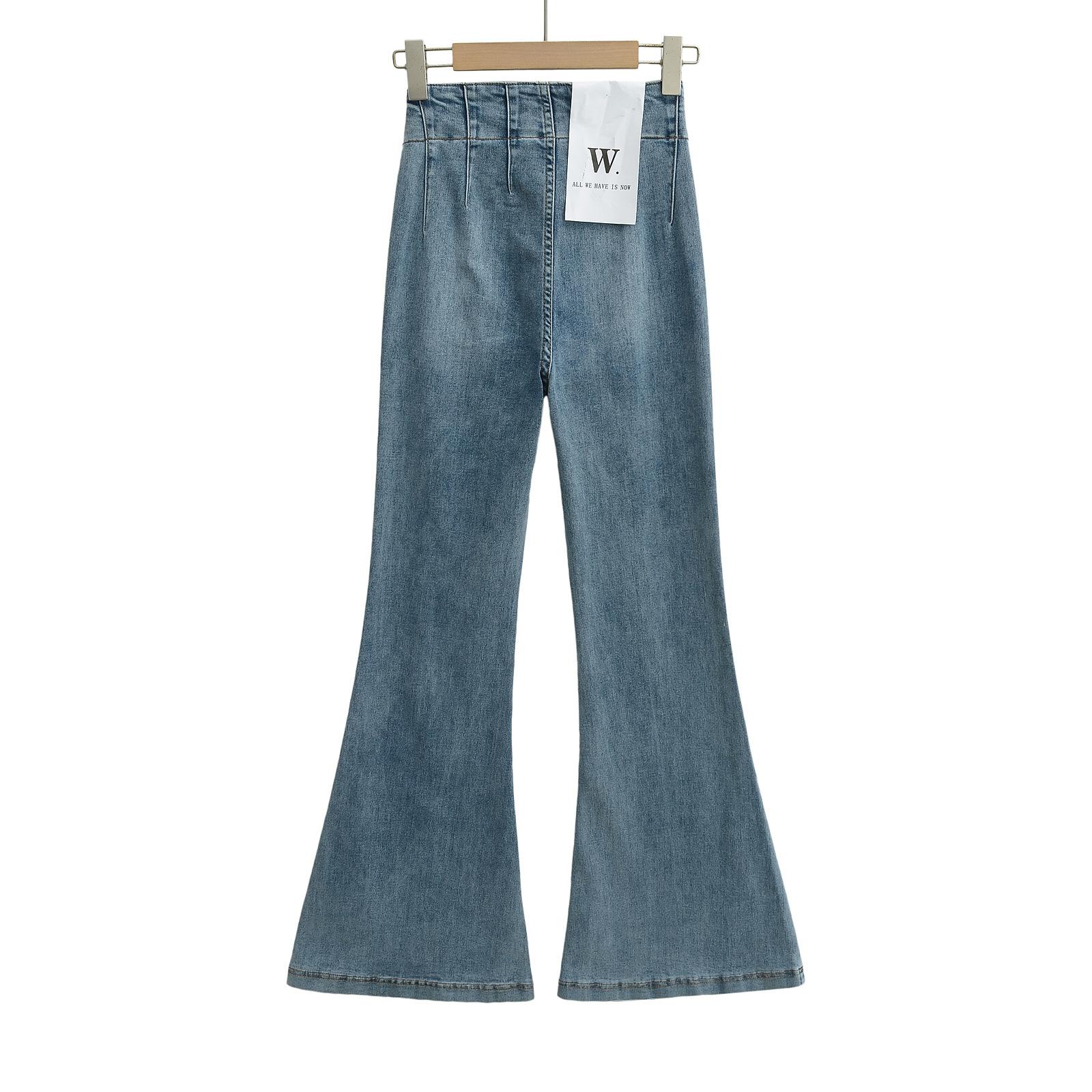 9254-Estilo Europeo y Americano Sexy Sexy Jeans Acampanados para Mujer 2025 Nuevo Retro Ajustado Elástico Pantalones Slim