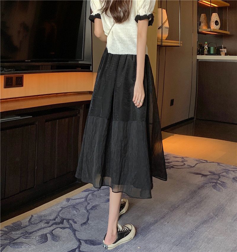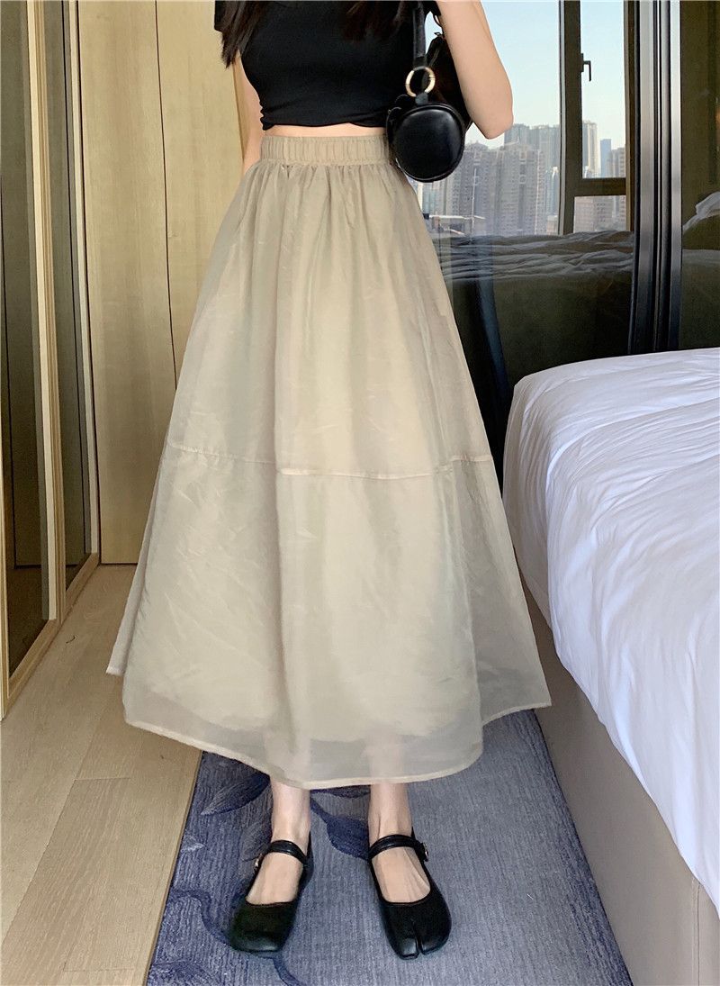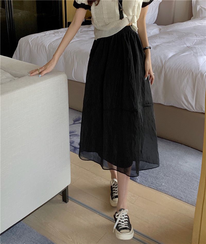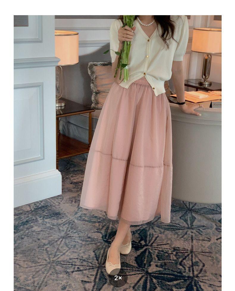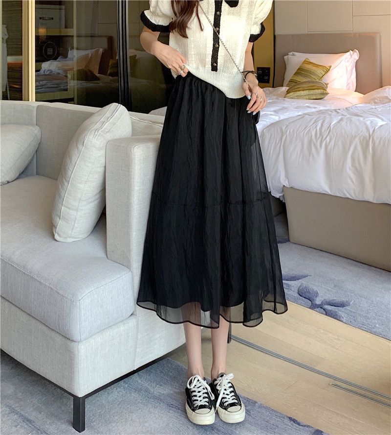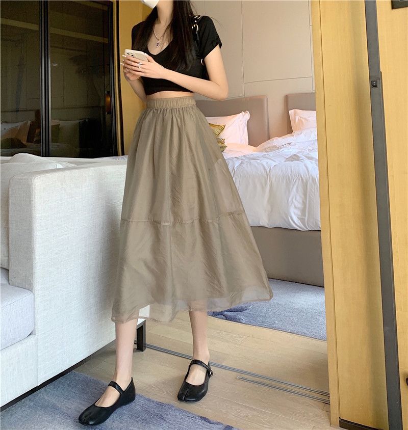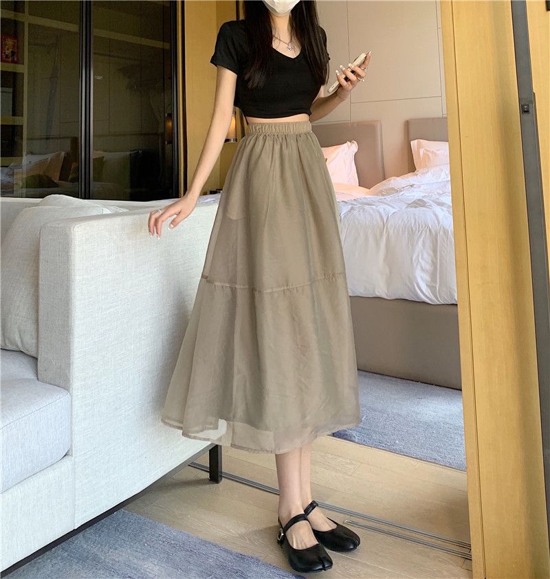 Falda de Malla para Mujer Verano 2025 Nueva Cintura Alta Elástica Adelgazante Falda Plisada Midi Drapeada Línea A Falda Paraguas Otoño