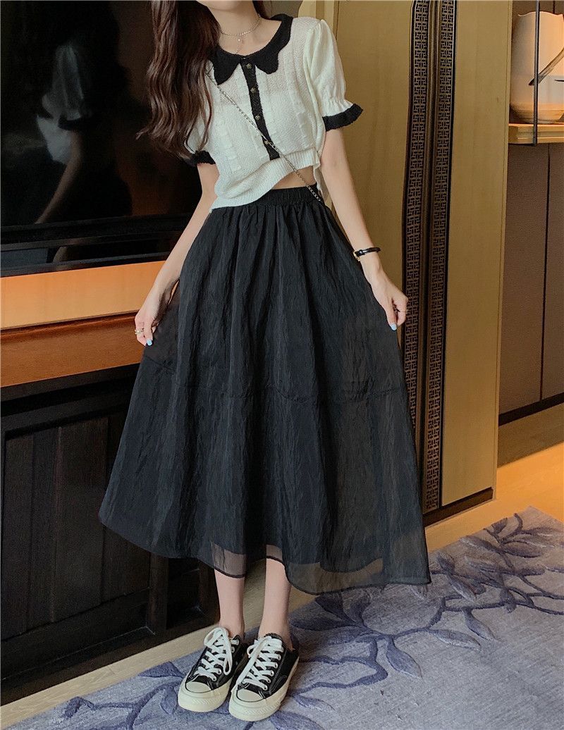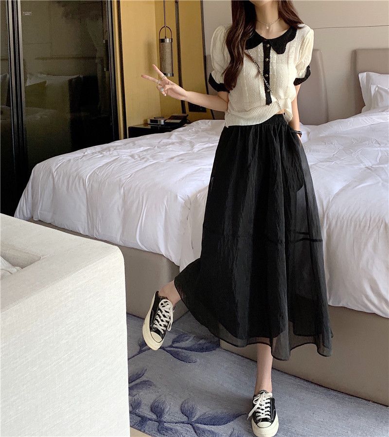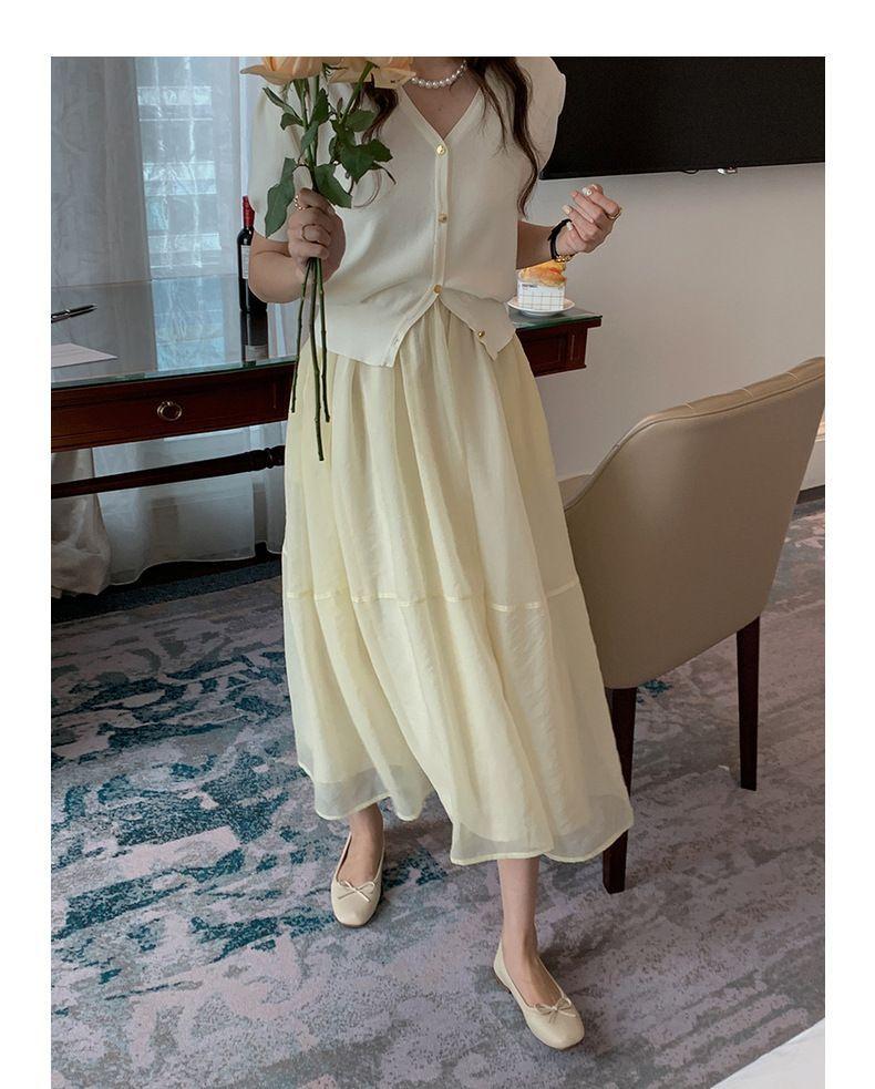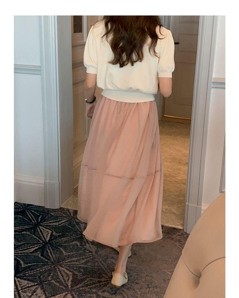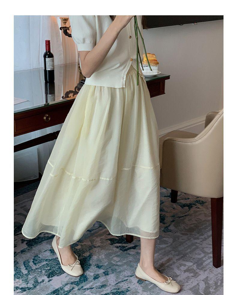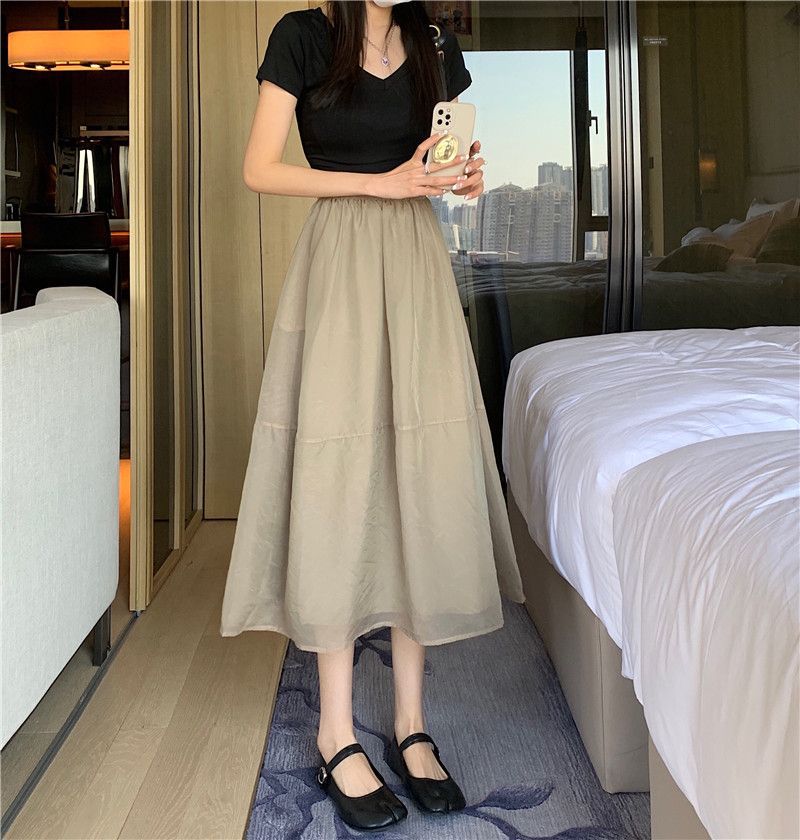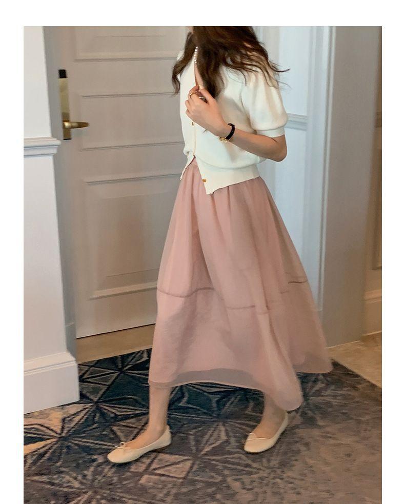 Falda de Malla para Mujer Verano 2025 Nueva Cintura Alta Elástica Adelgazante Falda Plisada Midi Drapeada Línea A Falda Paraguas Otoño