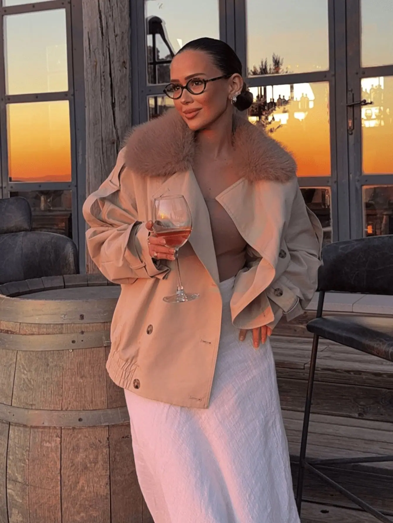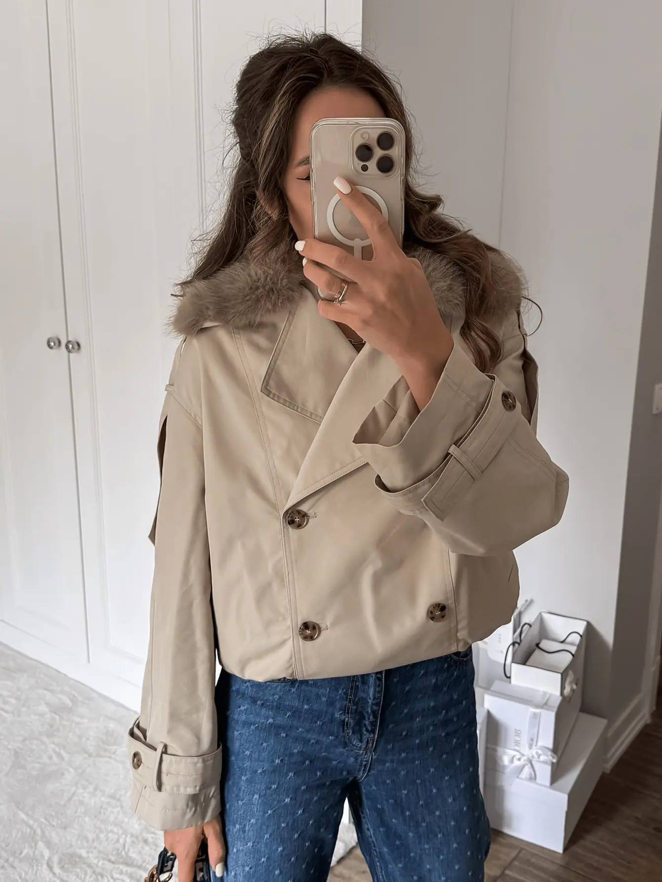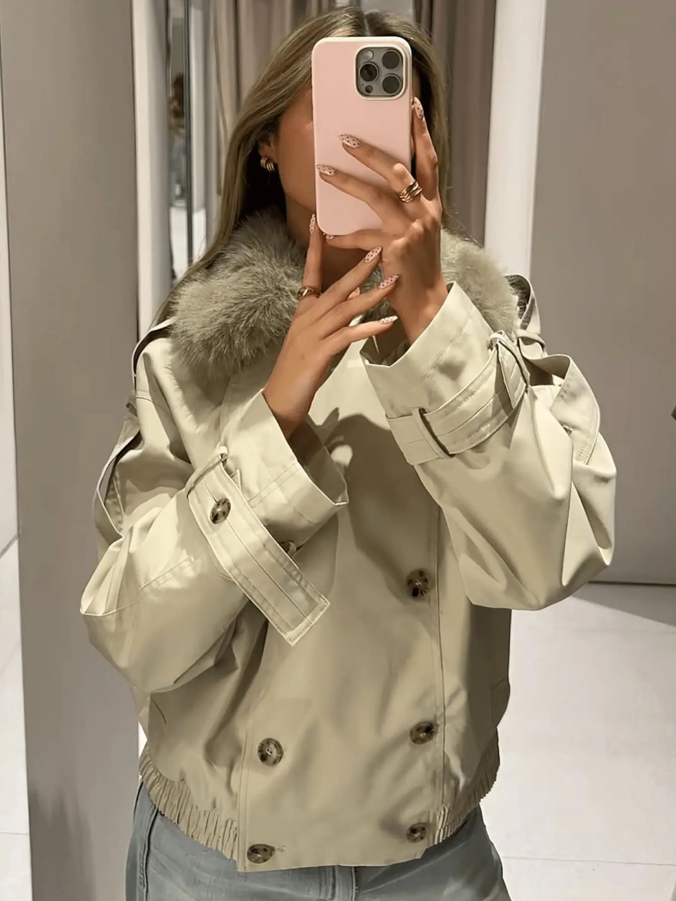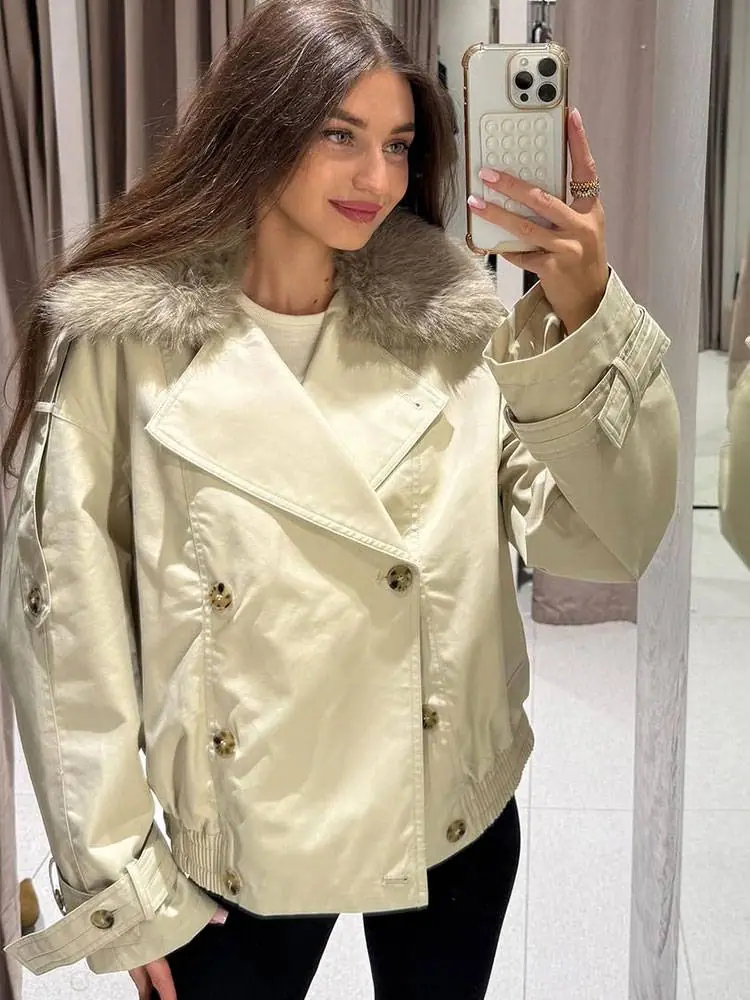 Abrigo corto impermeable de otoño para mujer, nuevo estilo europeo y americano, moda, sentido de alta gama, casual, versátil, color sólido