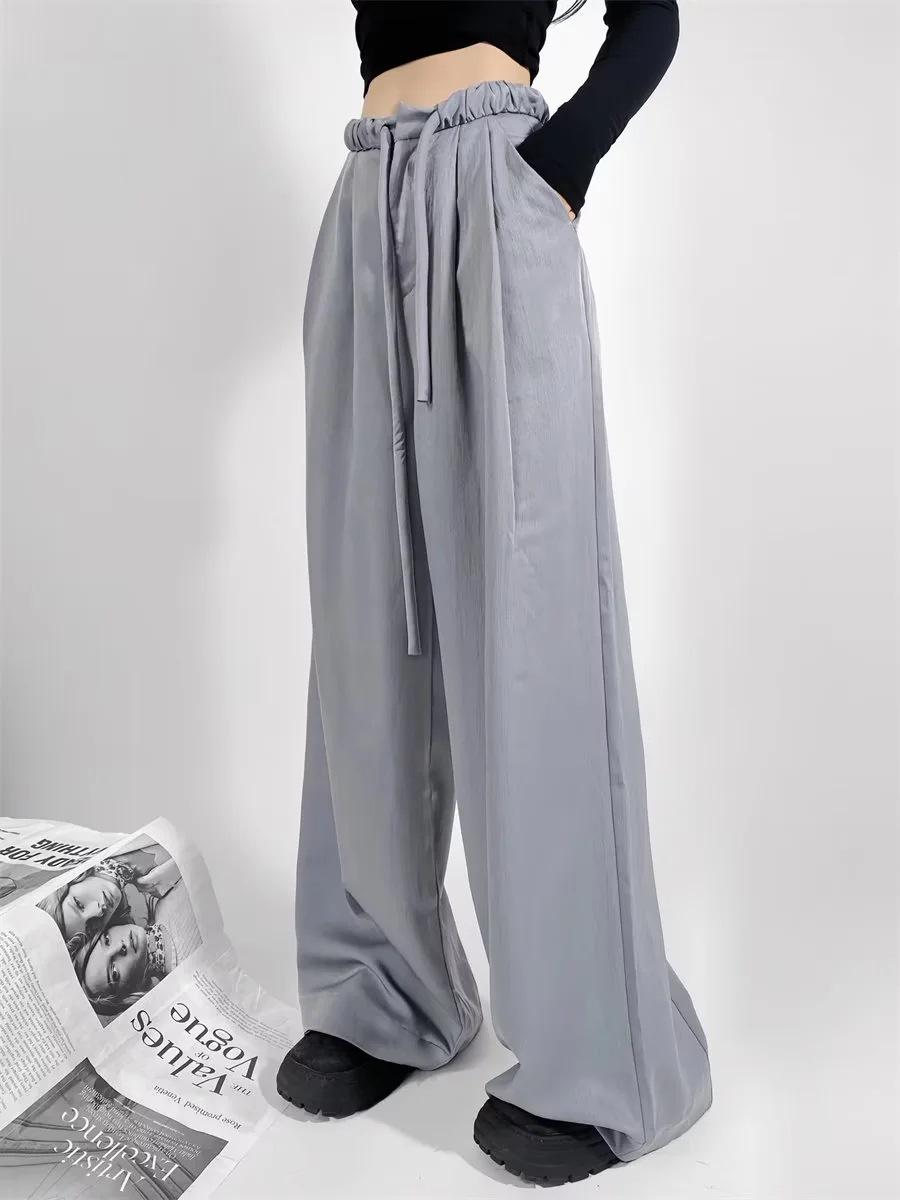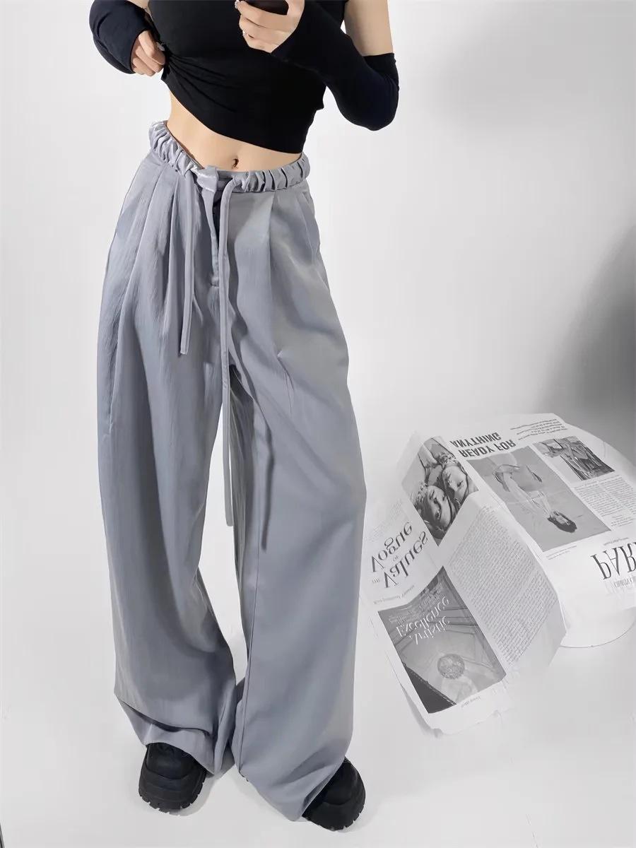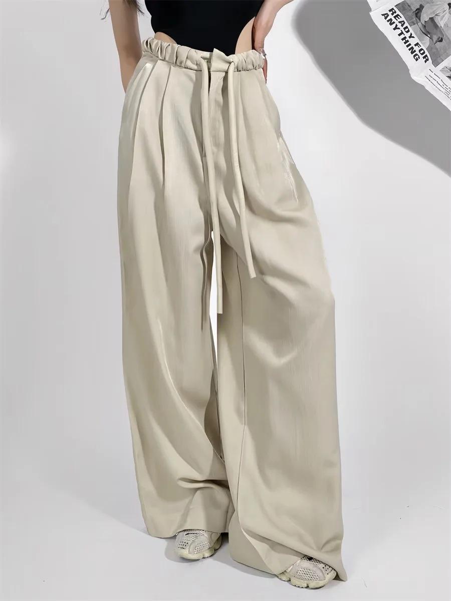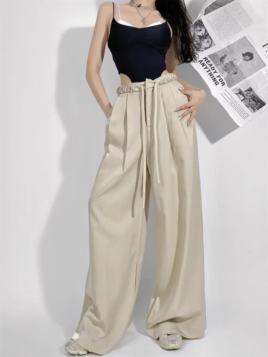 2025 Nuevo Pantalón Aéreo Picante para Chica con Cordones de Cintura Alta Alargador de Piernas para Mujer con Cordón Ajustable Suelto Adelgazante Drapeado Casual Pantalón de Pierna Ancha Tendencia