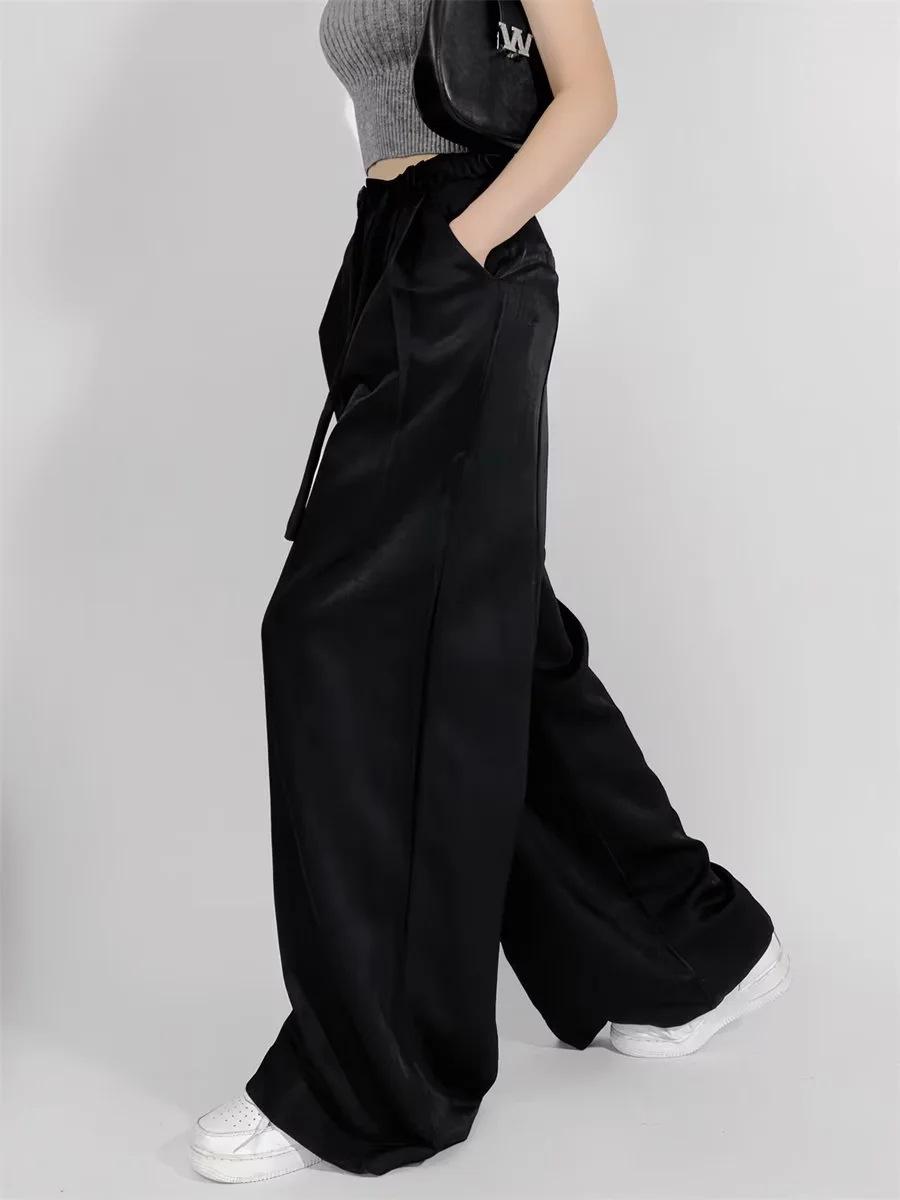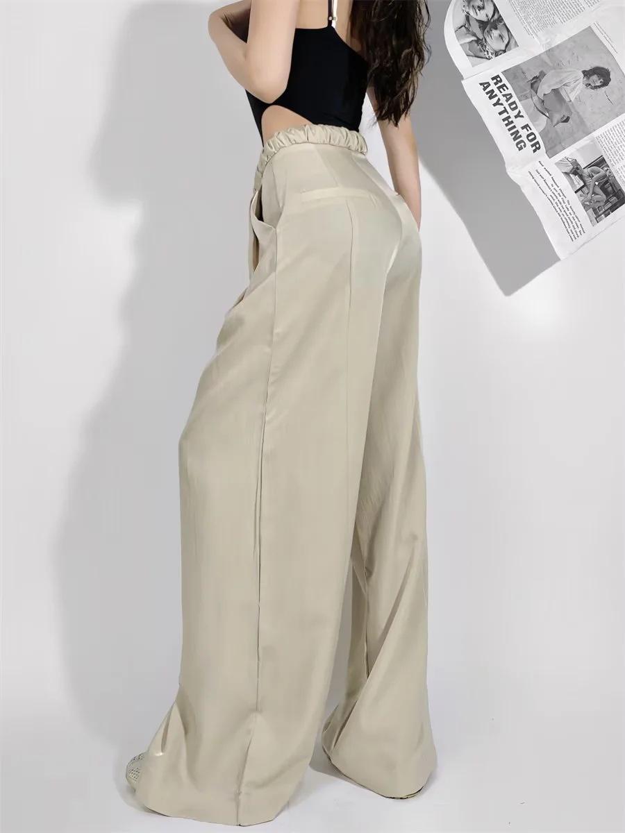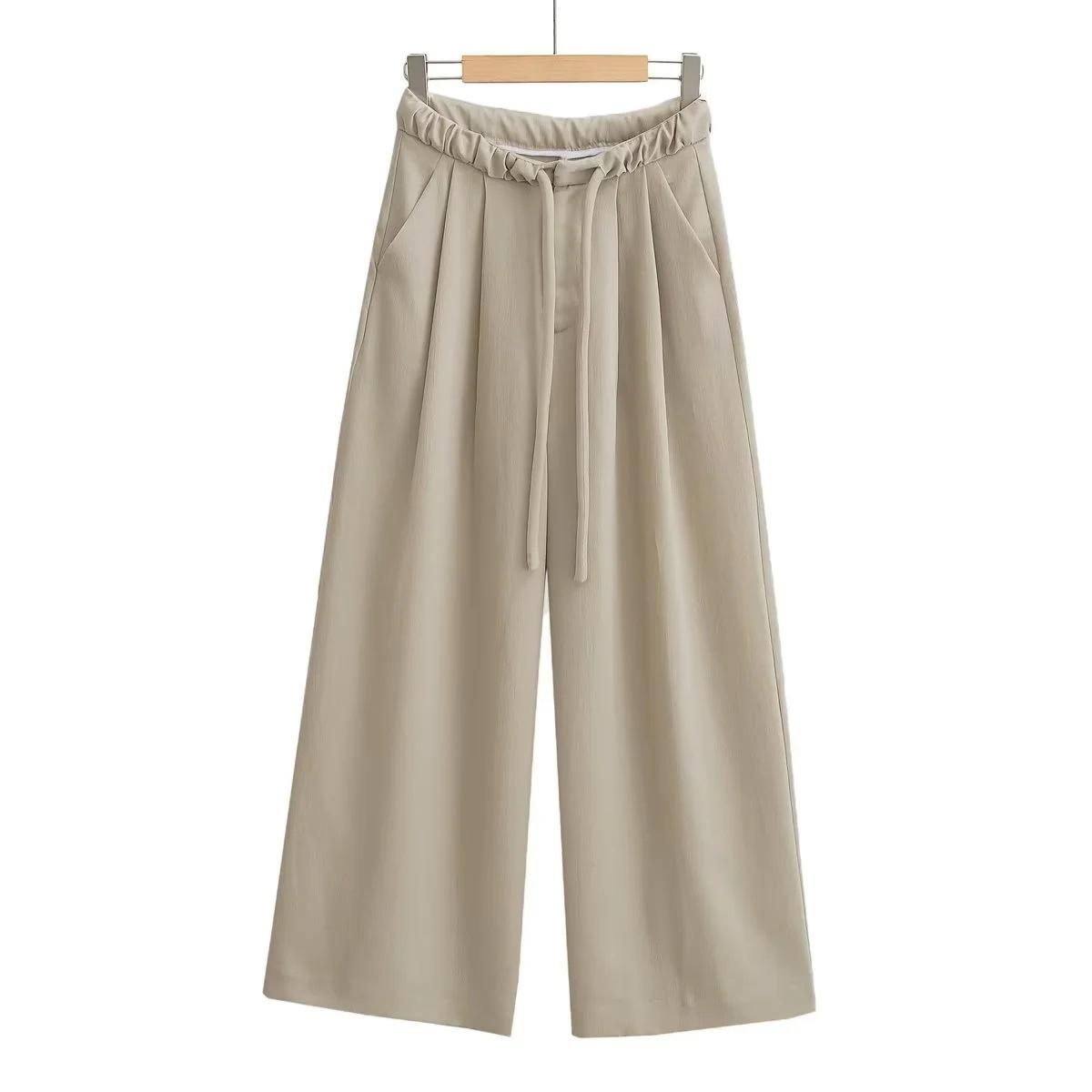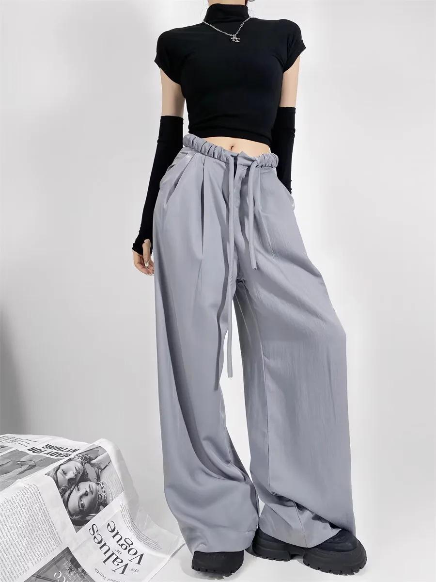 2025 Nuevo Pantalón Aéreo Picante para Chica con Cordones de Cintura Alta Alargador de Piernas para Mujer con Cordón Ajustable Suelto Adelgazante Drapeado Casual Pantalón de Pierna Ancha Tendencia