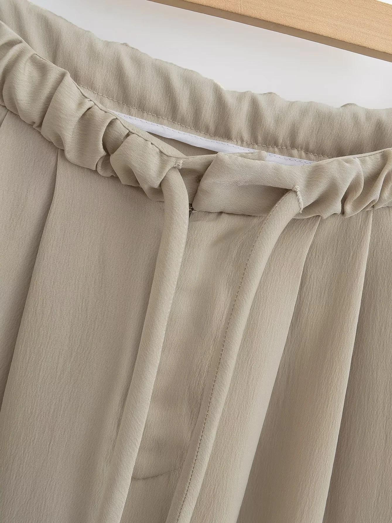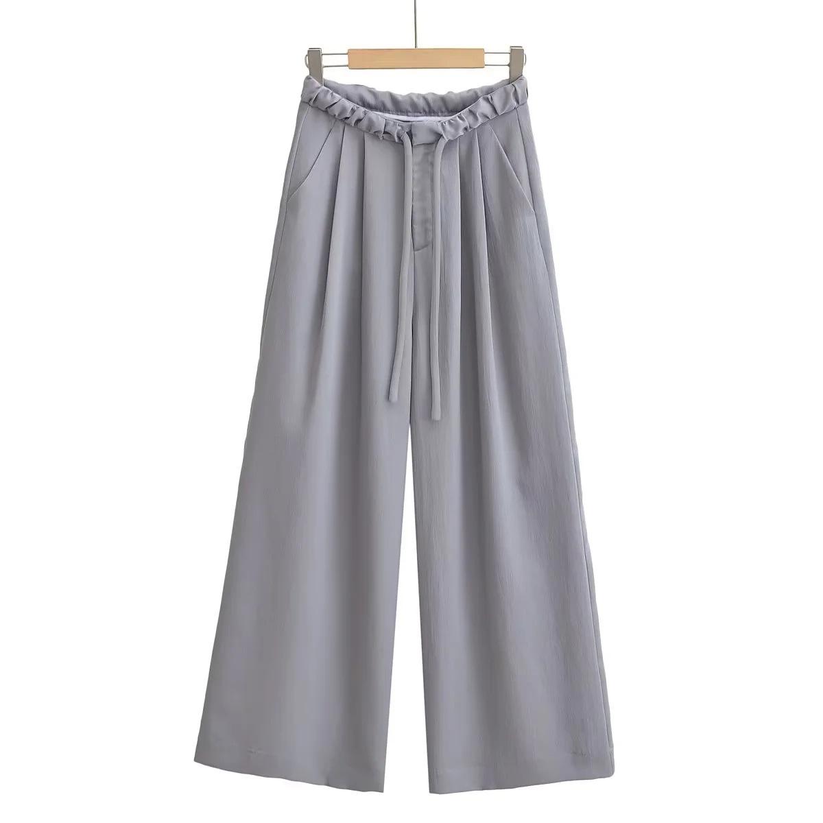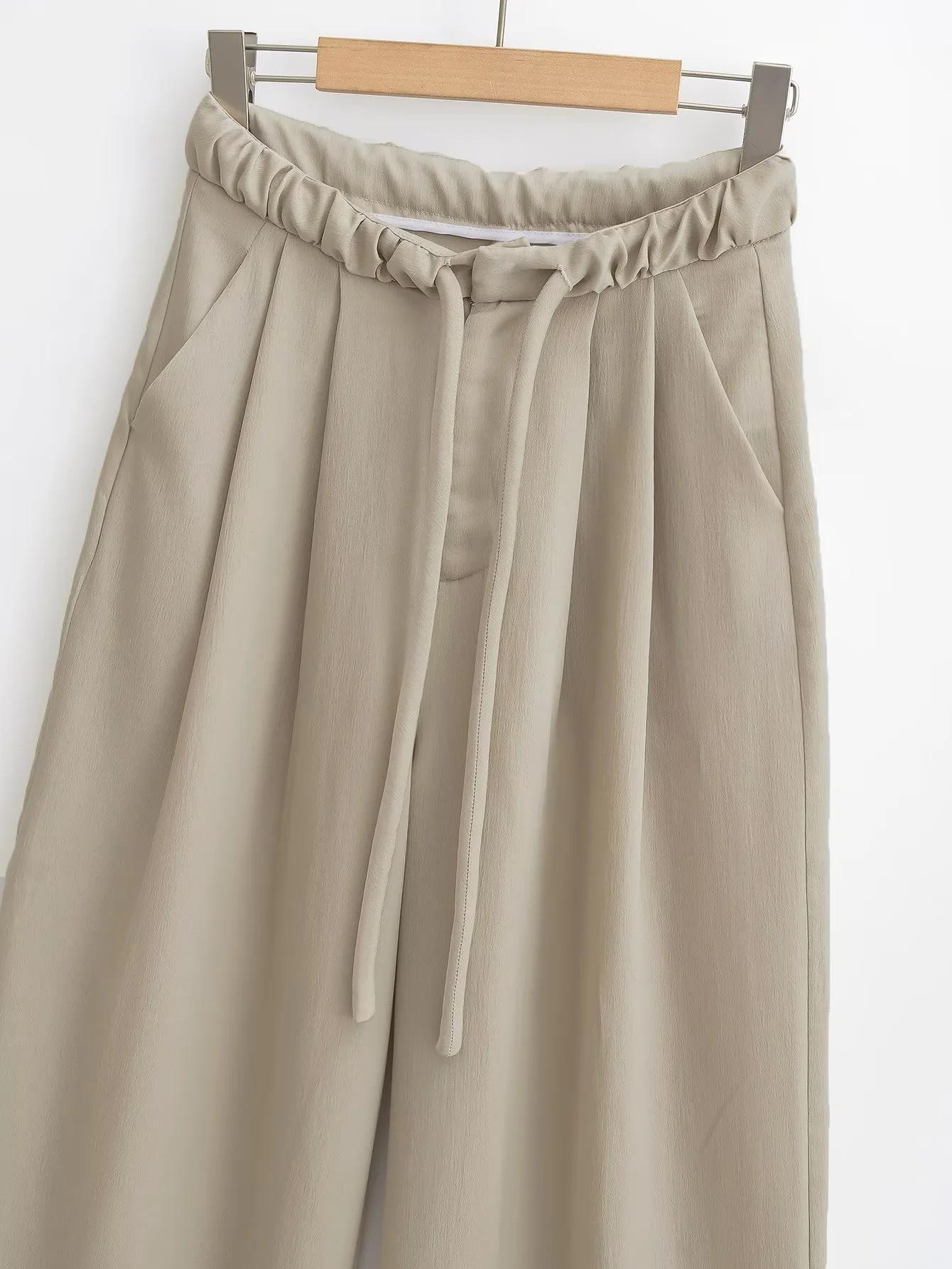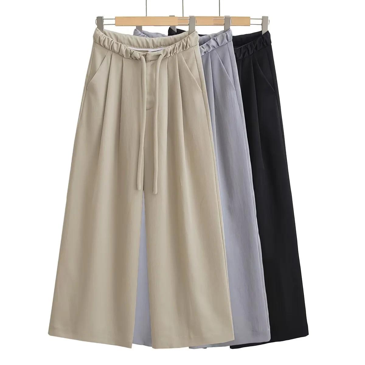 2025 Nuevo Pantalón Aéreo Picante para Chica con Cordones de Cintura Alta Alargador de Piernas para Mujer con Cordón Ajustable Suelto Adelgazante Drapeado Casual Pantalón de Pierna Ancha Tendencia