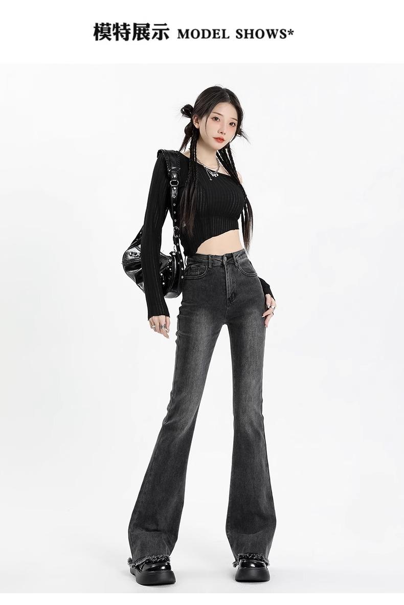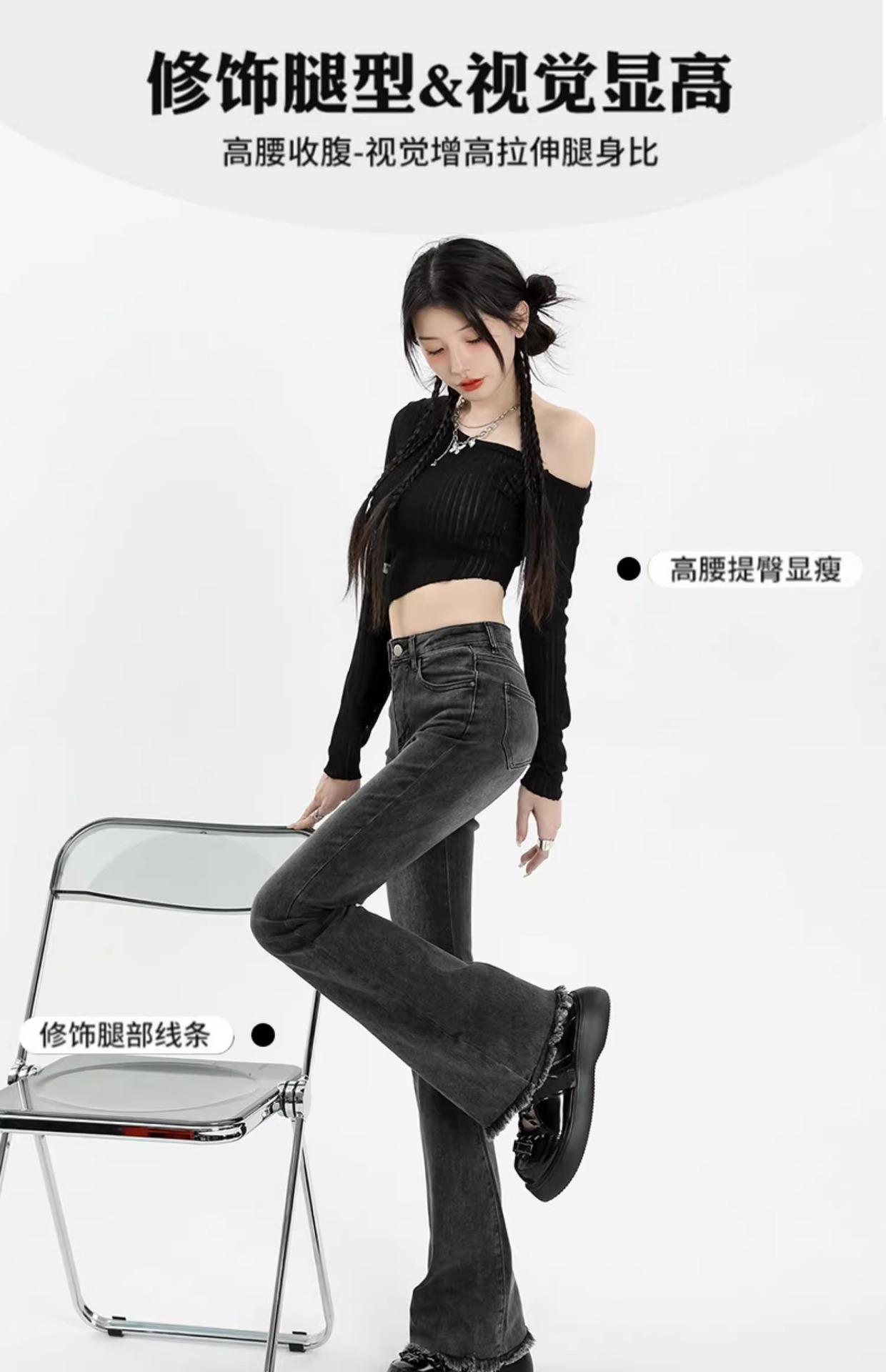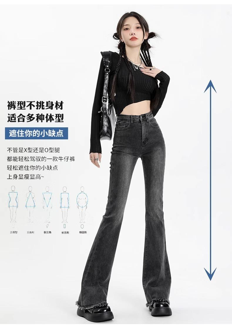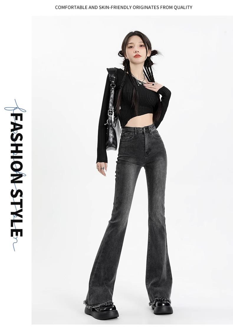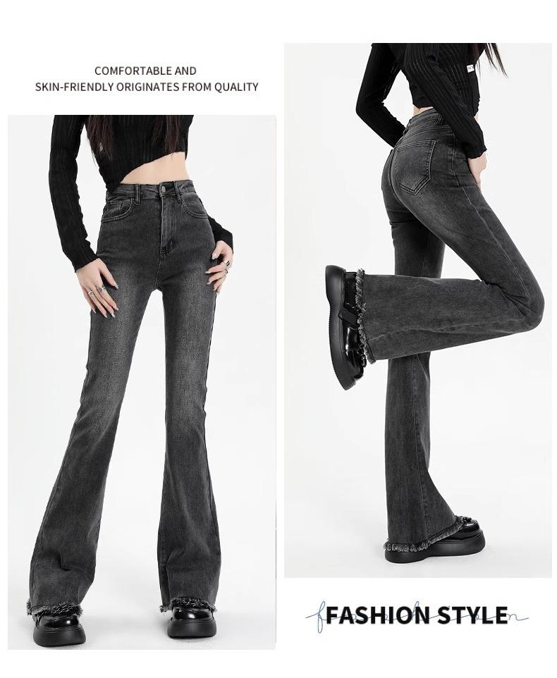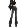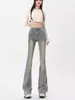 Jeans Acampanados Micro de Moda Grises para Mujer Verano Cintura Alta Ajustados Pantalones Herradura Pequeño Stretch Rotos Acampanados