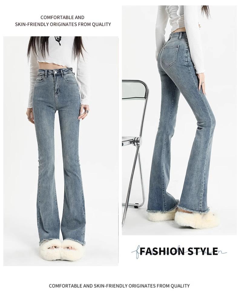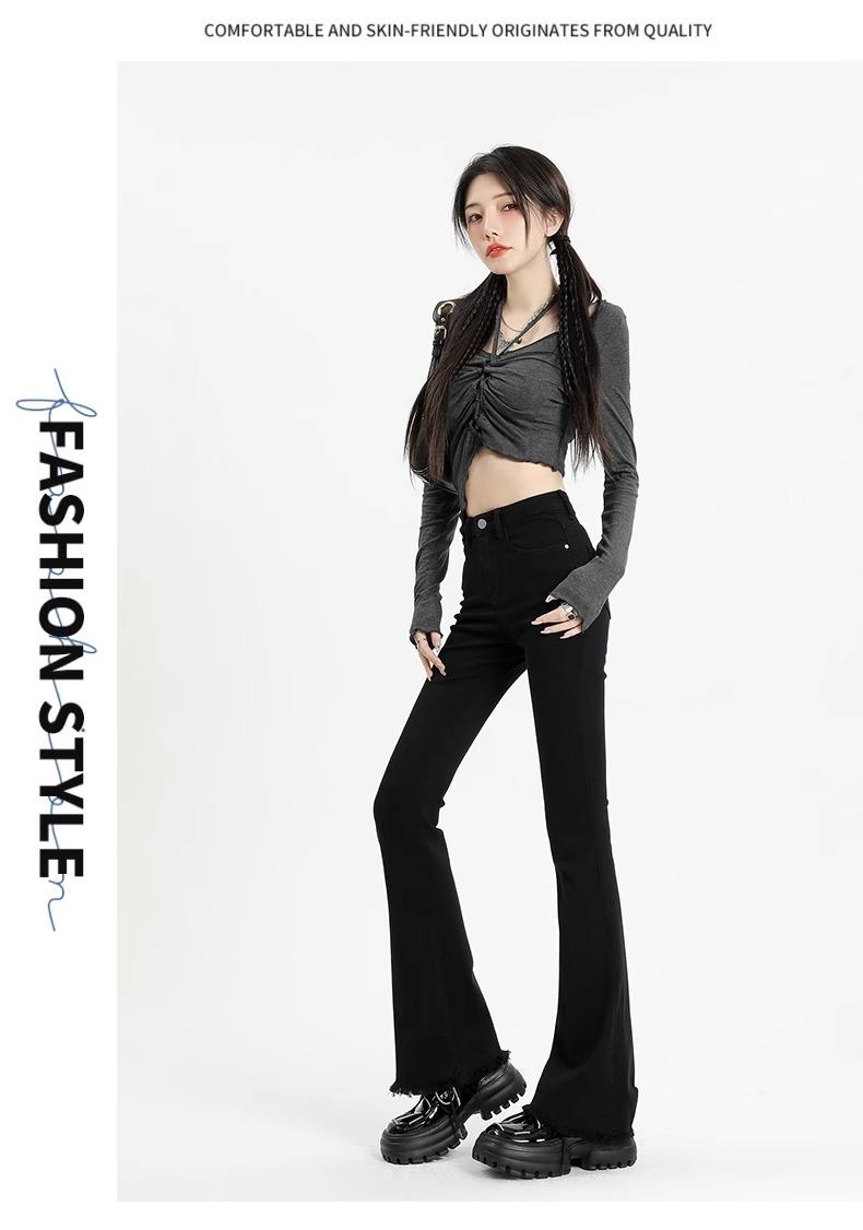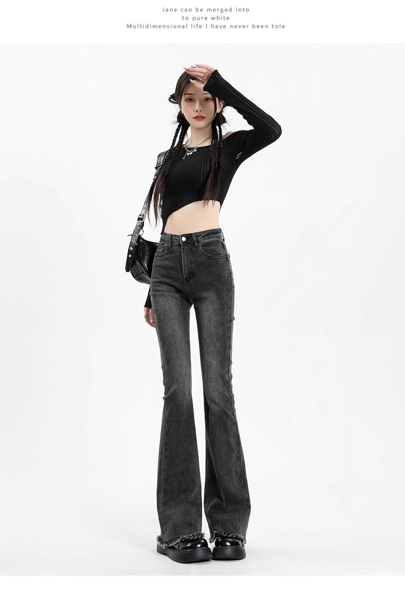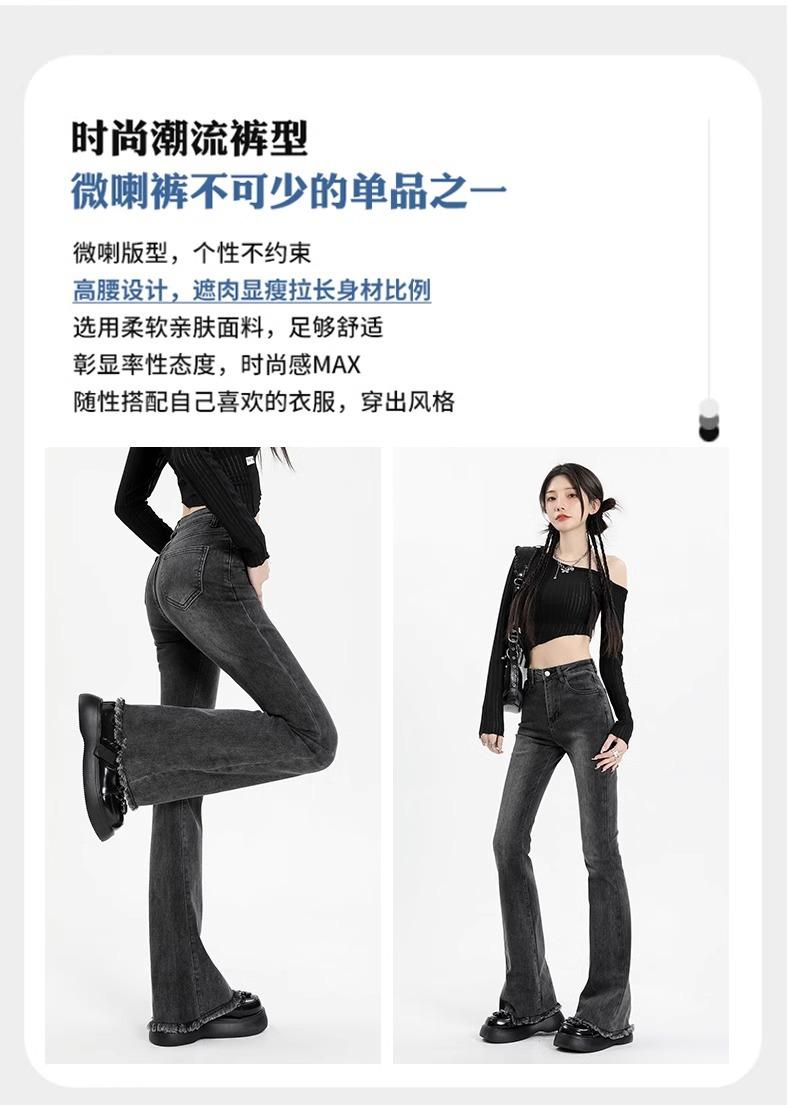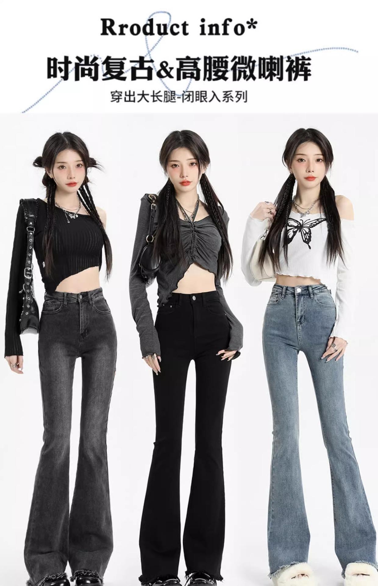 Jeans Acampanados Micro de Moda Grises para Mujer Verano Cintura Alta Ajustados Pantalones Herradura Pequeño Stretch Rotos Acampanados