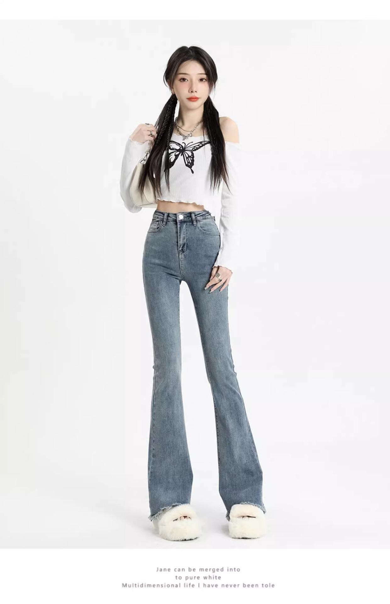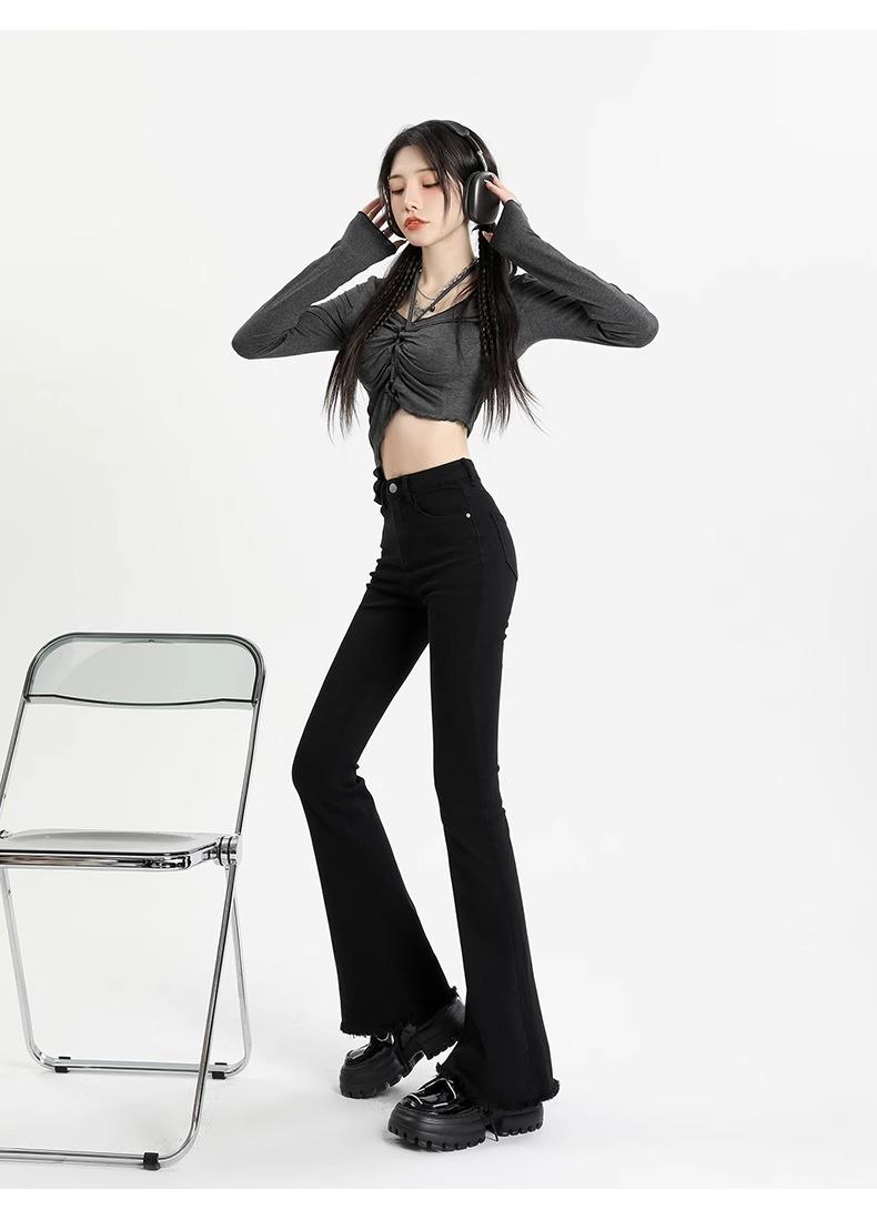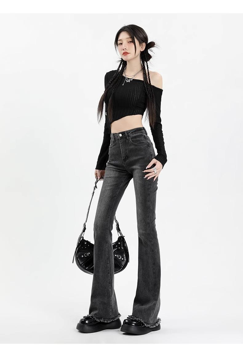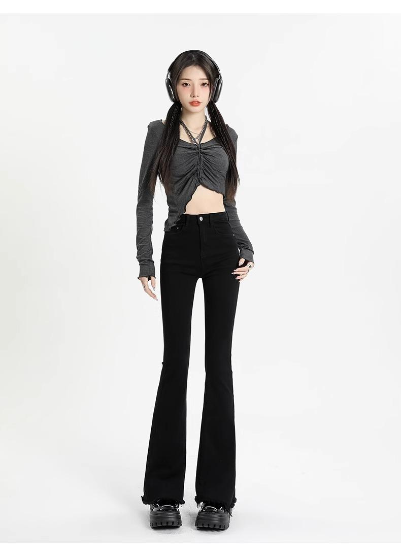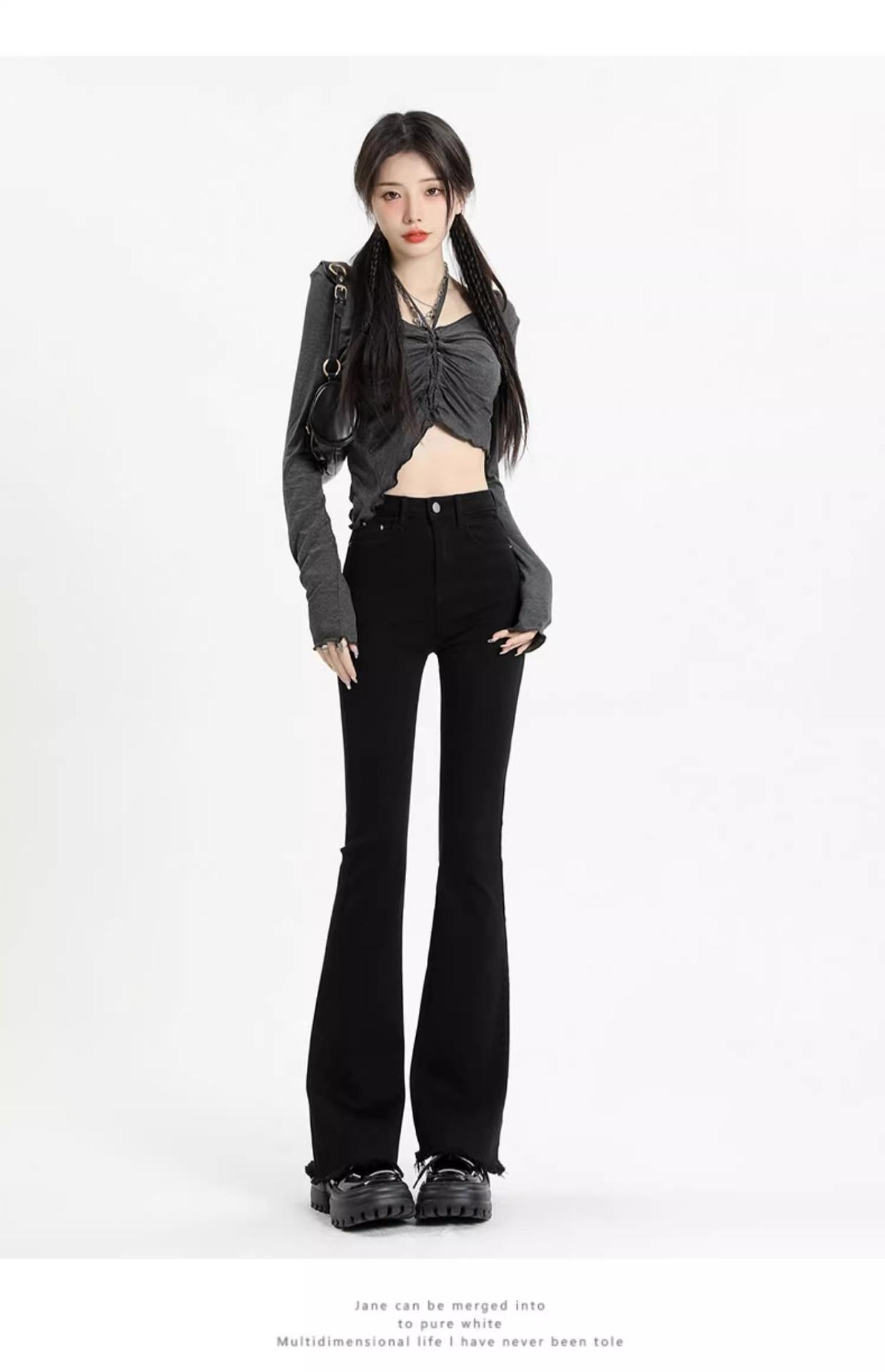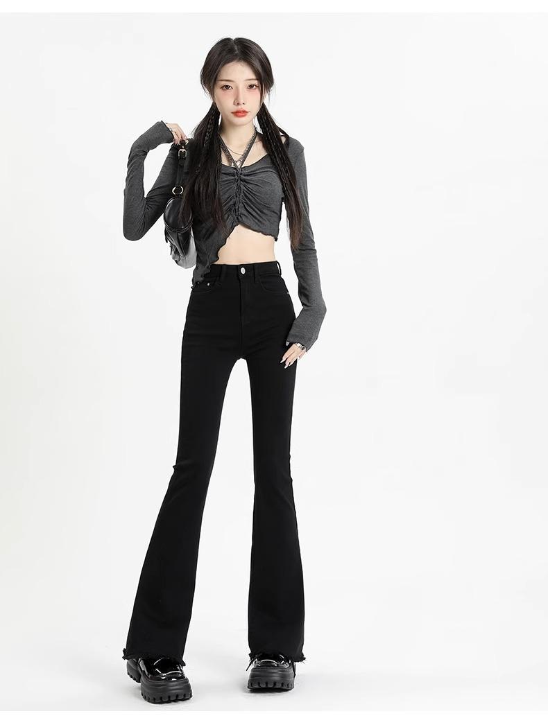 Jeans Acampanados Micro de Moda Grises para Mujer Verano Cintura Alta Ajustados Pantalones Herradura Pequeño Stretch Rotos Acampanados