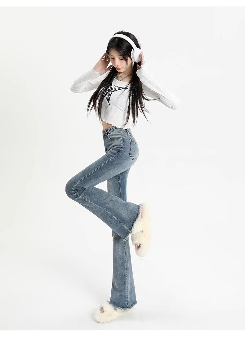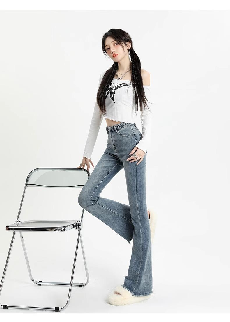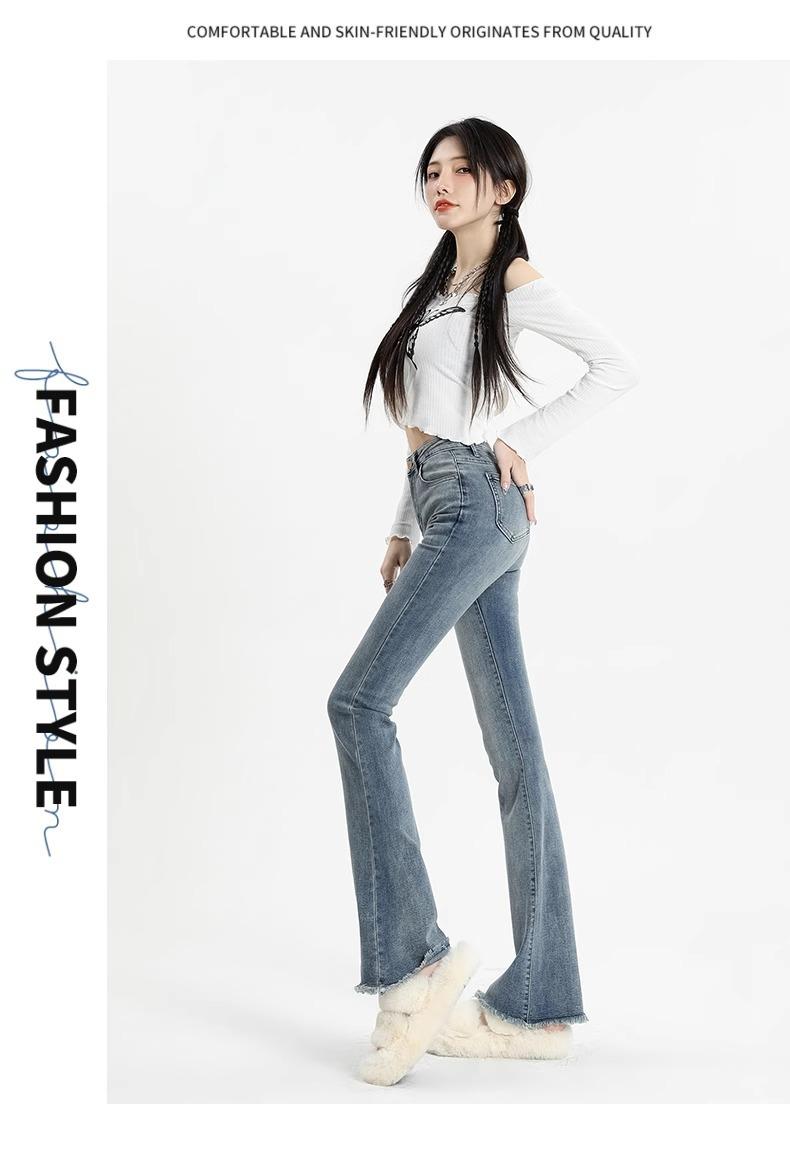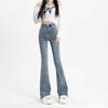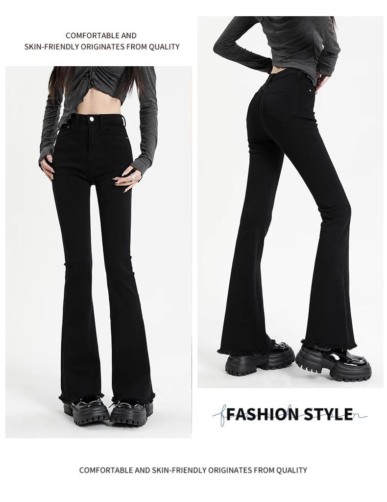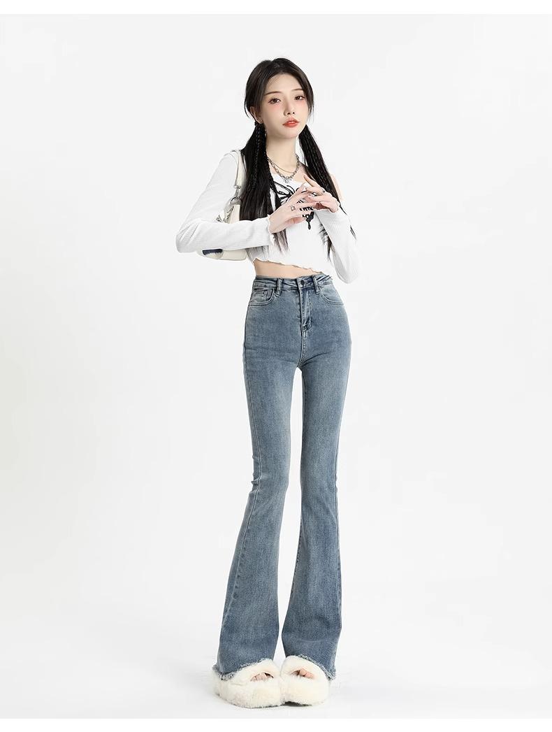 Jeans Acampanados Micro de Moda Grises para Mujer Verano Cintura Alta Ajustados Pantalones Herradura Pequeño Stretch Rotos Acampanados