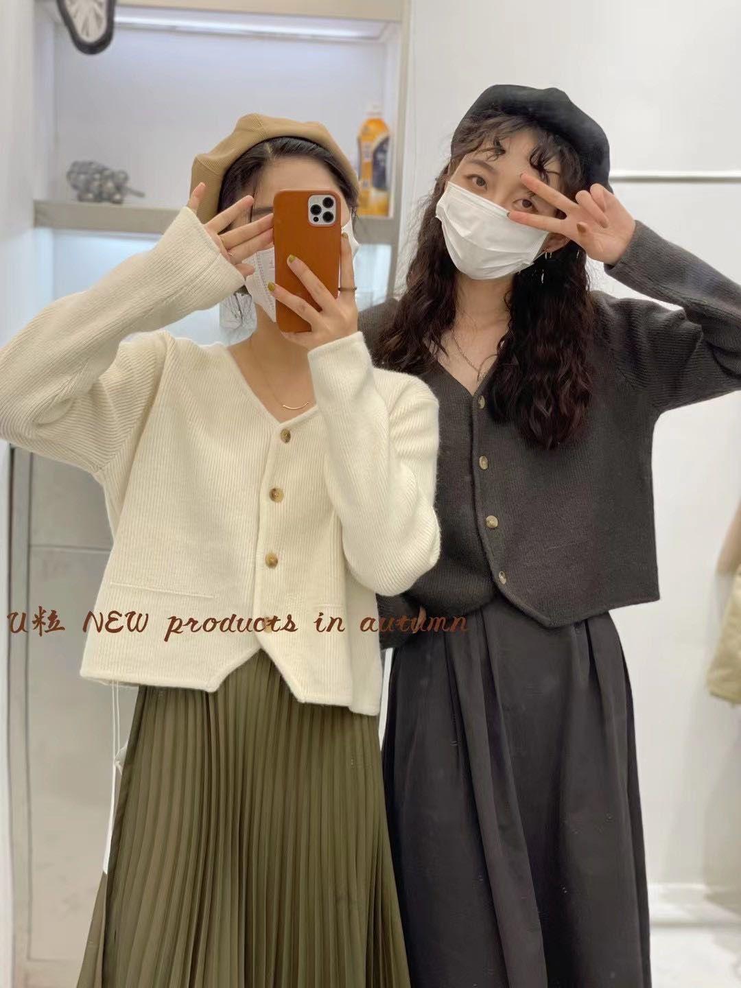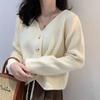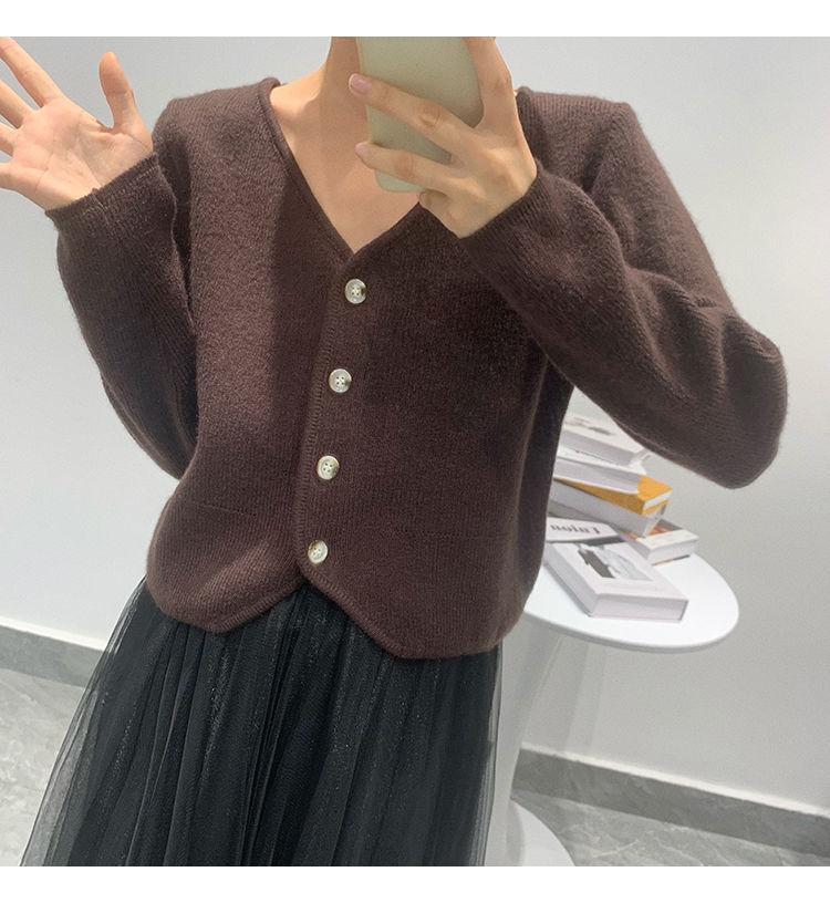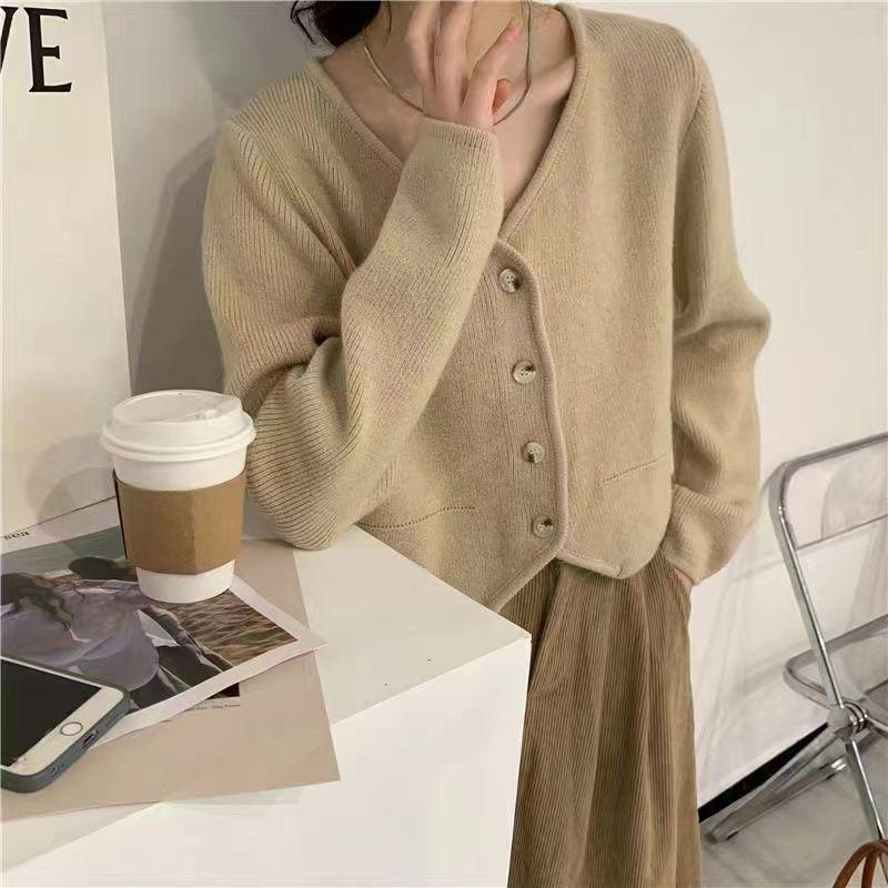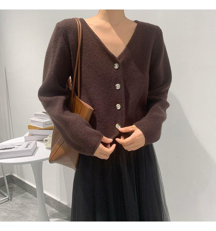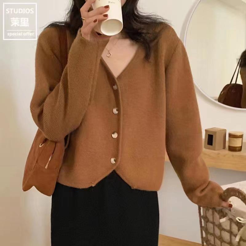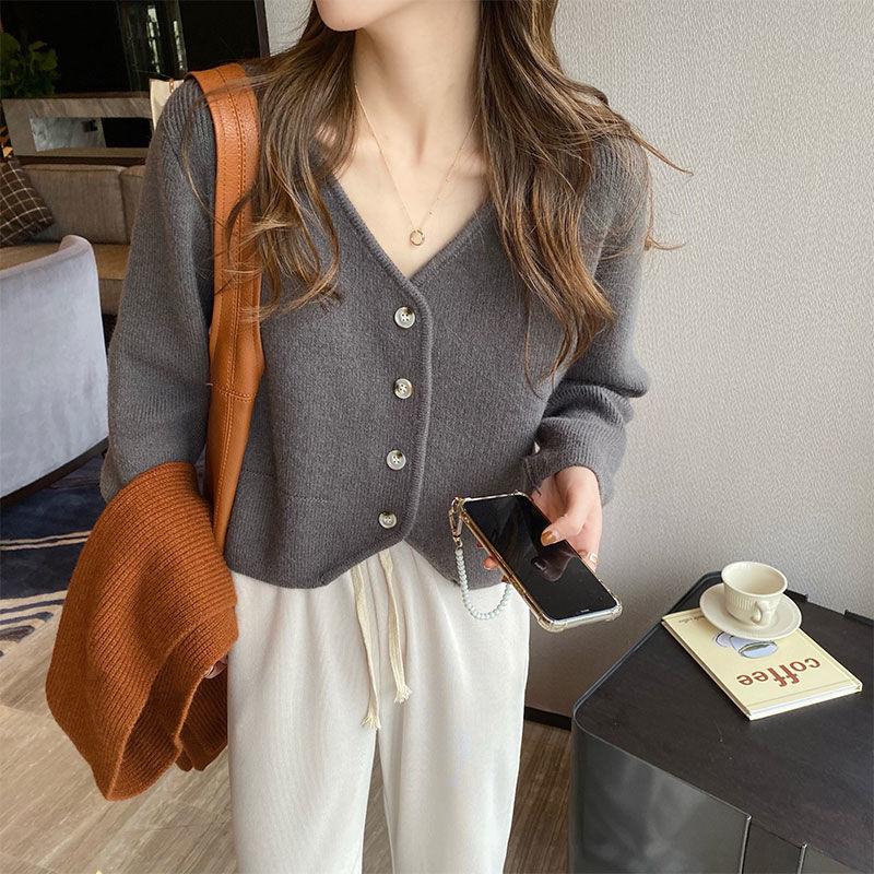 Suéter Cárdigan Suave con Cuello en V Estilo Coreano para Mujer Suave Perezoso Corto en Capas Tejido Grueso Top Otoño Invierno