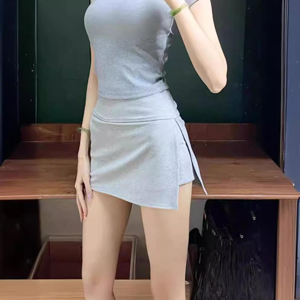 Falda Corta Dividida de Yoga Gris para Mujer Verano 2024 Nueva Cintura Alta Ajustada Cubriendo Pantalones Cadera Falda Línea A