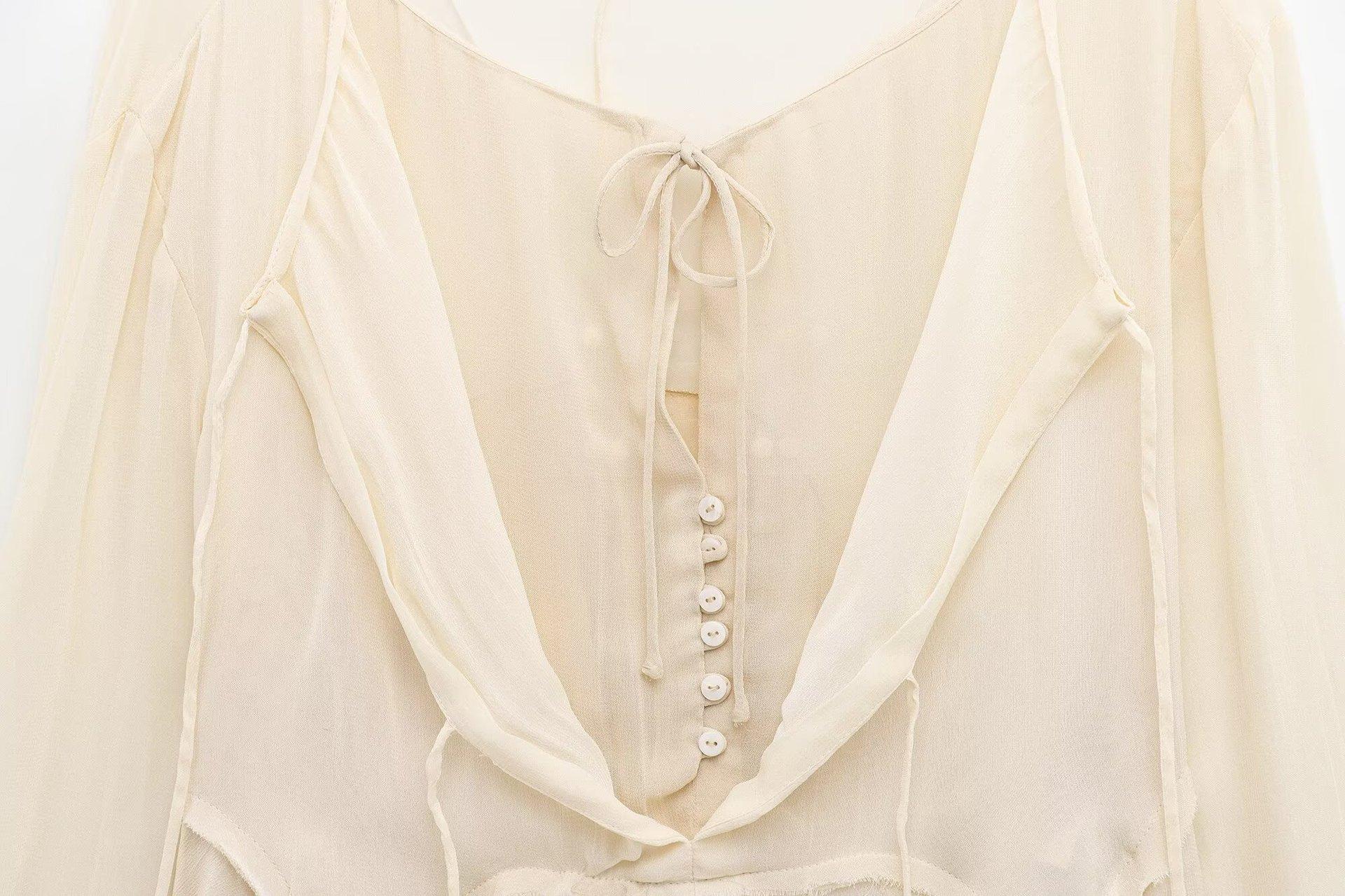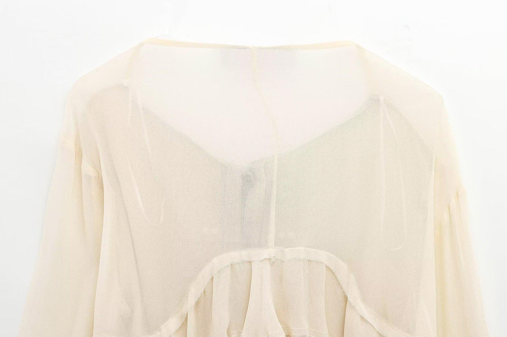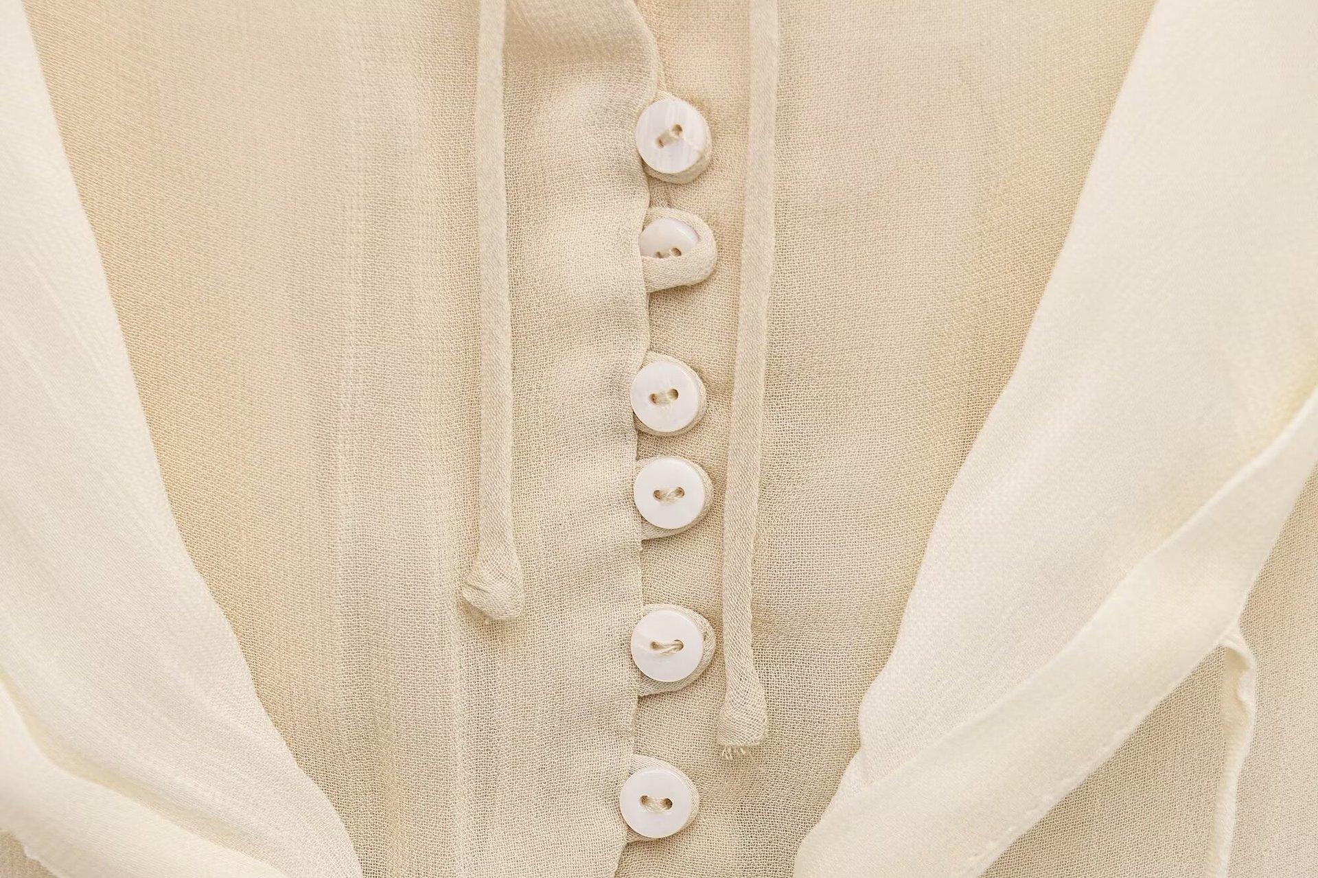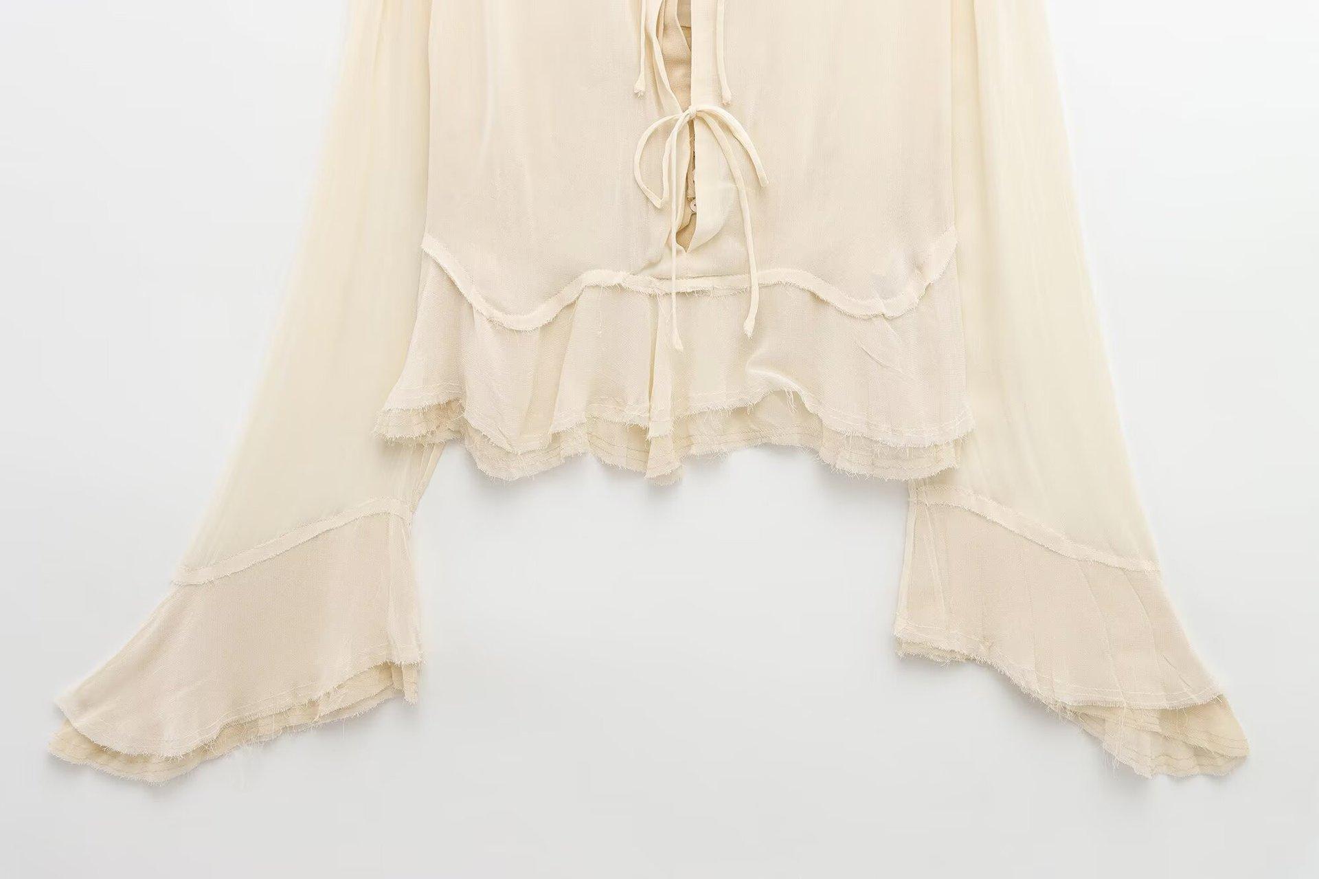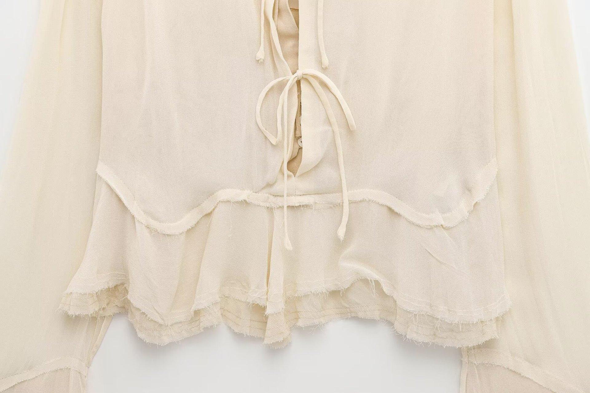 Nuevo Producto Transfronterizo 2025 Estilo Europeo y Americano Ropa de Mujer Exportación Venta al por Mayor Zr Lunares Lazo Manga Campana Camisa